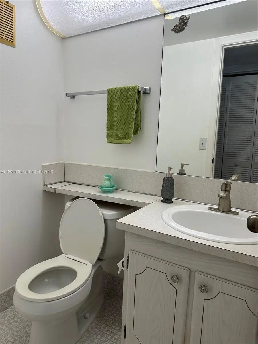 Come see this condo located in Century Village's 55 + gated community. First floor unit, featuring one large bedroom and bathroom, along with a guest bathroom and enclosed porch. Resort-style amenities include: Pools, fitness center, clubhouse, transportation, tennis and pickleball. 24 hour gated security.