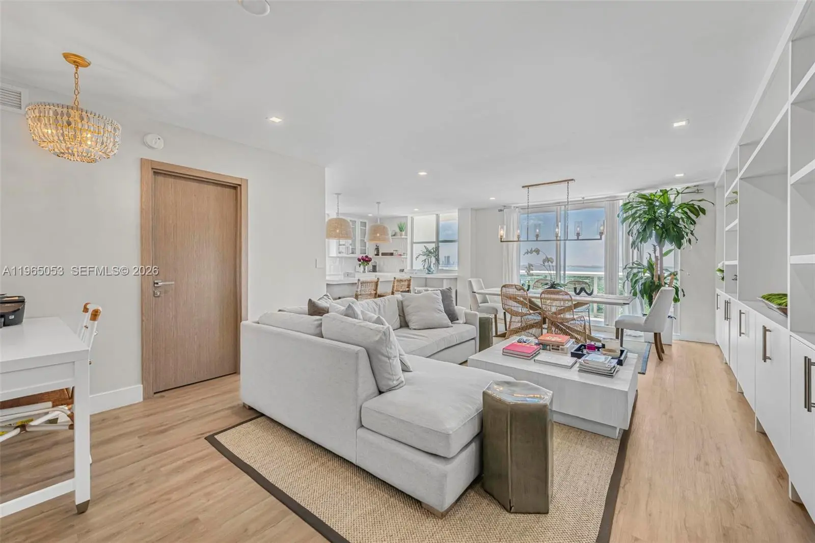 Experience coastal luxury in this stunning 2-bedroom, 2-bathroom corner condo (1,352 SqFt) at Carriage Club South, fully furnished and curated by award-winning DLT Interiors. Sunlit rooms with floor-to-ceiling hurricane impact windows showcase breathtaking West water and skyline views - perfect for sunset evenings. The open-concept interior features a custom chef’s kitchen with central island, marble-finished bathrooms, and spacious walk-in closets, and in unit laundry. Enjoy premier amenities: beachfront pool, 24-hour lobby service, fitness center, boardwalk & beach access with complimentary chairs and umbrellas.