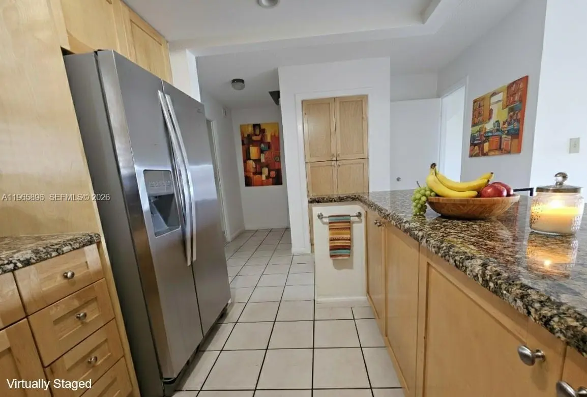 Spacious 2-bedroom, 2.5-bath condo offering 1,196 sq ft of comfortable living space in the desirable Park East Condominium. This well-maintained unit features a large family/living room with generous dining area, perfect for entertaining. The kitchen is appointed with solid wood cabinetry, granite countertops, and stainless steel appliances. Enjoy serene views of the shaded garden area from the oversized private balcony. The unit includes a full-sized in-unit washer and dryer for added convenience. The primary bedroom offers a custom-built solid wood closet system with shelving and cabinetry, while the second bedroom also provides ample closet space. Located in a secure, gated community which includes pools, tennis courts, and a community room. This unit comes with 2 parking spaces, plus a generous amount of guest parking. Excellent opportunity for comfortable living in a centrally located community, conveniently located close to 836 and the Palmetto Expressway, FIU, Publix, dining, and shopping centers are all located a short distance away.