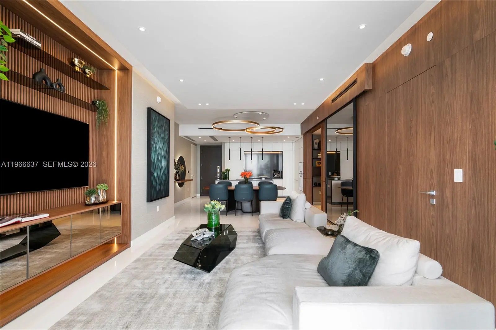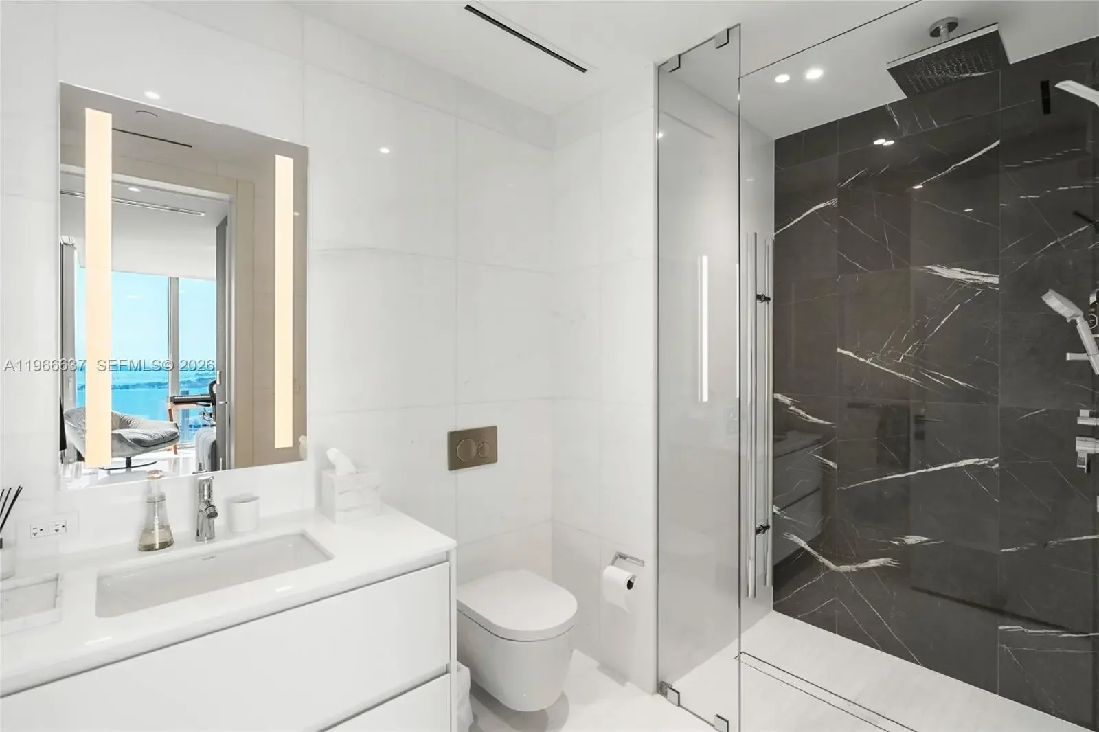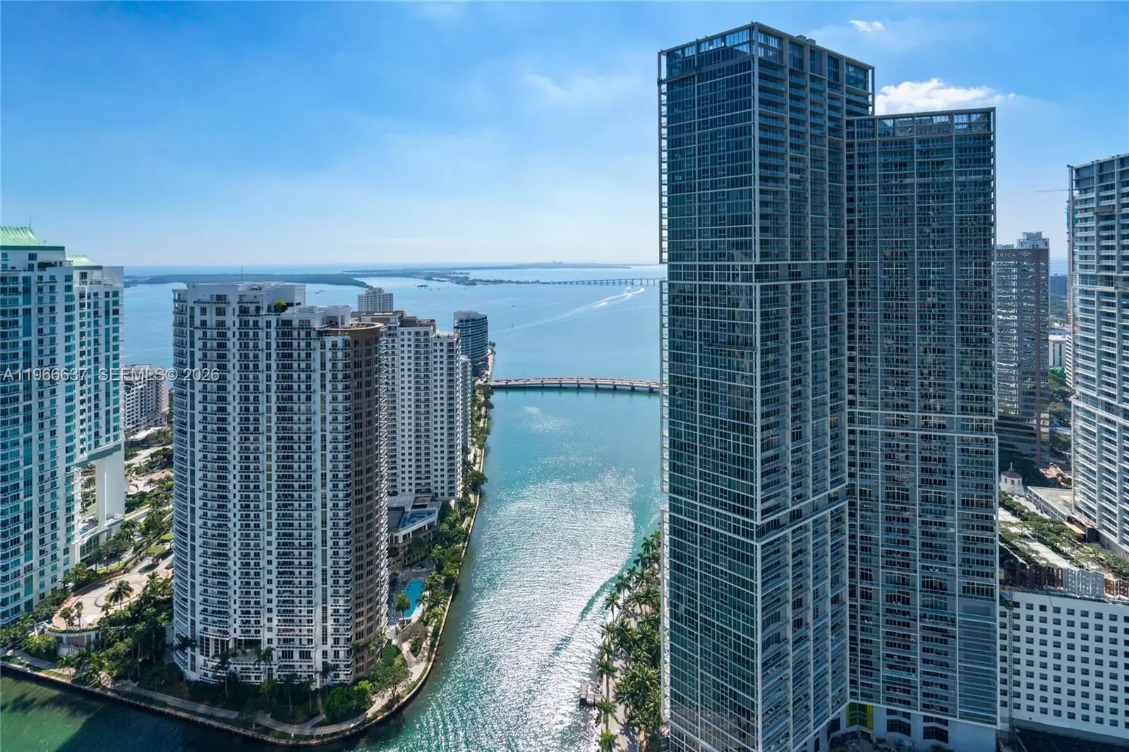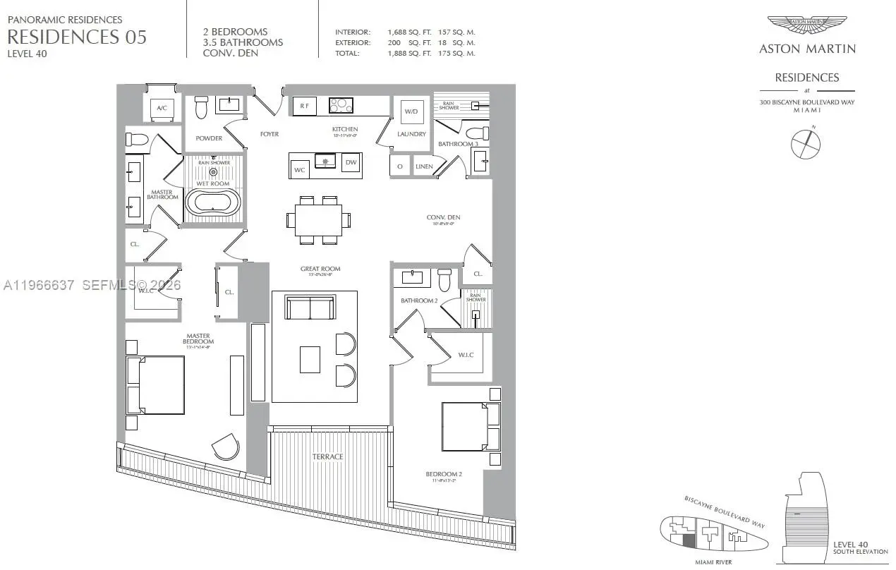 Welcome to Aston Martin 4005, a designer furnished new construction featuring 2 Bed plus an enclosable Den with 3.5 baths in the waterfront between Brickell and Downtown Miami. This stunning high-floor residence features breathtaking panoramic views of Biscayne Bay, the Miami skyline, and the Atlantic Ocean through 10 ft floor-to-ceiling windows and wrap-around balcony. Professionally curated interiors blend modern elegance with comfort, showcasing custom furnishings by Addison House, statement lighting, premium finishes, and bespoke décor throughout. The open-concept living and dining areas flow seamlessly into a gourmet kitchen equipped with top-of-the-line Gaggenau appliances, sleek cabinetry, and refined stone surfaces. Spacious bedrooms offer serene retreats with spa-inspired bathrooms and ample walk-in closets. Wraparound balcony accesible from all bedrooms and living room. Residents also enjoy over 40,000 SqFt of amenities including an infinity pool deck in the sky, state of the art fitness center and spa, theaters, kids rooms, business centre, event salons, boat dock, and more. Building also features 24/7 security, concierge, and is within steps from Miami's hottest restaurants and shops, Downtown and Brickell, and a short drive from Miami Beach, Key Biscayne, Coconut Grove with easy access to the airport. Tenant can chose to change to bedroom furniture in the second bedroom. Must See!