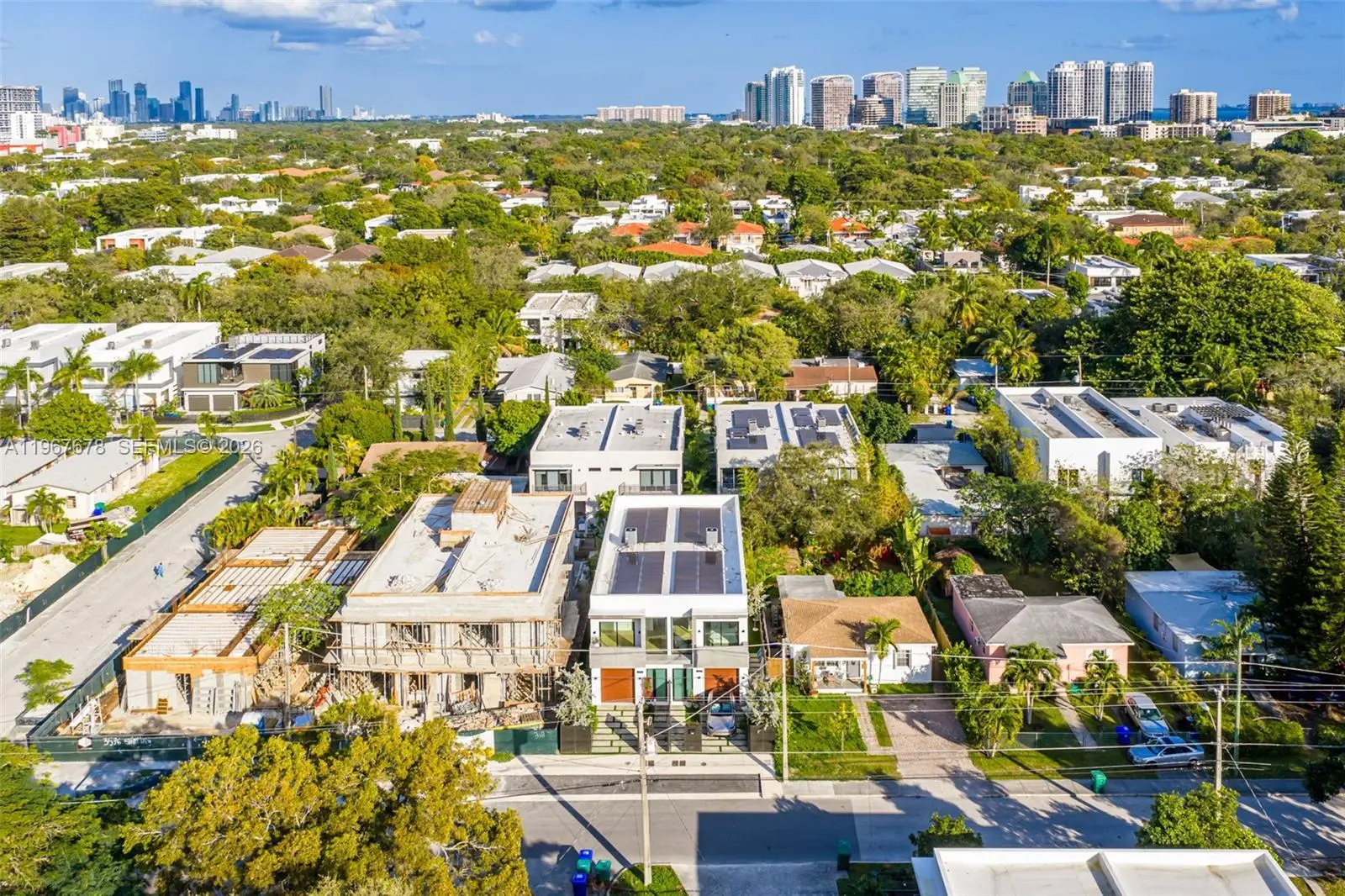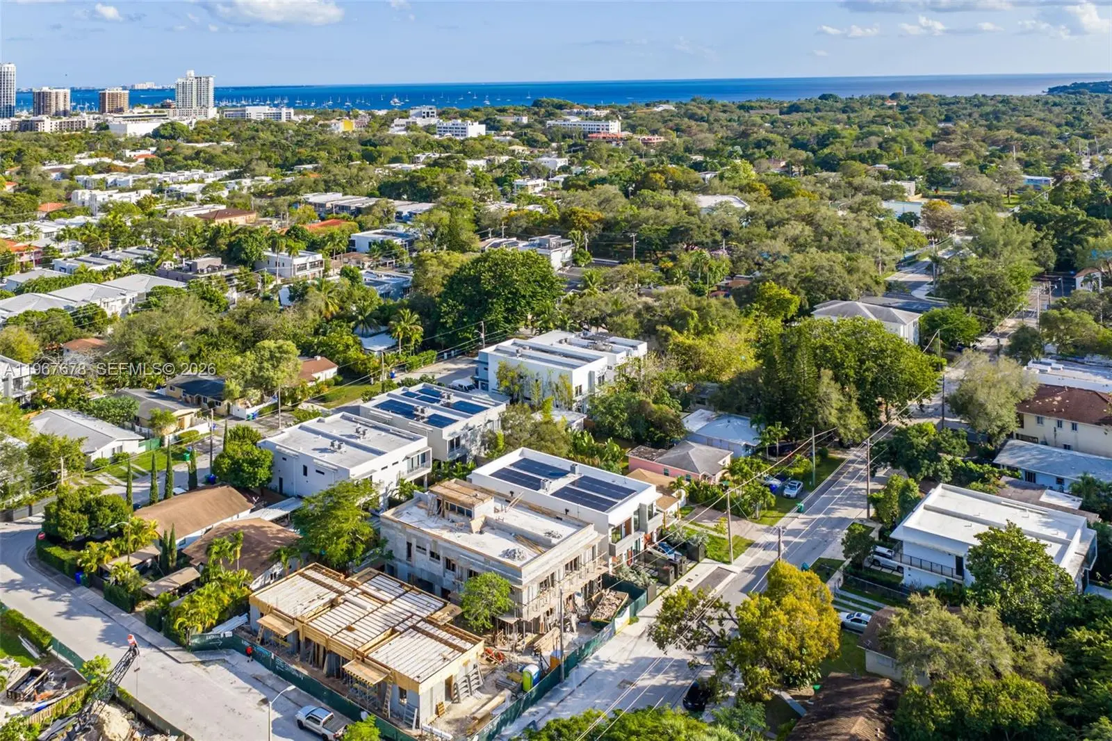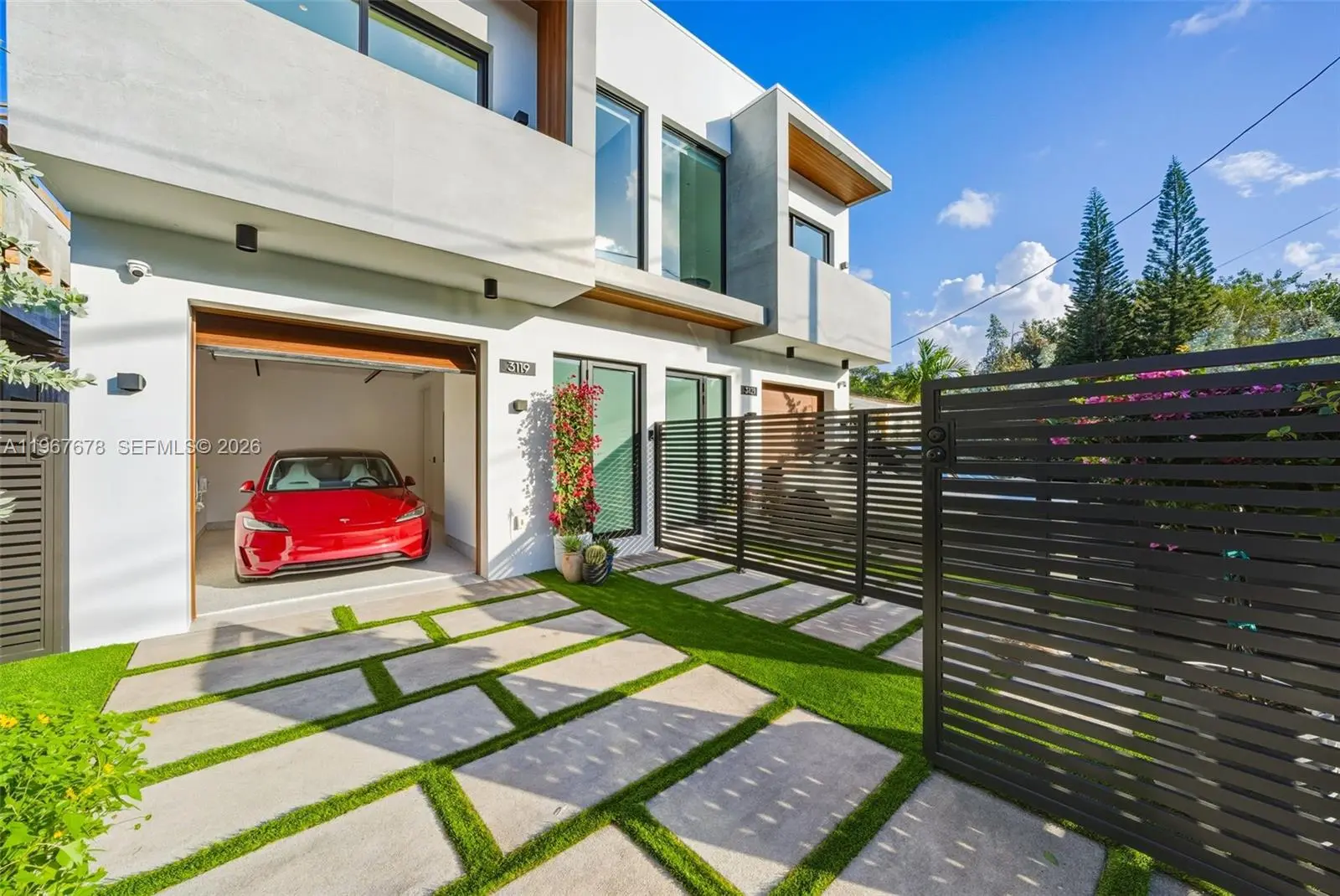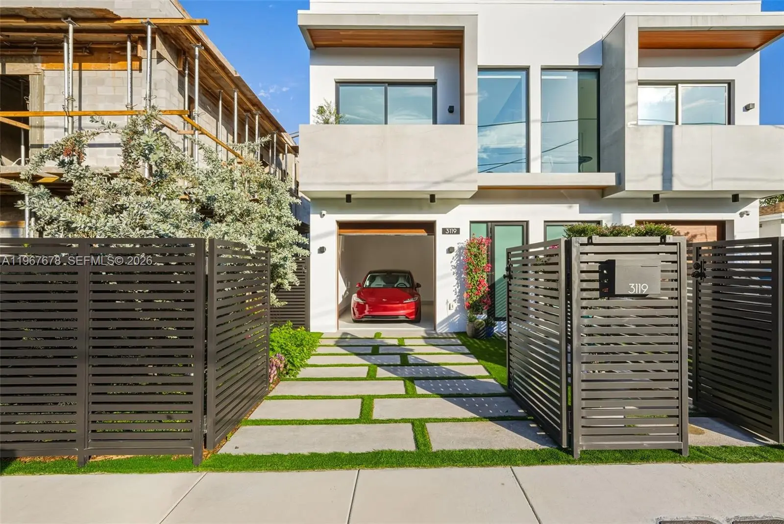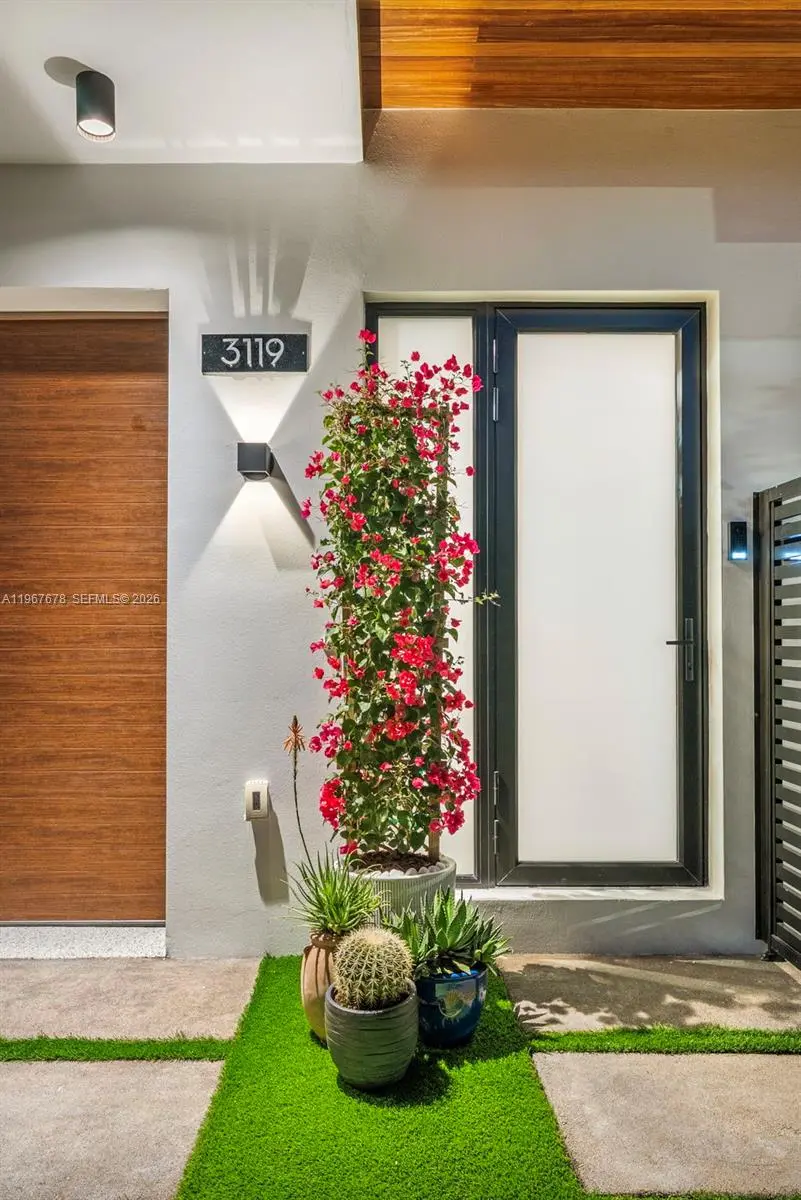 This is the only townhouse on the market pursuing the prestigious LEED Platinum Certification, the highest standard of green building excellence, constructed with SprayRock's superior hurricane resistant steel and concrete structure. A Tesla Powerwall 3 battery pairs seamlessly with an 11.7kW solar array to reduce electric bills + deliver reliable off-grid power during outages. Control4 automation system integrated with Lutron lighting and motorized blackout shades. Stunning Mia Cucina custom kitchen and vanities display exceptional Italian craftsmanship. Innovative Dekton slabs from Cosentino adorn kitchen countertops, bathroom tiling, and exterior balconies for ultra-durable elegance. Features five bespoke Mia Cucina closets: a spacious primary walk-in, guest walk-in, built-in guest closet, and two convenient hallway closets. Oversized 4x4 Porcelanosa tiles for the first floor and premium European oak floors throughout the upper levels. Glass stair railings. European oak interior doors with solid core construction. IPE Wall Paneling and Cork soundproofing add elevated luxury to the primary bedroom and guest room. Italian glass mosaic pool tiling with a dynamic two-color border. Teak-lined balconies + soffits for organic eco-luxury. Samsung Frame TVs grace the living area + all bedrooms. An Elon Musk signature limited-edition matte black Tesla charger. This townhouse isn't just a home— it's a statement of innovation, sustainability, resilience, and timeless sophistication.