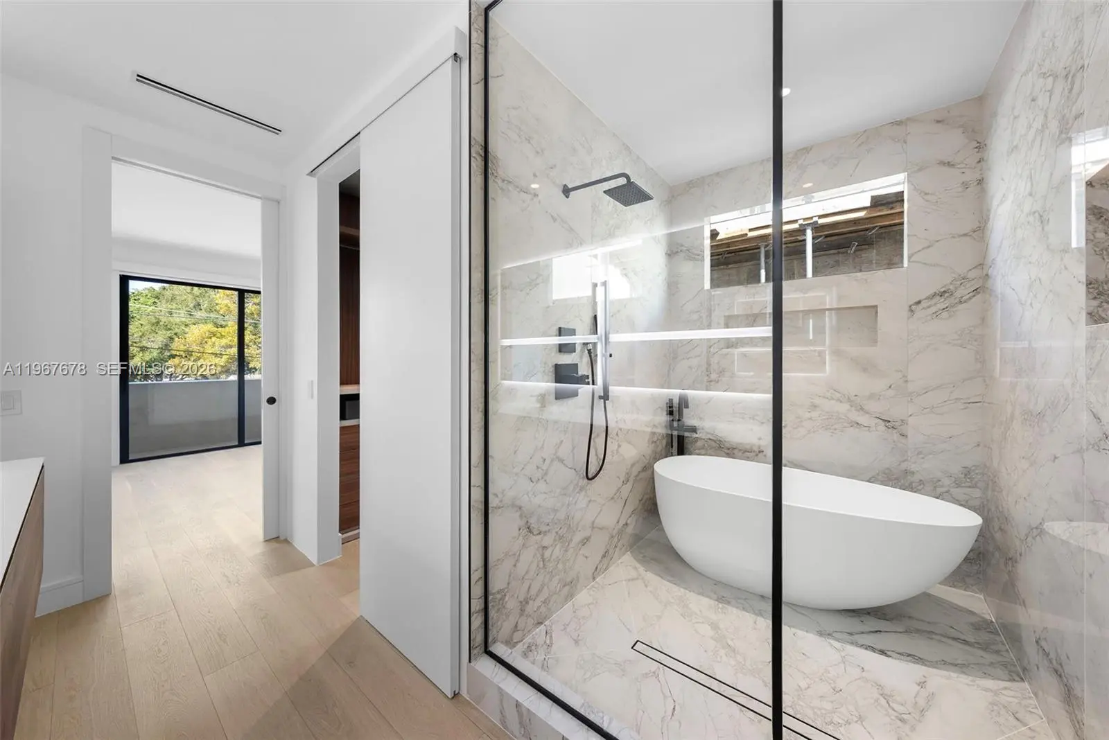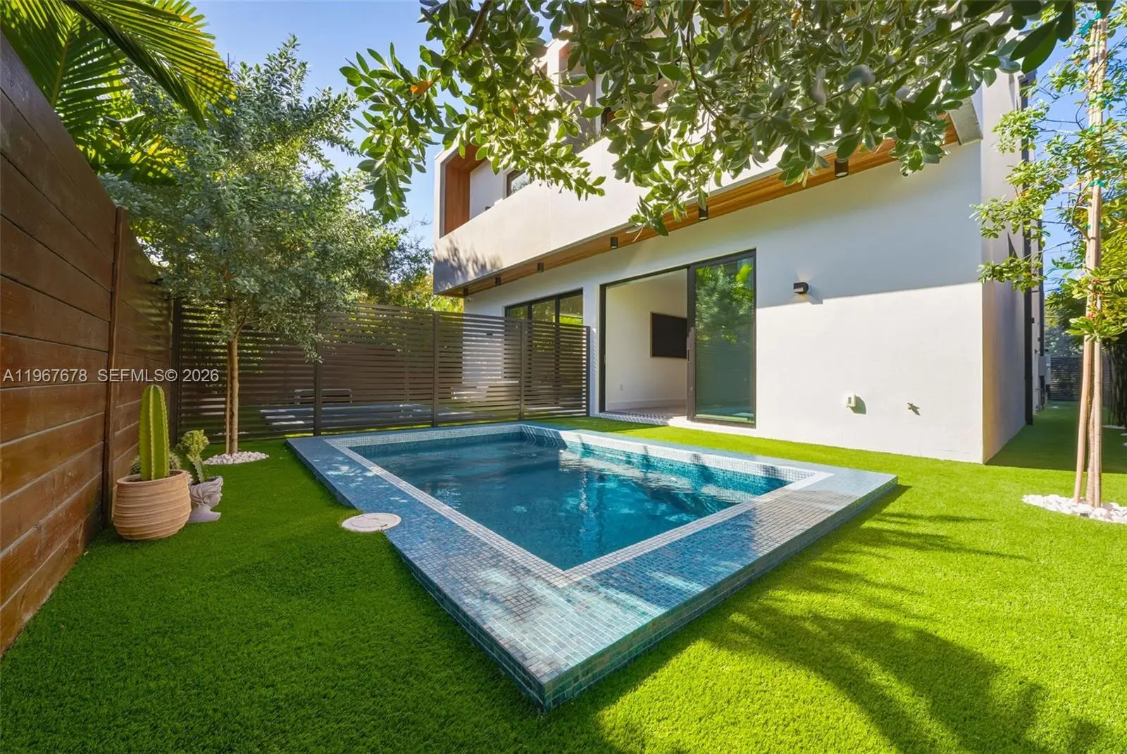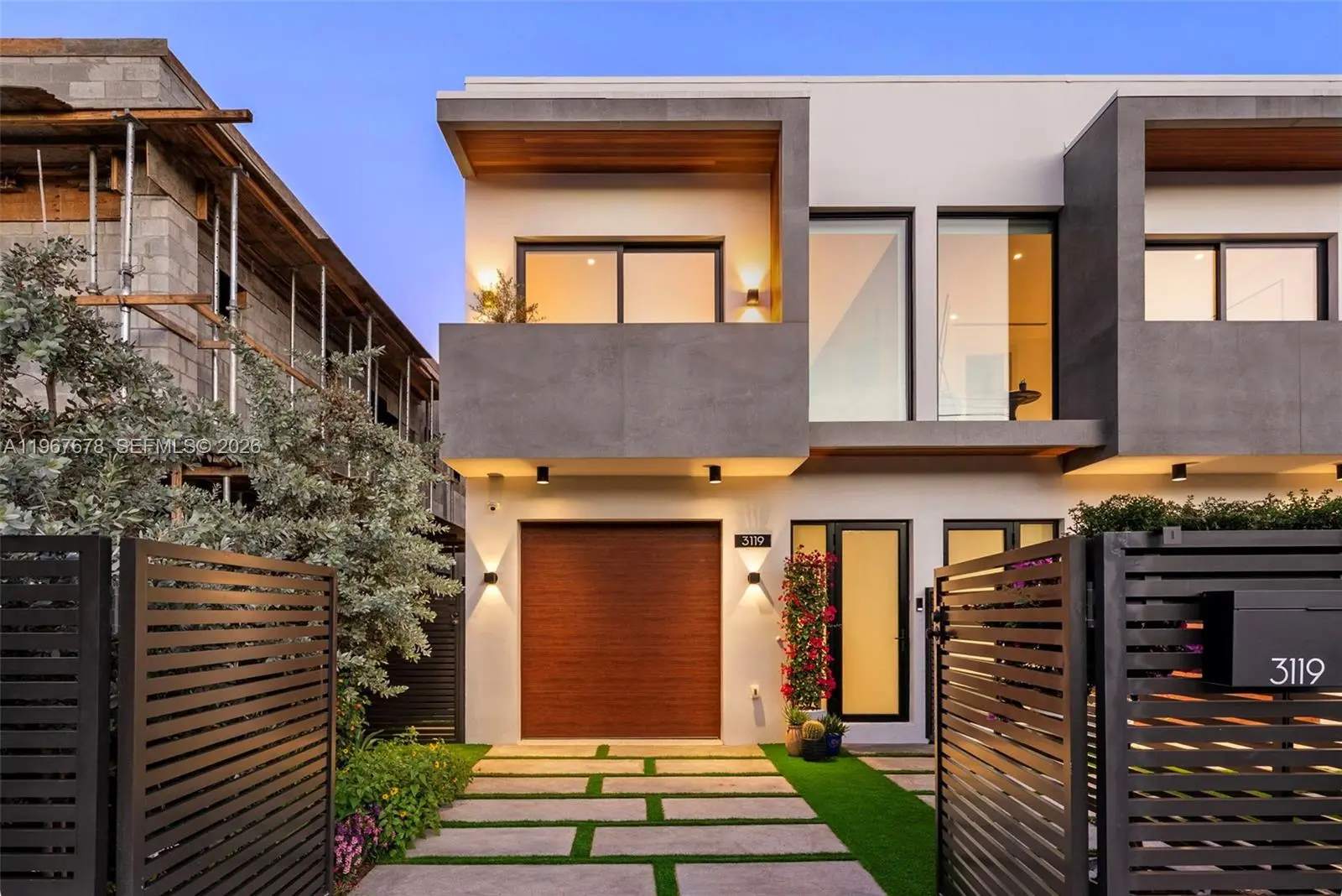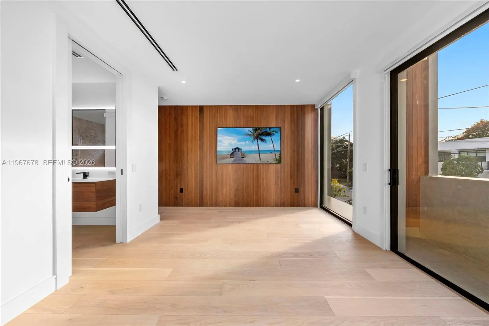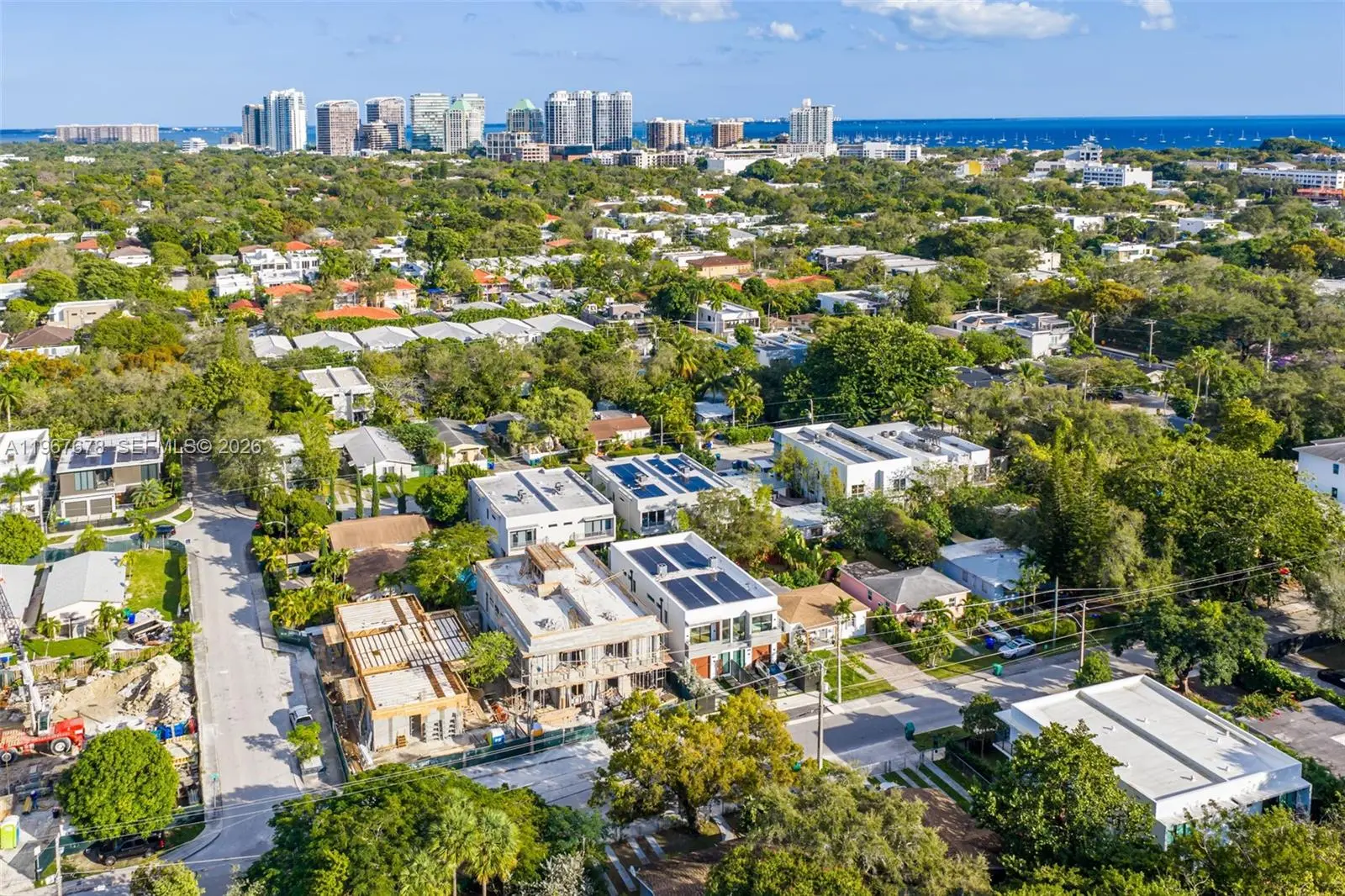 This is the only townhouse on the market pursuing the prestigious LEED Platinum Certification, the highest standard of green building excellence, constructed with SprayRock's superior hurricane resistant steel and concrete structure. A Tesla Powerwall 3 battery pairs seamlessly with an 11.7kW solar array to reduce electric bills + deliver reliable off-grid power during outages. Control4 automation system integrated with Lutron lighting and motorized blackout shades. Stunning Mia Cucina custom kitchen and vanities display exceptional Italian craftsmanship. Innovative Dekton slabs from Cosentino adorn kitchen countertops, bathroom tiling, and exterior balconies for ultra-durable elegance. Features five bespoke Mia Cucina closets: a spacious primary walk-in, guest walk-in, built-in guest closet, and two convenient hallway closets. Oversized 4x4 Porcelanosa tiles for the first floor and premium European oak floors throughout the upper levels. Glass stair railings. European oak interior doors with solid core construction. IPE Wall Paneling and Cork soundproofing add elevated luxury to the primary bedroom and guest room. Italian glass mosaic pool tiling with a dynamic two-color border. Teak-lined balconies + soffits for organic eco-luxury. Samsung Frame TVs grace the living area + all bedrooms. An Elon Musk signature limited-edition matte black Tesla charger. This townhouse isn't just a home— it's a statement of innovation, sustainability, resilience, and timeless sophistication.