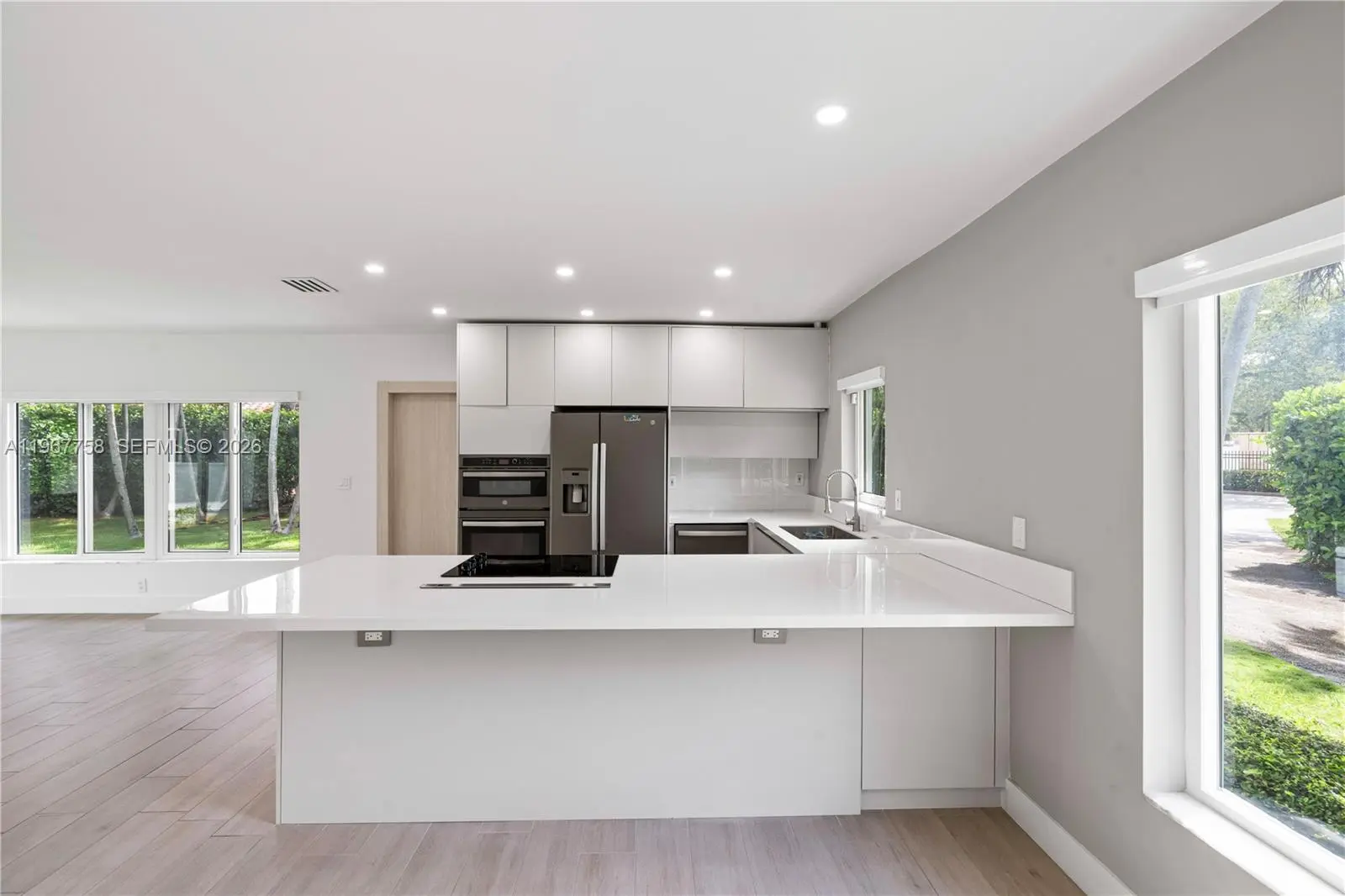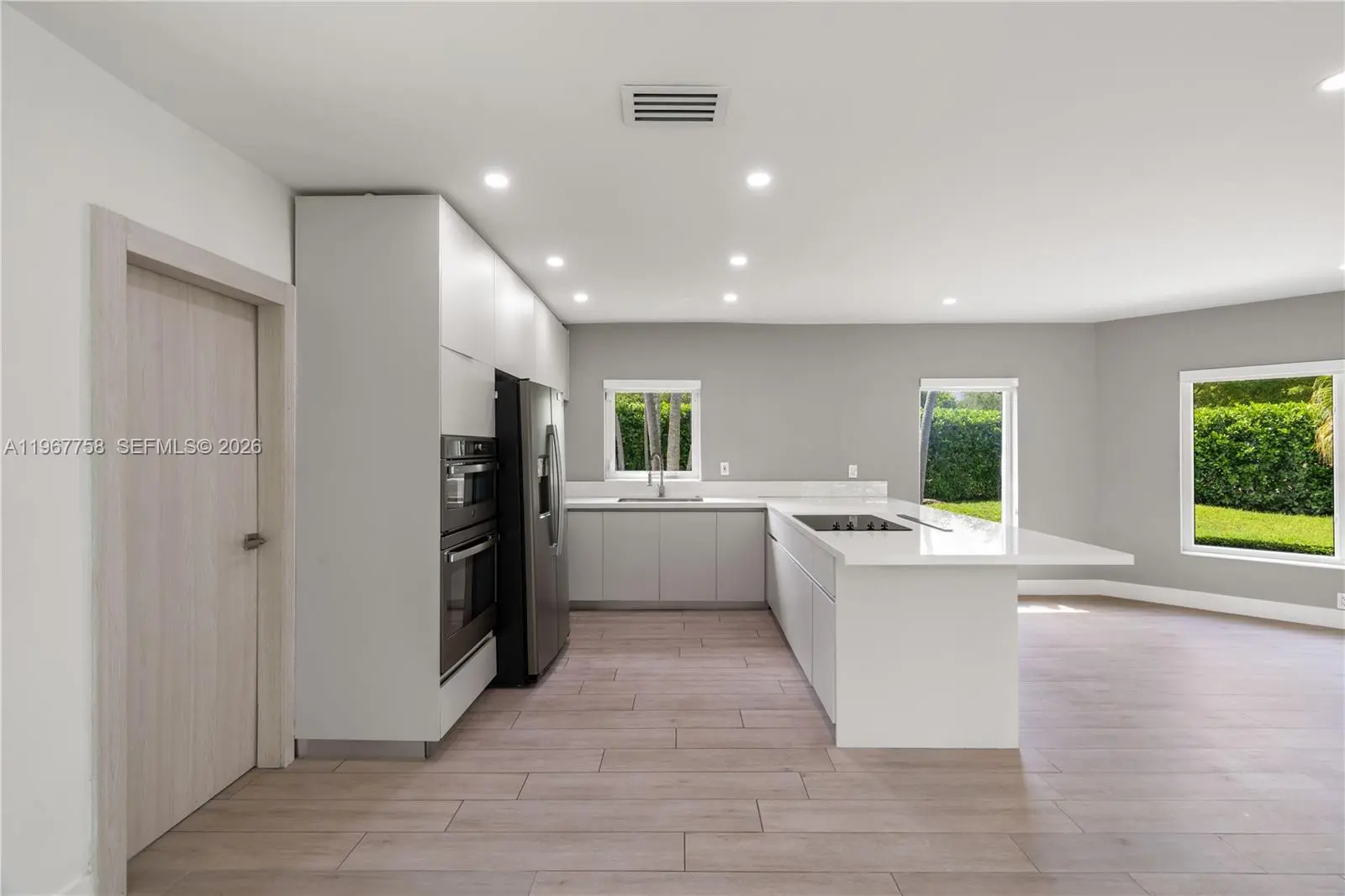 Rarely available corner one-story home, fully renovated and move-in ready! This beautiful property features 3 bedrooms, 2 bathrooms, a one-car garage, and ample private parking. Enjoy an open-concept layout with a spacious modern kitchen showcasing quartz countertops, stainless steel appliances, and sleek cabinetry. Additional highlights include a large washer and dryer, new wood-look flooring, impact windows, fresh interior paint, and abundant natural light throughout. Available starting April 1st. No association approval required. Situated on an oversized corner lot, the home offers generous outdoor space and a private driveway entrance enhanced by a lush hedge for added privacy. Located in a family-friendly neighborhood within a highly rated school zone, just steps from Coral Gables High School and the Shops at Merrick Park. Minutes to Miracle Mile, Coral Gables Country Club, University of Miami, major highways, Brickell, and Downtown.