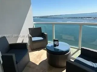 Direct and breathtaking bayfront views from this corner 2/2 spacious unit with floor to ceiling high impact windows and doors! Open balcony, 2 covered assigned parking spaces (side by side), full service building with 24-hr front desk service, security, valet parking, marina, spa, sauna, fitness center, cafe/convenience store, BBQ area, tennis courts, party room and more! Great amenities!