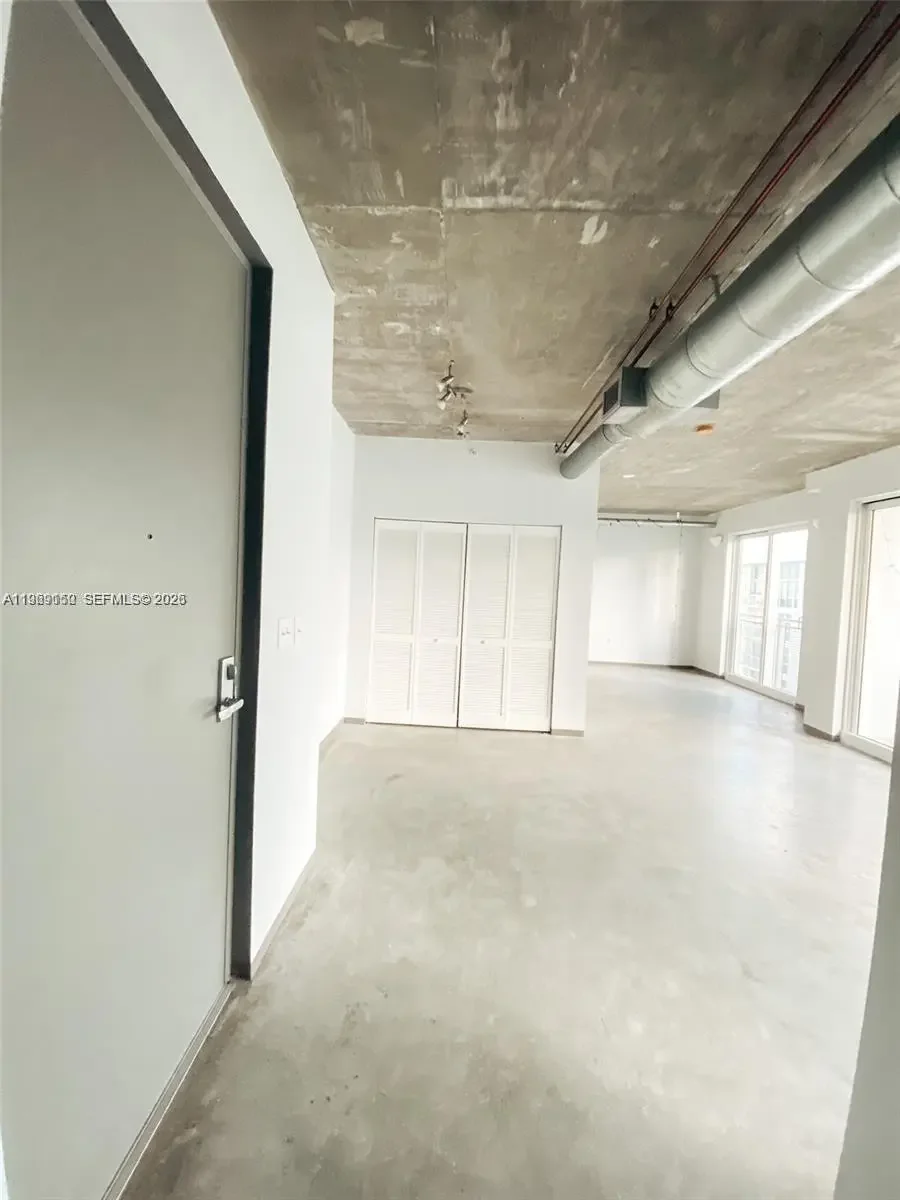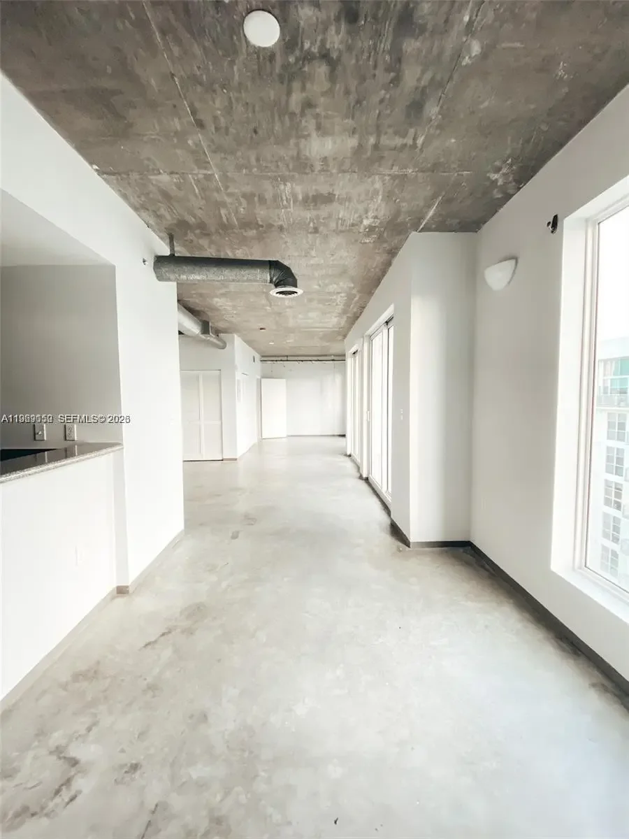 Two parking spaces on this 1/1.5 stunning condo located in Miami's Design And Art District. This condo loft is located in the booming Edgewater area of Miami. Features include concrete floors, 10ft ceilings, large balcony with Bay and City Views, wood kitchen cabinets, stainless steel appliances, washer and dryer in unit, open living and bedroom spaces, floor to ceiling hurricane proof glass doors, newer paint with decorator colors, walk-in closet and more. Unique 9 story building with pool, gym, security cameras and electronic gates. Free water and trash. One year lease, mandatory association approval.