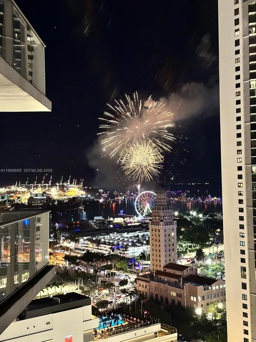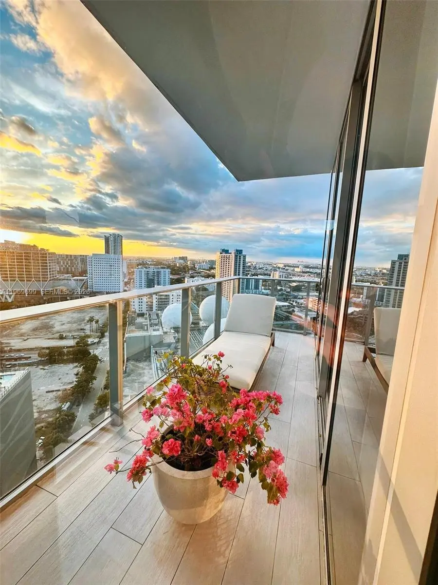 3/4 fully enclosed den residence in PARAMOUNT MIAMI WORLDCENTER. Enjoy sunrise views from one side and sunset views from the other. Private elevator access opens directly into the unit. Layout includes an in-law suite with a wet bar and the option for a separate entrance. The home features new luxury vinyl flooring and high-end finishes, including Bosch and Sub-Zero appliances and Italkraft custom closets and fixtures. The unit has 3 terraces totaling approx. 400 sq ft, including additional private terrace off one bedroom. The den has been converted into a fourth bedroom, complete with a custom built-in desk and wine bar. Building has resort-style amenities, including multiple pools, spa, fitness center, squash, golf simulator, movie theater, tennis courts, valet, and guest areas.