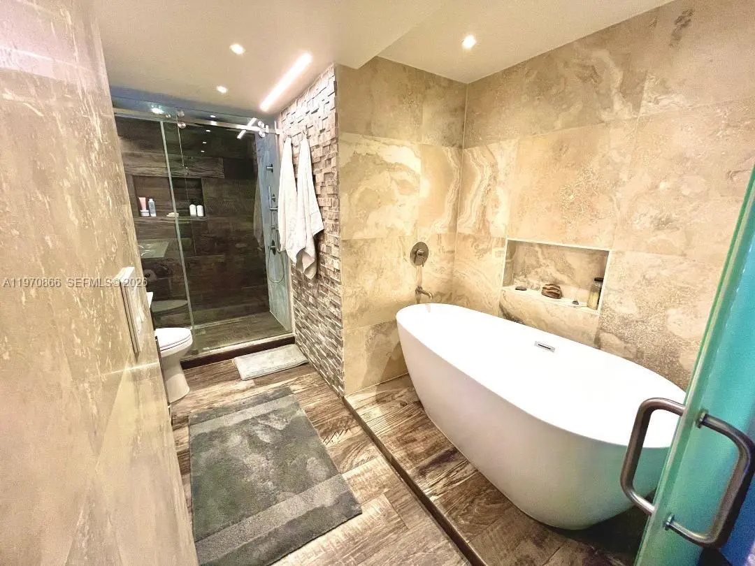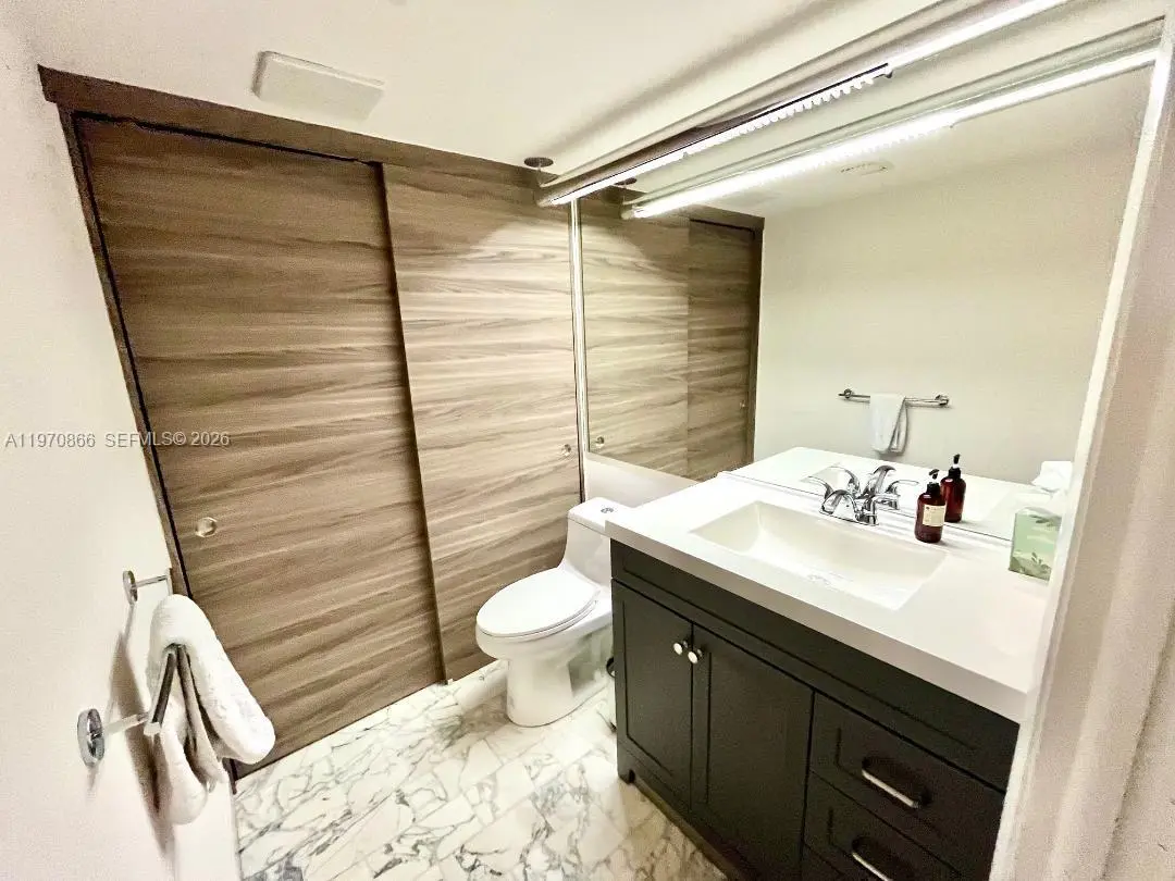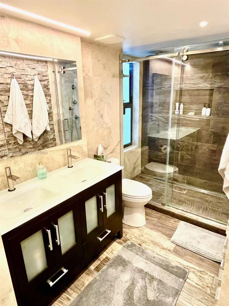 Completely remodeled 1-Bedroom + den, 1.5-bath showcasing breathtaking SE views of Biscayne Bay, Miami skyline, and Miami Beach. This turnkey apartment is offered fully furnished with custom-made pieces (artwork excluded) and has been meticulously upgraded from top to bottom. Highlights include newly installed impact storm windows, custom shades, stained concrete floors, and elegant Venetian plaster walls. The fully renovated kitchen features terrazzo countertops and new appliances. Spa-inspired bathrooms include a soaking tub, while additional upgrades such as a newer A/C system, LED lighting with dimmers throughout, and a custom-designed primary closet ensure both comfort and style. No detail has been overlooked. Simply bring your toothbrush and move right in. The unit also includes two parking spaces. No Assessments. Set within a luxury waterfront community, residents enjoy world-class amenities including a full-service spa, tennis courts, fitness classes, indoor and outdoor pools, marina, on-site restaurants, 24/7 security, high-speed internet, and cable — all included in the maintenance fees. A must-see and Easy to Show!