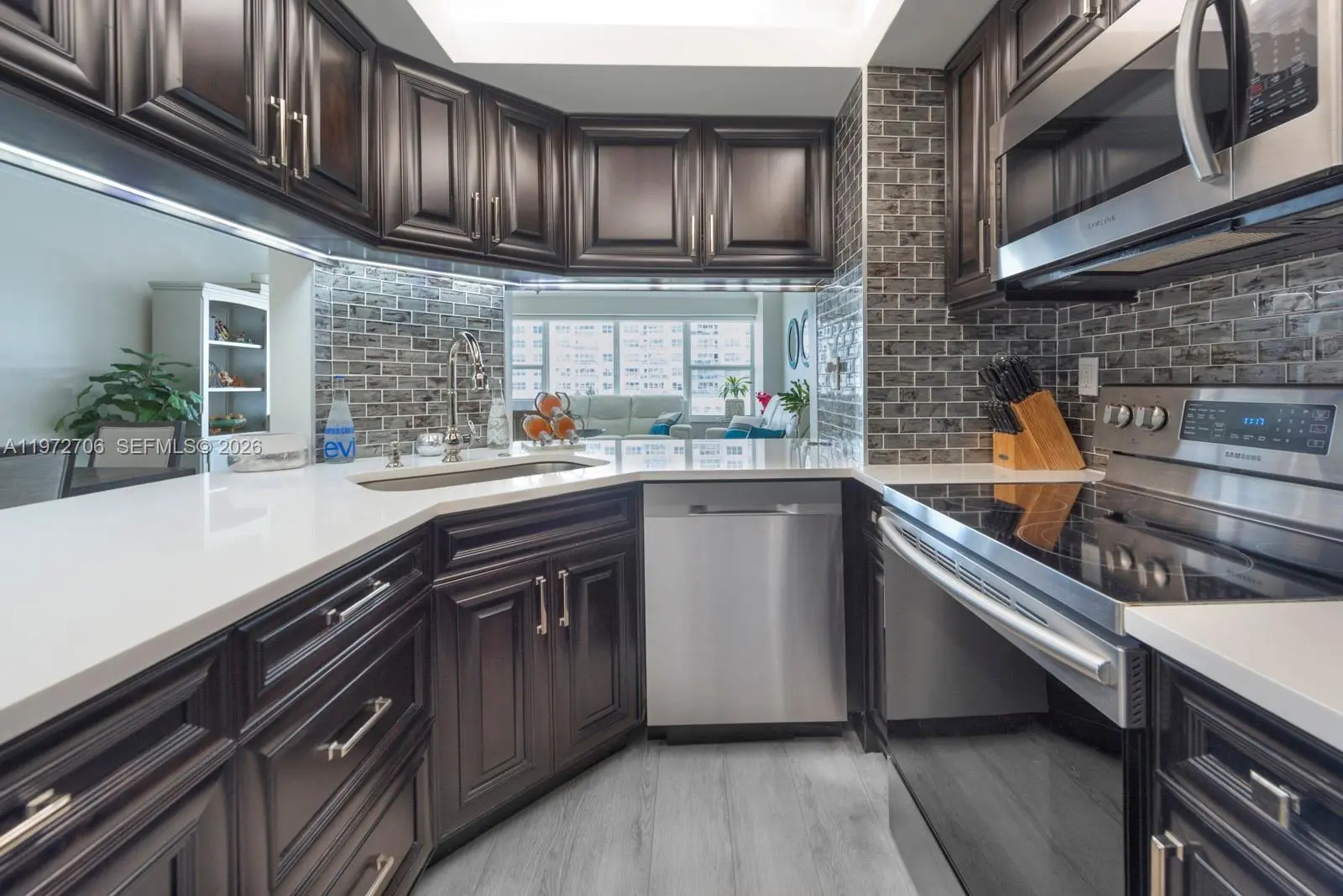 Impeccably renovated turnkey 2BR/2BA at Ocean Summit with sweeping southeast ocean views and exceptional natural light. This elevated coastal residence features an open chef's kitchen with a dramatic quartz waterfall counter, custom cabinetry, and premium finishes throughout. Wide plank flooring and crown molding add warmth and architectural polish. Spa-inspired baths reflect timeless neutral elegance. Hunter Douglas shades, in-unit W/D, and Bosch A/C with advanced air purification. Enjoy beachfront living with oceanfront pool, gym, and coming soon - a beautifully refreshed lobby. Enjoy the resort-style building amenities at an unbeatable location just moments from premier shopping and dining near Galt Ocean Mile's shops, restaurants, and daily essentials
