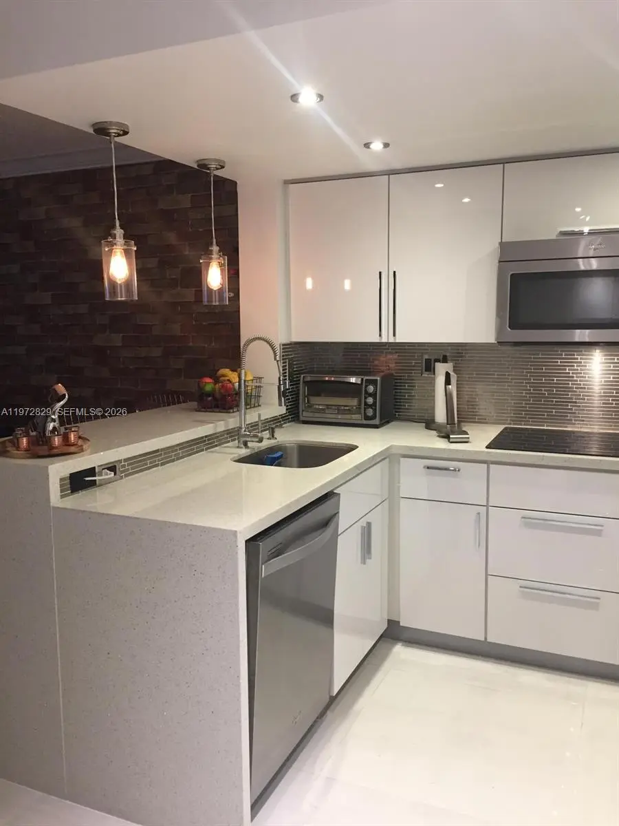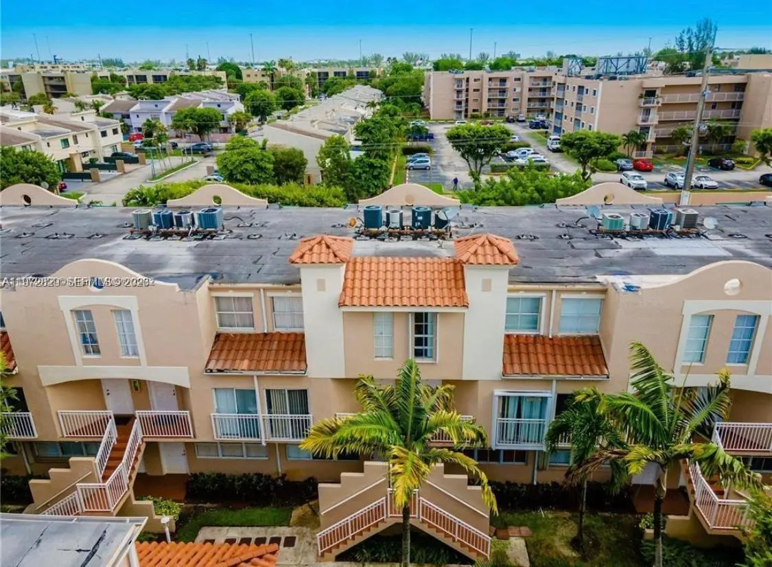Beautifully renovated townhouse-style residence located in a well-kept community. This spacious two-level unit offers a bright and open layout with contemporary architectural details, polished tile flooring, a sleek glass-railed staircase that adds a sophisticated, modern touch. Open kitchen, equipped with stainless steel appliances, modern cabinetry, pendant lighting, and a convenient breakfast bar — ideal for everyday living and entertaining. The bedroom is generously sized with excellent natural light and a built-in workspace nook which provides a perfect work-from-home solution. The upgraded bathroom features a frameless glass shower and custom LED halo lighting, creating a spa-like ambiance rarely found in rental properties. In-unit washer and dryer. Community In-Ground Pool and Kids Park. Conveniently located near shopping, dining, and major roadways. Twelve minutes to Miami International Airport. A true jewel!