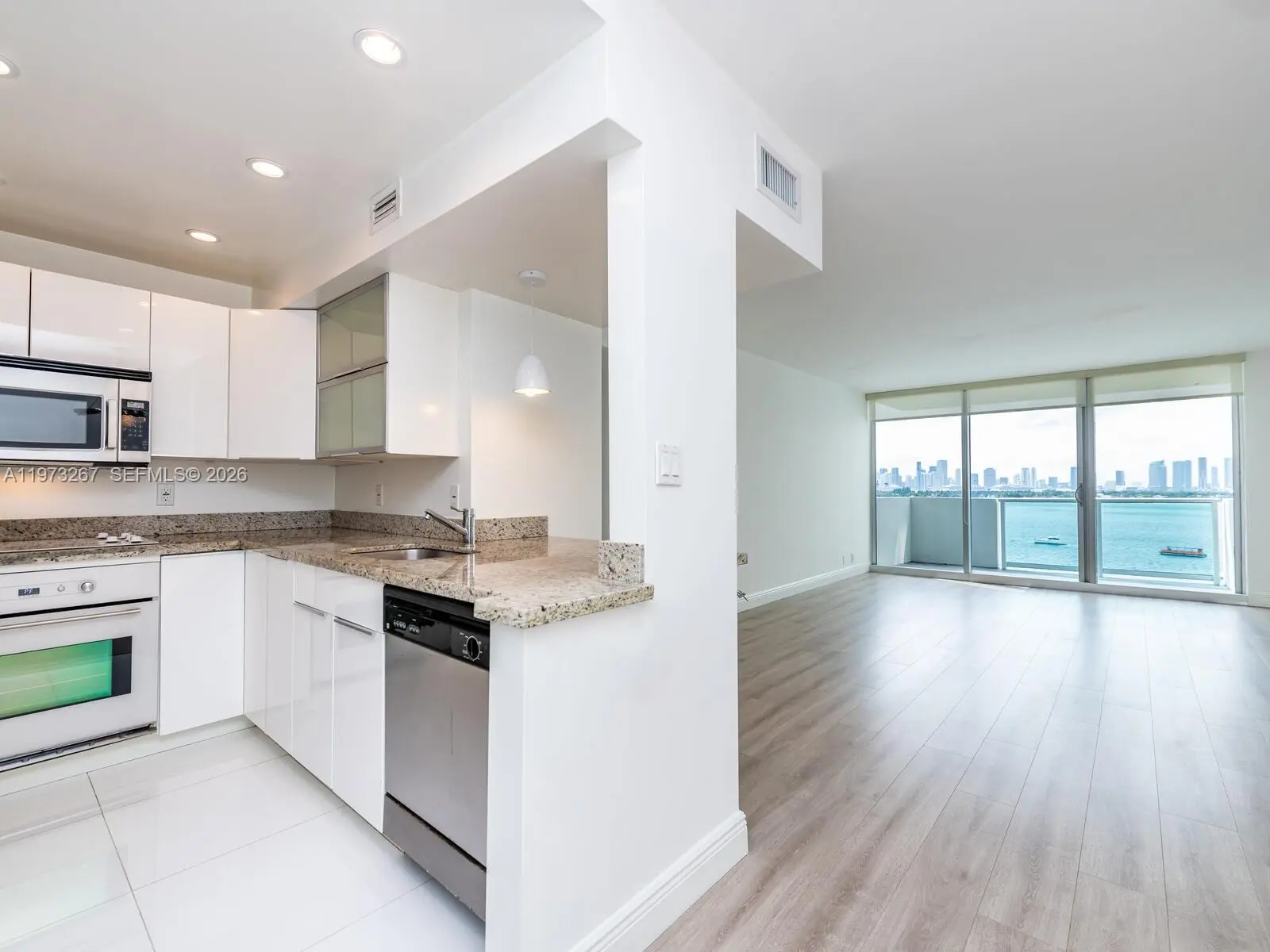 Direct Bay View!Enjoy amazing sunsets and unparalleled sweeping views of downtown Miami and Biscayne Bay from this fully renovated 1/1 in the Mirador North. Unit 803 features open, modern kitchen with granite counters, laminate wood flooring and renovated bath. Impact windows. Mirador North offers full-service amenities with 24 hour front desk, security, heated pool, jacuzzi, valet parking at $95/month for the first car and state-of-the-art private fitness center. Building provided internet and cable included in rent. Available April 1st.