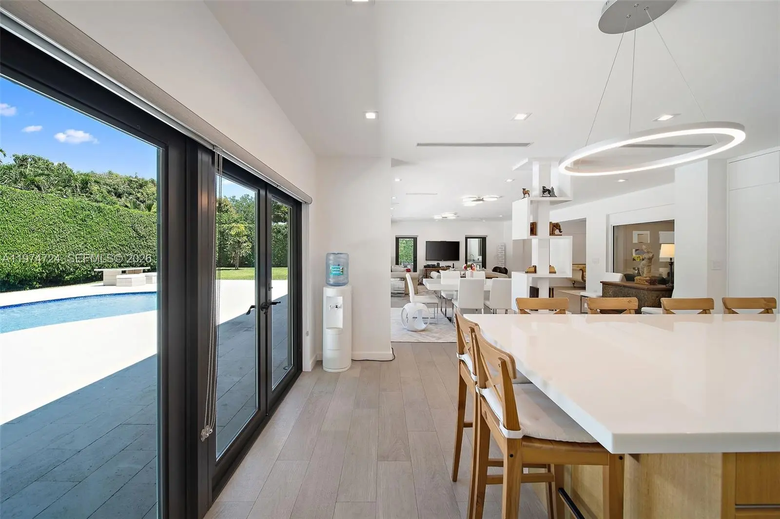 Elegantly renovated 5BR/4.5BA residence on quiet, tree-lined Alfonso Avenue in highly sought-after South Coral Gables. Designed for refined modern living, this home showcases high-end finishes and a seamless, light-filled layout. A magazine-worthy kitchen anchors the space, flowing effortlessly into the spacious family room with views of the dazzling pool, expansive garden, and sleek covered patio—perfect for elevated indoor-outdoor entertaining. The private primary suite is a true retreat with a spa-inspired bath and generous walk-in closet. All additional bedrooms are well-proportioned and inviting. Ideally located near schools, parks, dining, shopping, major highways, and Miami International Airport. Move-in ready luxury in one of Coral Gables’ most prestigious neighborhood.