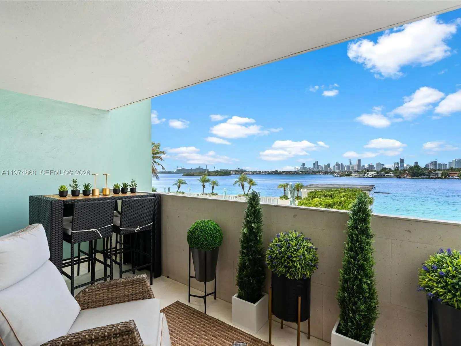 Dazzling Direct bay views from this wonderfully renovated and spacious 2bd/2 bath on Bell Isle. Beautiful high-end kitchen; Italian marble counters and backsplash, top of the line Miele appliances, custom cabinetry, storage space. Large primary suite offers a custom built, large walk-in closet, en-suite master bath w/ rain shower. Enjoy stunning Miami Sunsets from your waterfront terrace. Fantastic South Beach location; a wonderful park in front of the building, the Standard Hotel and Spa across the street, a few blocks to the shops and restaurants at Sunset Harbour. Classis Morris Lapidus bldg offering 24-hour front desk service, bay front pool, kayak launch, bike storage, onsite management. Pet friendly, Assigned Parking, Extra Storage. Excellent opportunity!