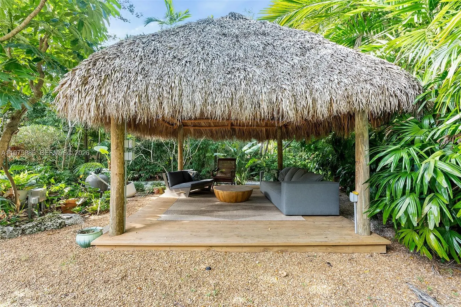 Set on a 14,600 sq. ft. lot, this impeccably renovated home blends elegance and functionality with a spacious garage and oversized pool. Expansive impact windows connect indoor and outdoor spaces, framing lush backyard and pool views. The minimalist design exudes sophistication, featuring a split floor plan, generous living areas, and beautifully updated kitchen and baths. The private garden boasts a deep pool, Tiki hut, and ample space for outdoor entertaining. Wind-mitigated and outside the flood zone, this Coral Gables section home offers easy access to Coconut Grove, Coral Gables, MIA, and South Miami. An added perk this home is zoned for Coconut Grove Elementary.