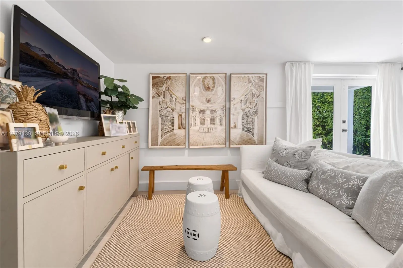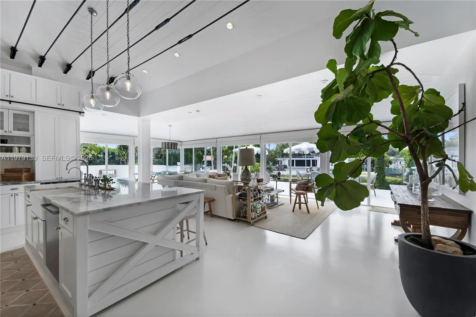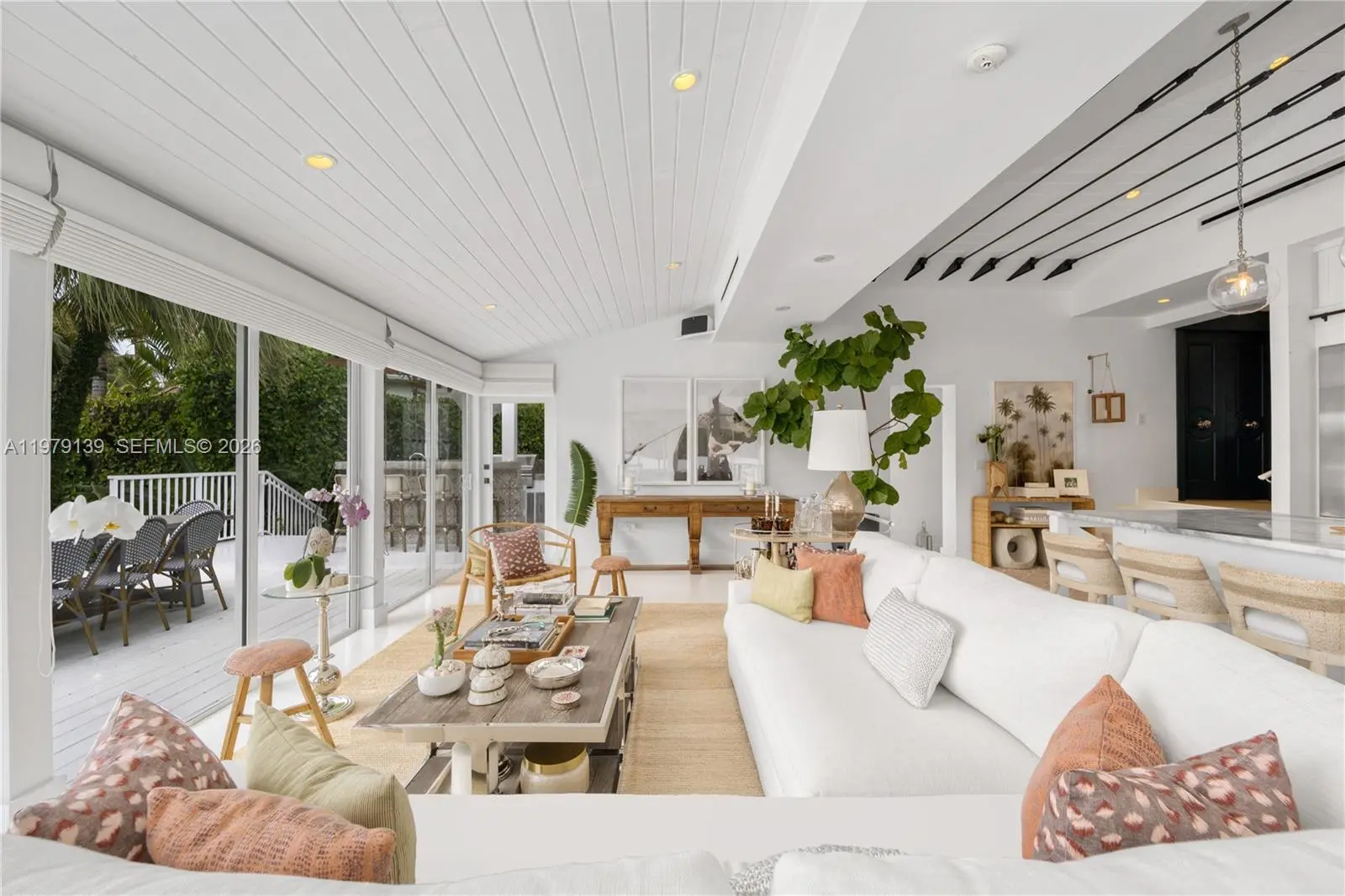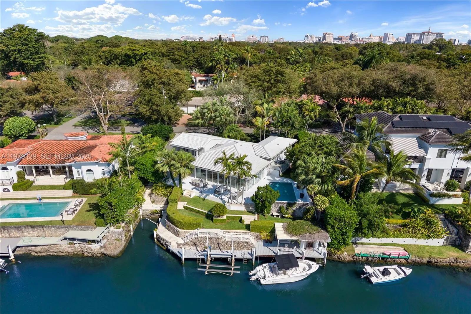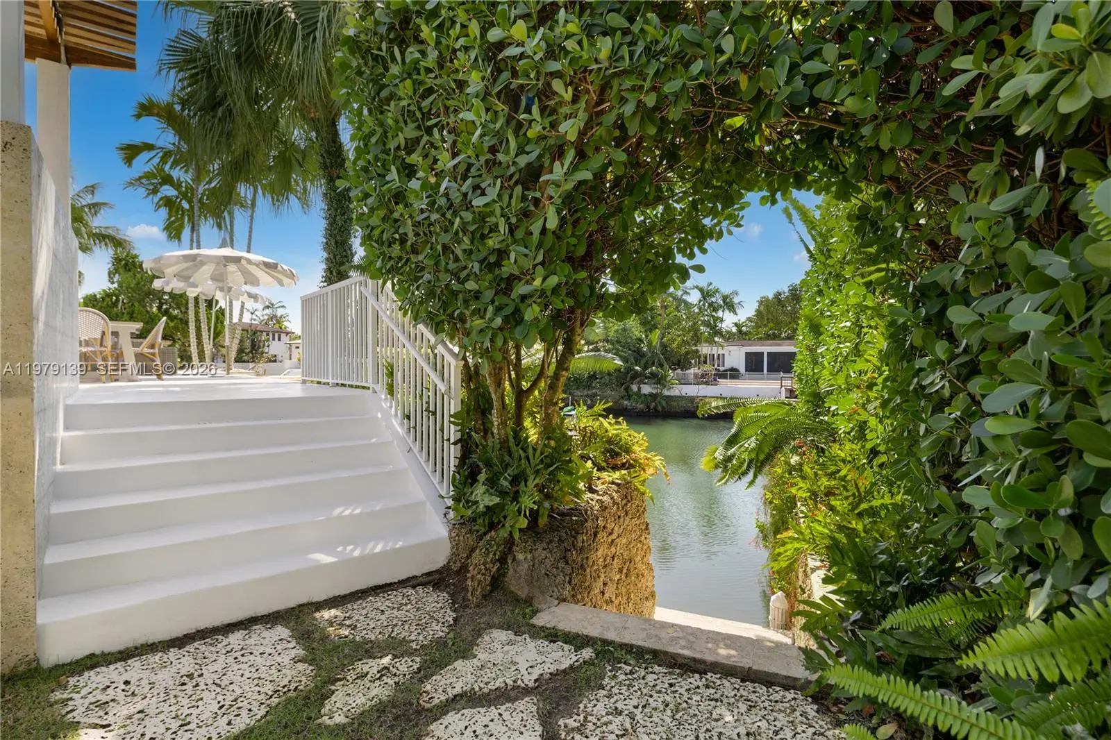 A classic Florida-style residence enjoys sweeping views across the widest bend of the canal, where tranquil water vistas and lush surroundings create a truly picturesque setting. Resting atop a natural bed of exposed coral rock along the dock, the home reflects the timeless character of South Florida’s coastal architecture, gracefully positioned along 90' of waterfront on the Coral Gables Waterway. 3 bedrooms + den and 4 bathrooms, light-filled interiors are framed by expansive picture windows that invite the outdoors in, bathing the home in natural sunlight throughout the day. Painted concrete and wood floors lend a relaxed yet sophisticated coastal aesthetic, while a thoughtfully designer-curated interior creates polished, picture-perfect living. In 2015, the residence underwent a comprehensive renovation including updated plumbing, electrical, the enclosure of the garage to enhance the home’s livable space. Roof installed within the past 3 years. For boating enthusiasts, the property features a rare grandfathered boat cutout and a dock with storage shed. This exceptional property offers a rare opportunity to experience classic Florida waterfront living with thoughtful modern updates in a serene, light-filled setting. Not located within a flood zone. As seen in LUXE Magazine.