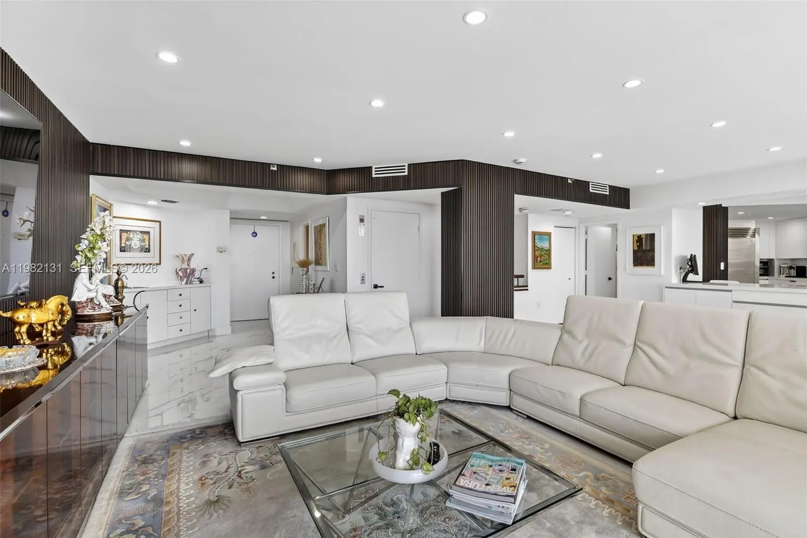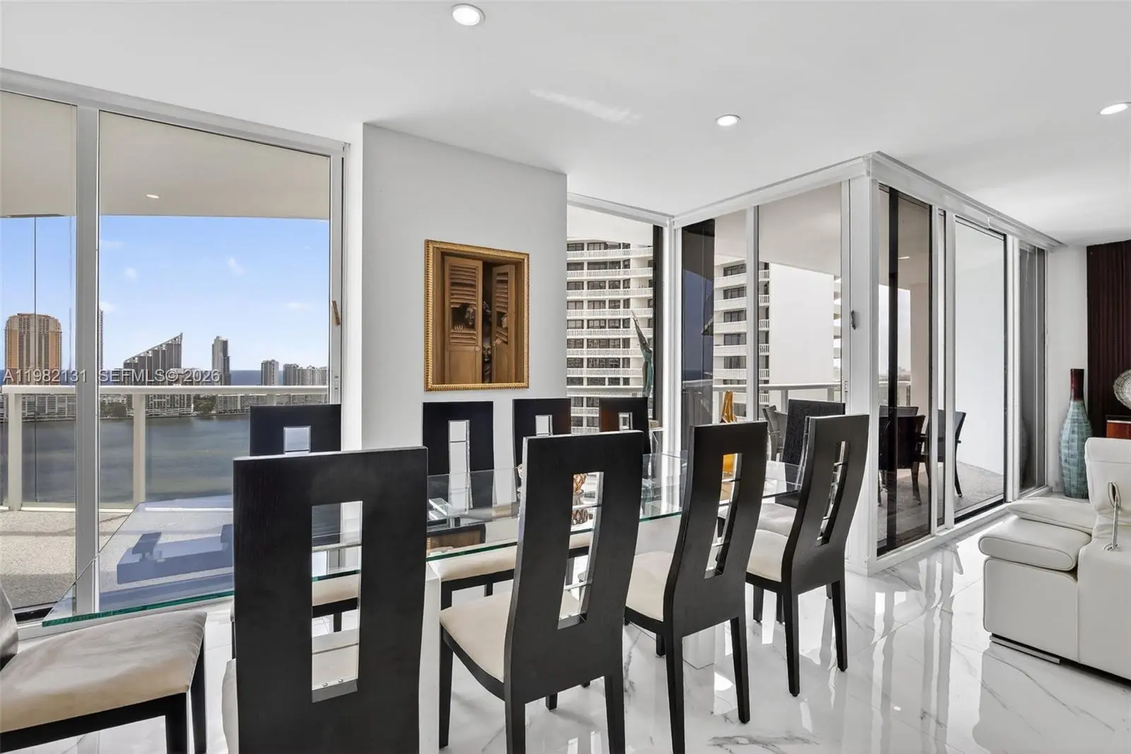 Wow! Spectacular Ocean Views From This Completely Renovated Two Story 3 Bed + Staff Quarters/ 4.5 Bathroom Modern Home In The Sky with Elevator. No Expense Was Spared & Nothing Original Remains! Stunning White Light/ Bright Residence Has The Finest Finishes incl. Open White State of the Art Kitchen with Top Of The Line Appliances, White Quartz Countertops, White Gloss Cabinets, All Large Italian Porcelain Floors Throughout, Custom Lighting, Smart Home, New Bathrooms, Enlarged Shower In Primary Bathroom with Seperate Sauna, Electric Shades, Huge Terraces w/ Floor To Ceiling Glass To See The Ocean, Intracoastal, City Views. This 84 Acre Island Paradise Offers Country Club Amenities Featuring State Of The Art Spa Bldg w/ workout Classes, Indoor Swimming Pool, 15 Tennis Courts, Pickle Ball Club, Kids Tennis Camp/ Lessons, 3 Restaurants, Starbucks, Deli, Kid's Playground, Marina, Courtesy Bus, Exercise Path, & More!