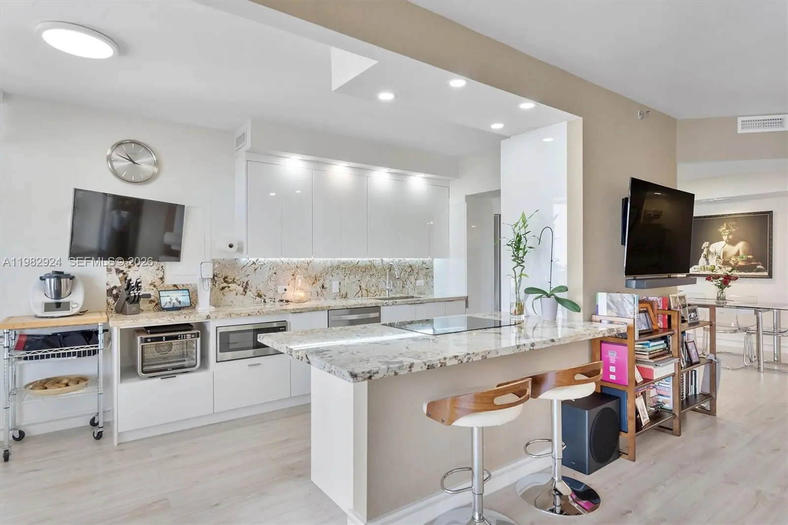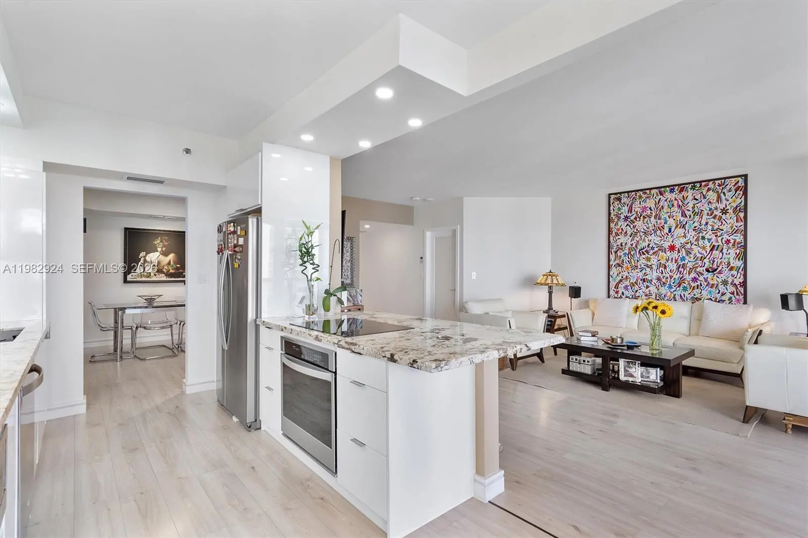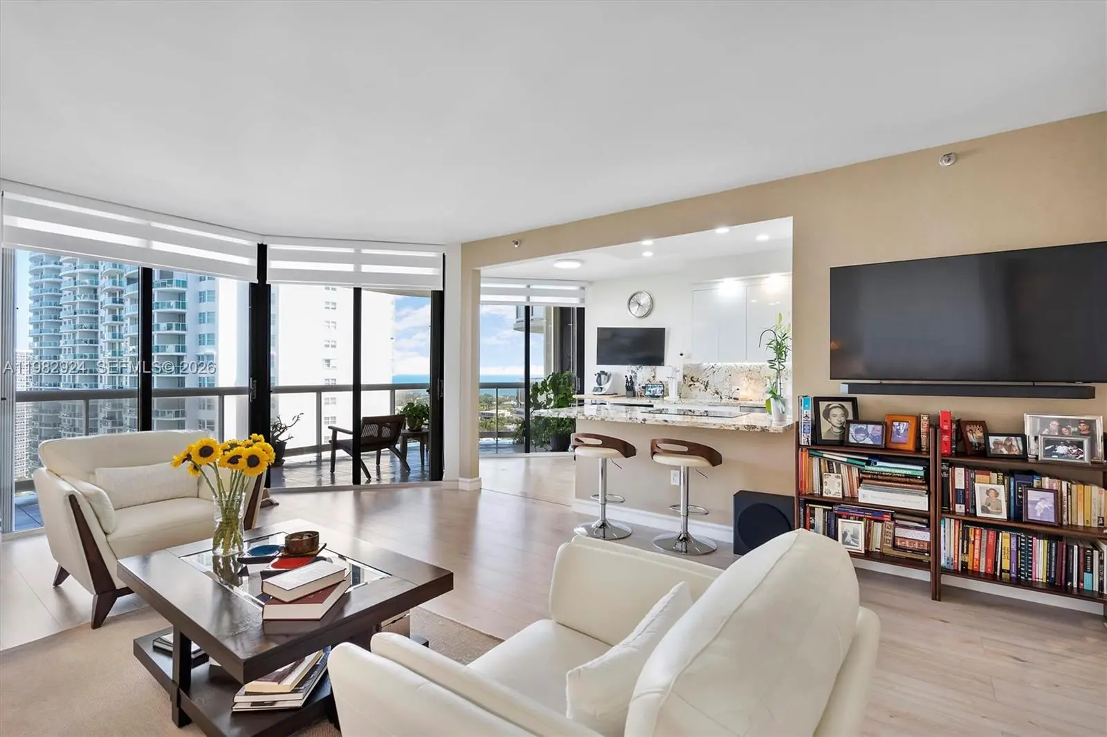 Opportunity is calling—step into this high-floor gem with breathtaking views of the Intracoastal Waterway and lush golf courses, where every day begins with a stunning sunrise and ends with a spectacular sunset. This expansive 1,622 sq. ft. condo boasts a thoughtfully designed split floor plan, offering 2 spacious bedrooms and 2 beautifully updated bathrooms. The completely remodeled kitchen, featuring modern finishes, opens seamlessly to the living area, making it perfect for both relaxing and entertaining. Luxury vinyl flooring adds warmth and style, while custom-built closets provide smart storage solutions. LED recessed lighting, smooth ceilings, and a brand-new A/C (installed in 2025) complete this impeccably maintained space. Convenience is key here, with assigned parking for one vehicle and a second spot available. Nestled within a full-amenity waterfront building along Aventura's iconic Country Club Drive, you'll enjoy a lifestyle of comfort and sophistication. Lovingly cared for by its current owners, this home is ready for you to move in and make it your own. Don’t let this opportunity pass you by!