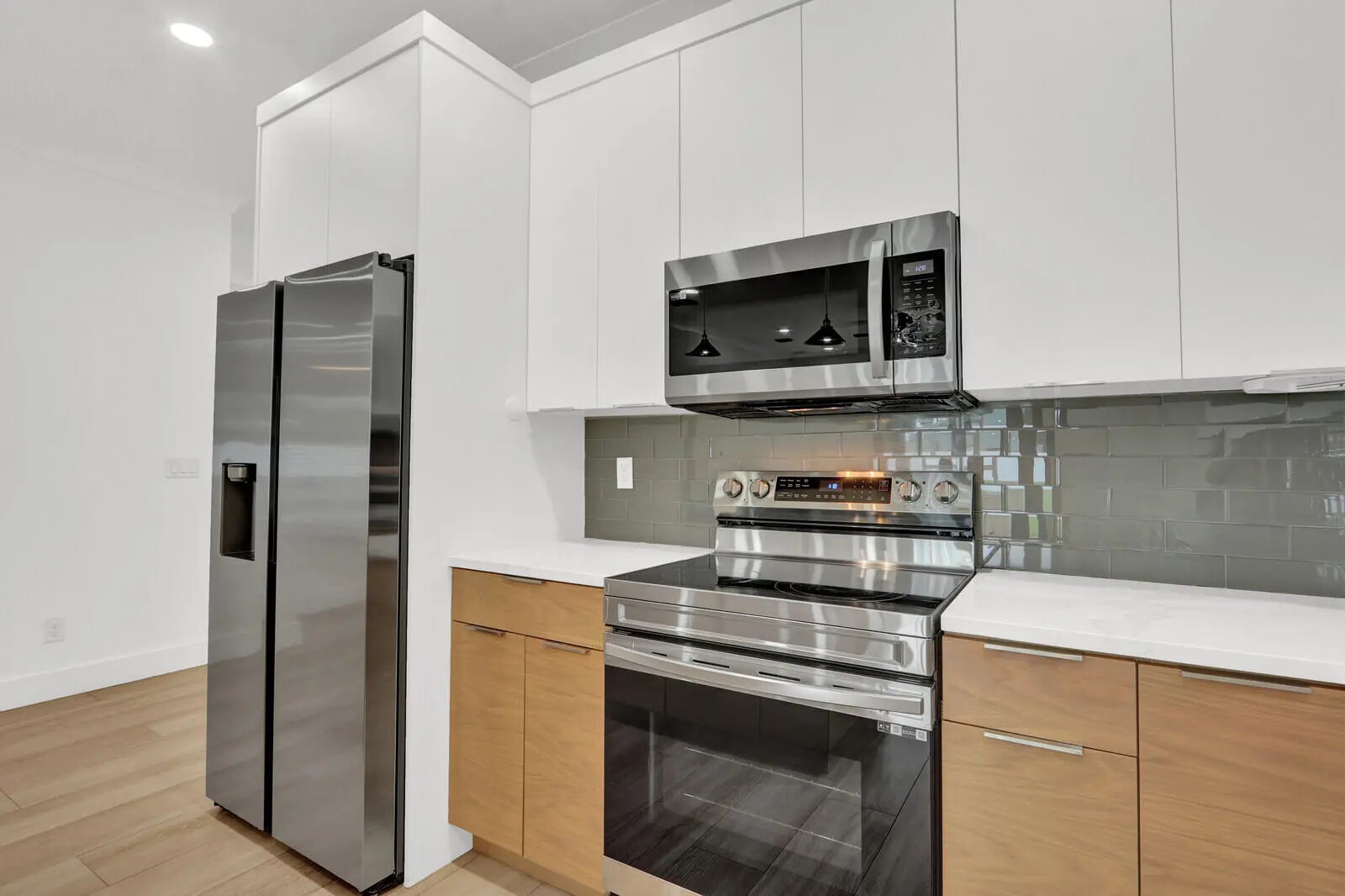 Stunning 4BR/2BA Like-New Construction in Jupiter! This impeccably maintained home features a bright, open floor plan highlighted by warm wood-look tile flooring throughout—no carpet! The gourmet kitchen is a chef's dream, boasting sleek quartz countertops, premium cabinetry, and brand-new appliances. Both bathrooms are elegantly finished with matching quartz counters and modern fixtures. Enjoy the convenience of a spacious dedicated laundry room and a massive, fully fenced backyard perfect for outdoor living and privacy. Nestled in a prime location with an easy commute to I-95, you are minutes away from Jupiter's world-class beaches, dining, and shopping. Move-in ready and designed for modern comfort.