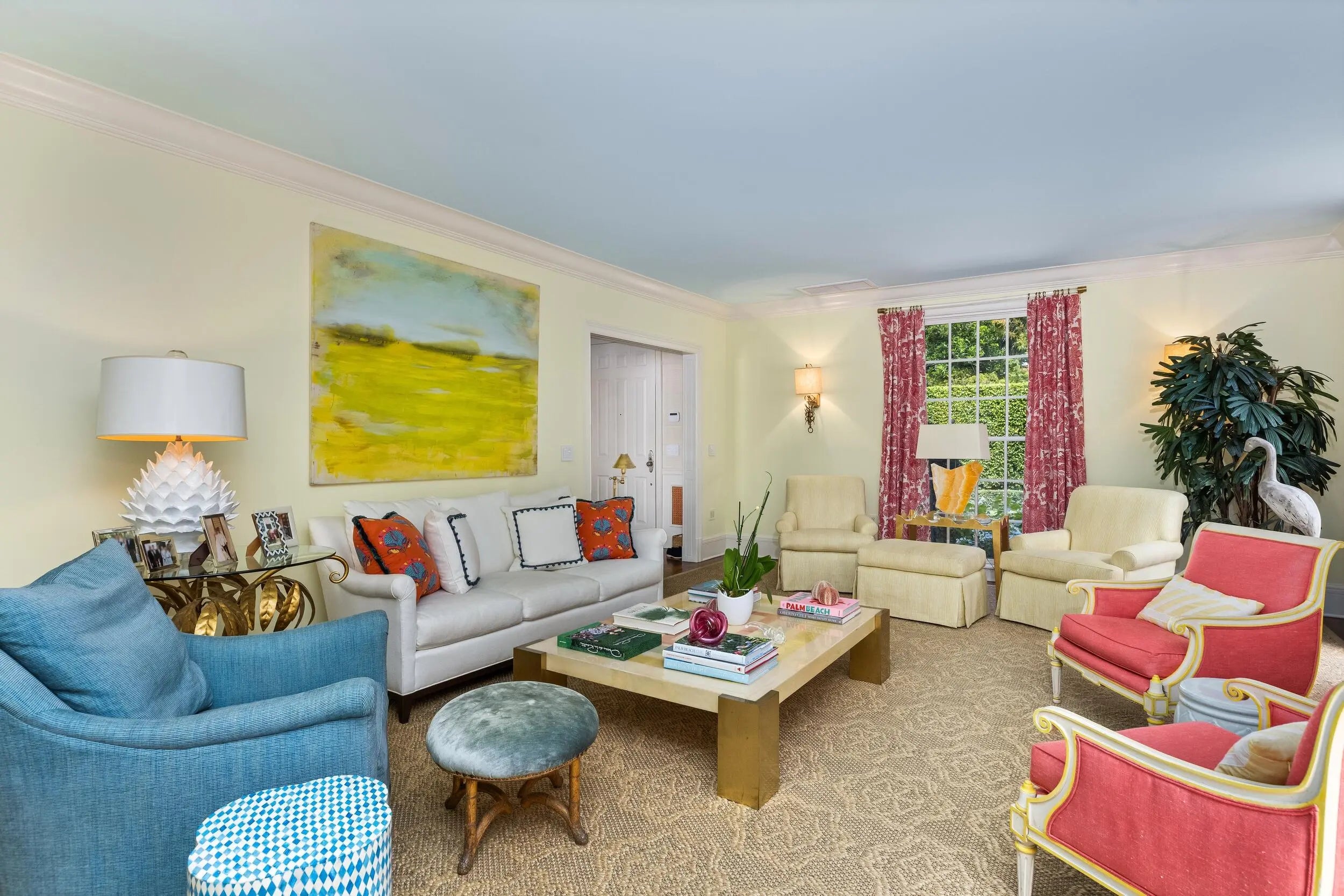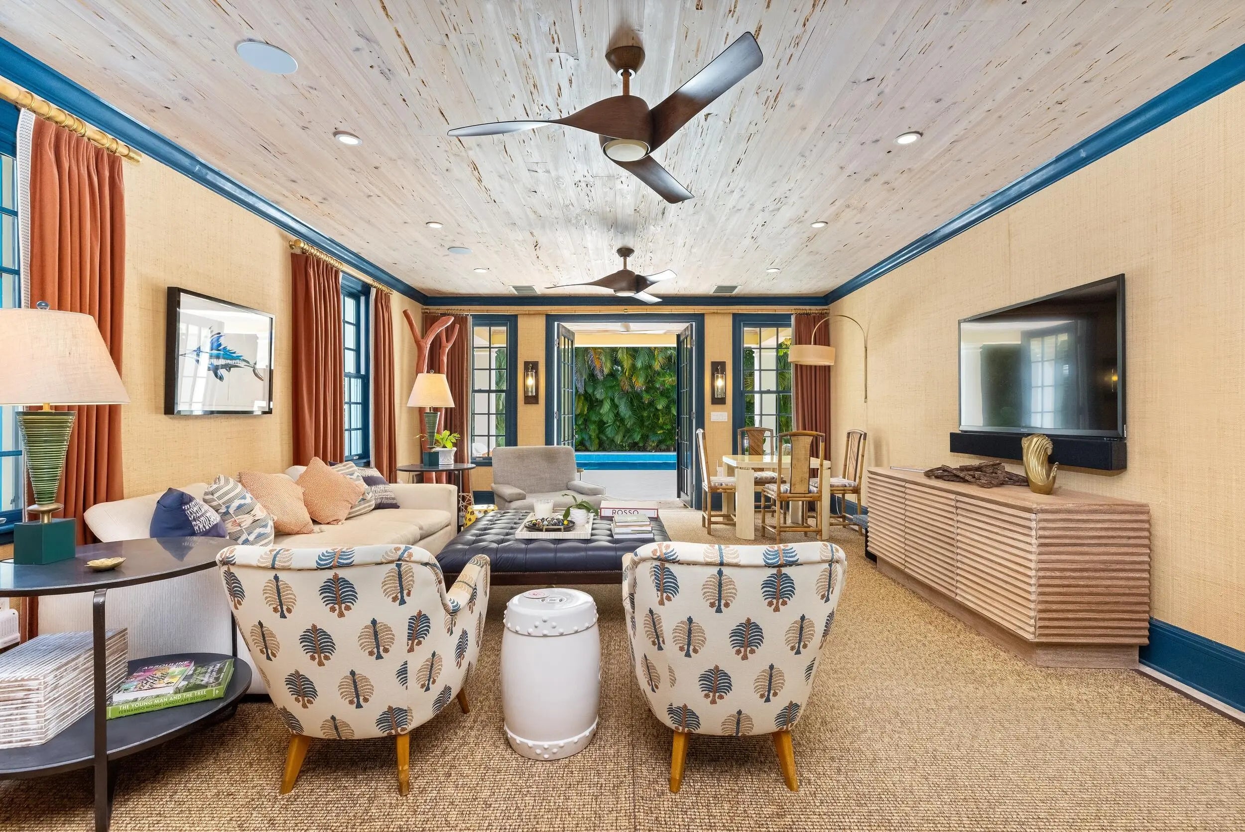 Stunning 6BR/6.1BA John Volk estate in a prime Near North End location on the serene Emerald Lane. Filled with natural light, the beautiful interiors were designed by Celerie Kemble Interiors. Fabulous open floor plan with spacious dining room, library with built-ins, gourmet kitchen, and breakfast room. Exterior features include large swimming pool with cabana, open and covered balconies, and spacious covered loggia.
