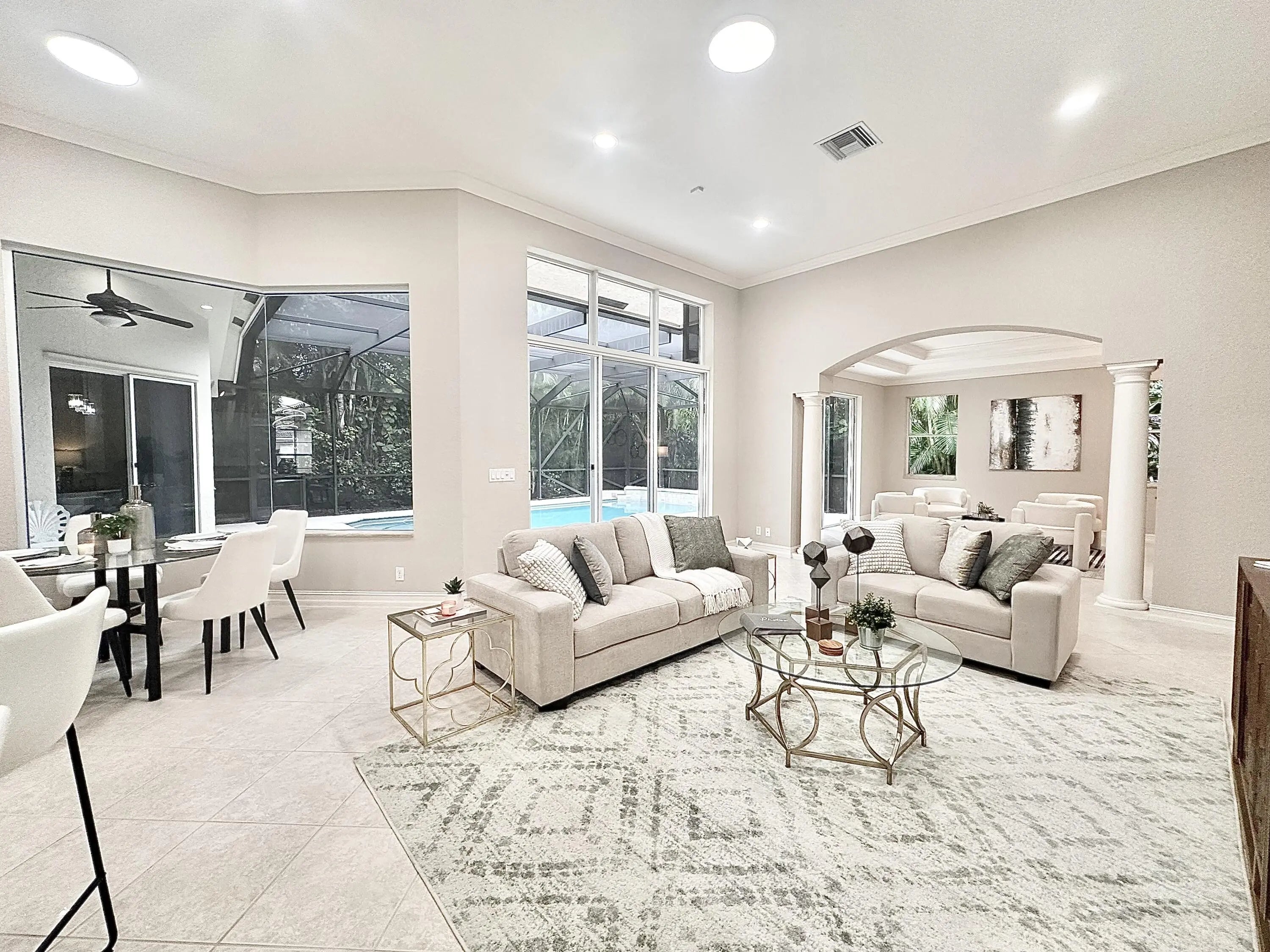 Nestled in the heart of Weston Hills, beautiful, impeccable 5/3/3CG single story with GAME/MEDIA room on 1/4 acre with HEATED POOL, screened and surrounded by lush foliage for ultimate privacy. Spacious 3-split floorplan recently painted in soft neutrals, high coffered ceilings, crown molding. Brand new updates include 2025 ROOF & gutters, 2026 luxury vinyl in all bedrooms, 2026 LED lighting, new modern chandeliers, 2024 AC, 2022 80-gallon water heater. Exquisite $70K spa-like primary bath renovated 2023, free standing stone tub, custom cabs, quartz counters, Kohler Memoirs fixtures, porcelain flooring & more! Other remodeled bathrooms updated 2026. Granite kitchen w/ Thermador oven, Dacor cooktop, Franke sink, Grohe faucets. Exquisite professional landscape creates stunning curb appeal! MORE DETAILS! OFFERED FOR FIRST TIME EVER ON THE MARKET! Gorgeous, impeccable 5Bed + Play/Media Room, 3Bathroom, 3CG single story residence, custom built by Issa Homes, has been meticulously maintained by the original owners, lovingly used as a part-time vacation home, and is being offered on the market for the very first time! Situated in the heart of Weston Hills Country Club on a private quarter acre lot in the upscale enclave of Eagle Run II, this gracious home of 3242 sq ft under air (per builder original blueprints), with a triple split floor plan, recently painted interior in soft neutrals, high volume ceilings and brand-new features such as a new 2025 Roof, a stunning, new high quality luxury vinyl flooring in all the bedrooms, new LED flush-mount lighting & new modern lighting (2026). In 2023, the crisp, classy primary bathroom was custom crafted by a professional interior design company completely from scratch, including all new plumbing, centered by a $7000 custom stone free-standing tub and featuring high-end quartz counters, Kohler Memoir faucets, custom solid wood cabinetry & mirrors, wall sconces, white porcelain flooring. The gourmet granite kitchen, with wood cabinetry and all designer-brand stainless appliances, opens to the breakfast area and family room, which leads into another spacious room, custom built as a media/game room or large playroom, or could easily be closed in as a 6th bedroom, with adjacent access to a bathroom. Both secondary bathrooms were updated in 2026. Tile flooring on diagonal extends throughout all living areas. The home also features two AC units, one 5-ton plus a 2.5-ton unit installed Nov 2024, and a Smart high efficiency 80-gallon hot water heater, installed 2022. Outside, a new gutter system with integrated leaf guard was installed with the new roof in 2025. The expansive pool area is surrounded by lush landscaping, creating a totally secluded tropical oasis retreat, fully screened for year-round outdoor entertainment in privacy and comfort. Beautiful curb appeal with professional manicured landscaping is designed and maintained by one of Weston's top landscaping companies! Eagle Run is an island-like enclave in the heart of Weston Hills, completely surrounded by lake and golf, close to neighborhood parks, playgrounds, ball courts, with quick access to the trendy Town Center with dining, shops, boutiques, outdoor cafes, and charming lakefront broad walk, and a short drive to any one of the several shopping plazas. Weston also boasts top medical facilities, including Cleveland Clinic, Broward Health and Baptist Urgent Care. A-rated Weston schools, with the school bus pickup conveniently just around the corner. Quick highway access to Ft. Lauderdale, Miami, Naples and the Palm Beaches. Welcome home to the best of South Florida country club living, you've arrived!