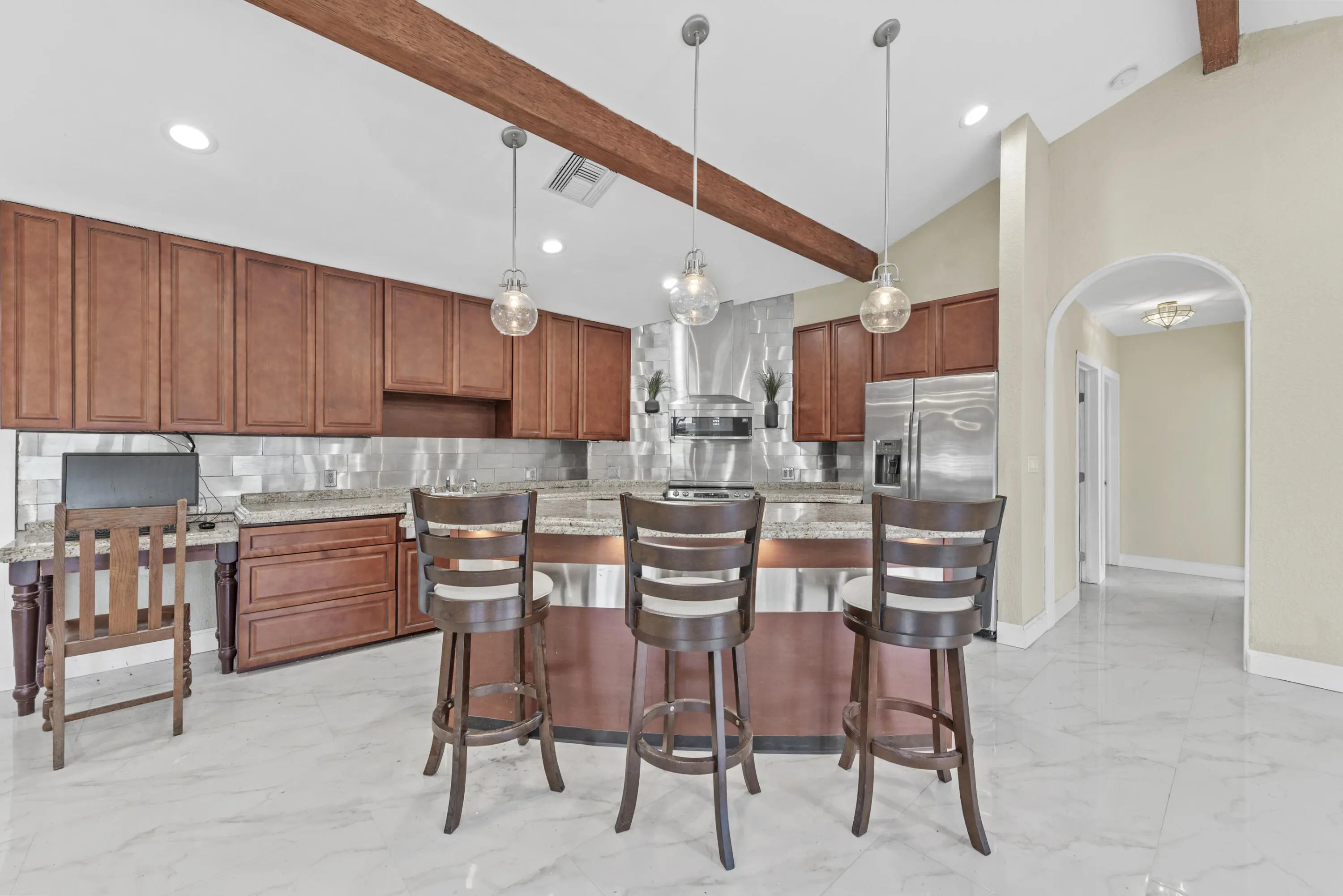 Cathedral Ceiling(s), High Ceilings, Kitchen Island, Vaulted Ceiling(s)