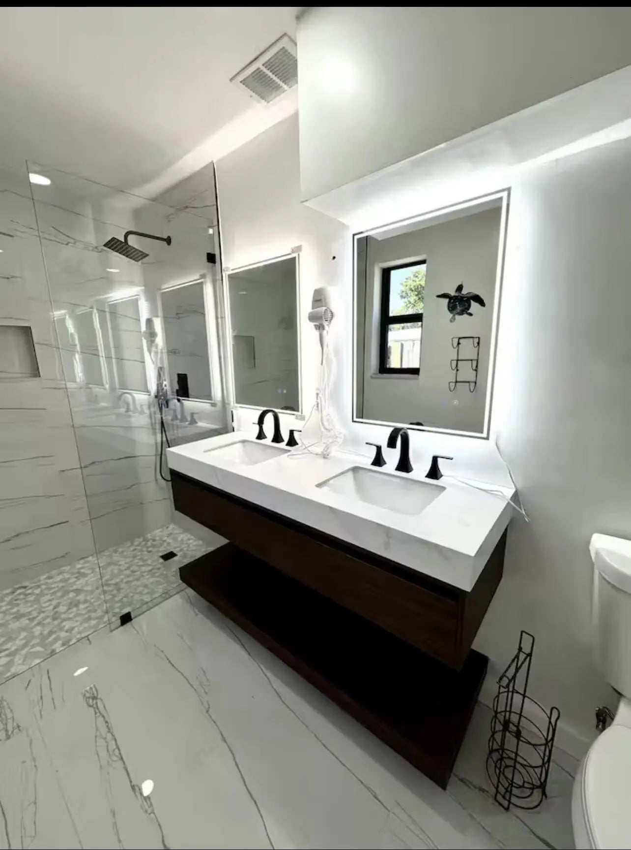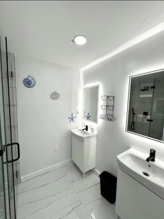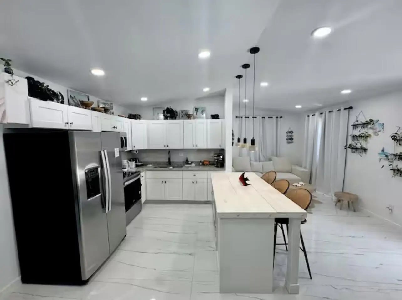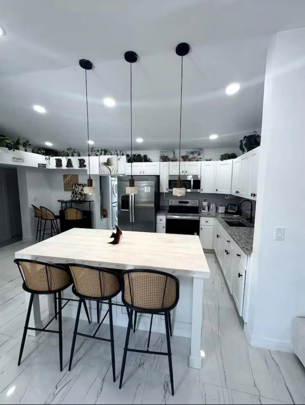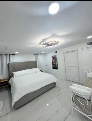 Fully furnished or unfurnished, 3BD/2BA luxury retreat in Pompano Beach, now available! Renovated top to bottom with gorgeous marble tile, recessed lighting, and sleek black trim on windows, doors, and fixtures. Have a true chef's kitchen with ample storage in cabinetry, built-ins, and overhead, an island, stainless steel appliances, and mini bar. Master suite features a king mattress set, sitting nook, a sliding closet & seamless ensuite access. The two additional bedrooms each offer queen comfort. The hotel-worthy bathrooms include illuminated dual vanities, double sinks, and walk-in showers surrounded by lavish architectural design. Outside, a raised swim spa, designer paver terrace, & patio set await. Fenced lot and W/D available. Minutes from the beach. Schedule your showing today!