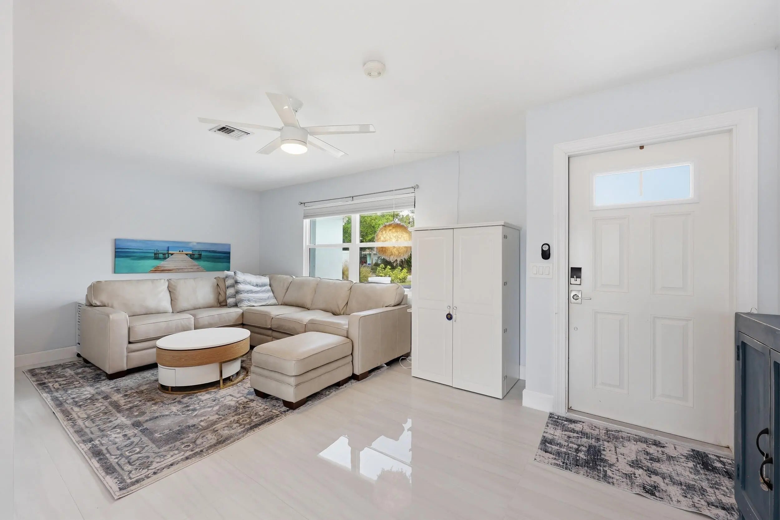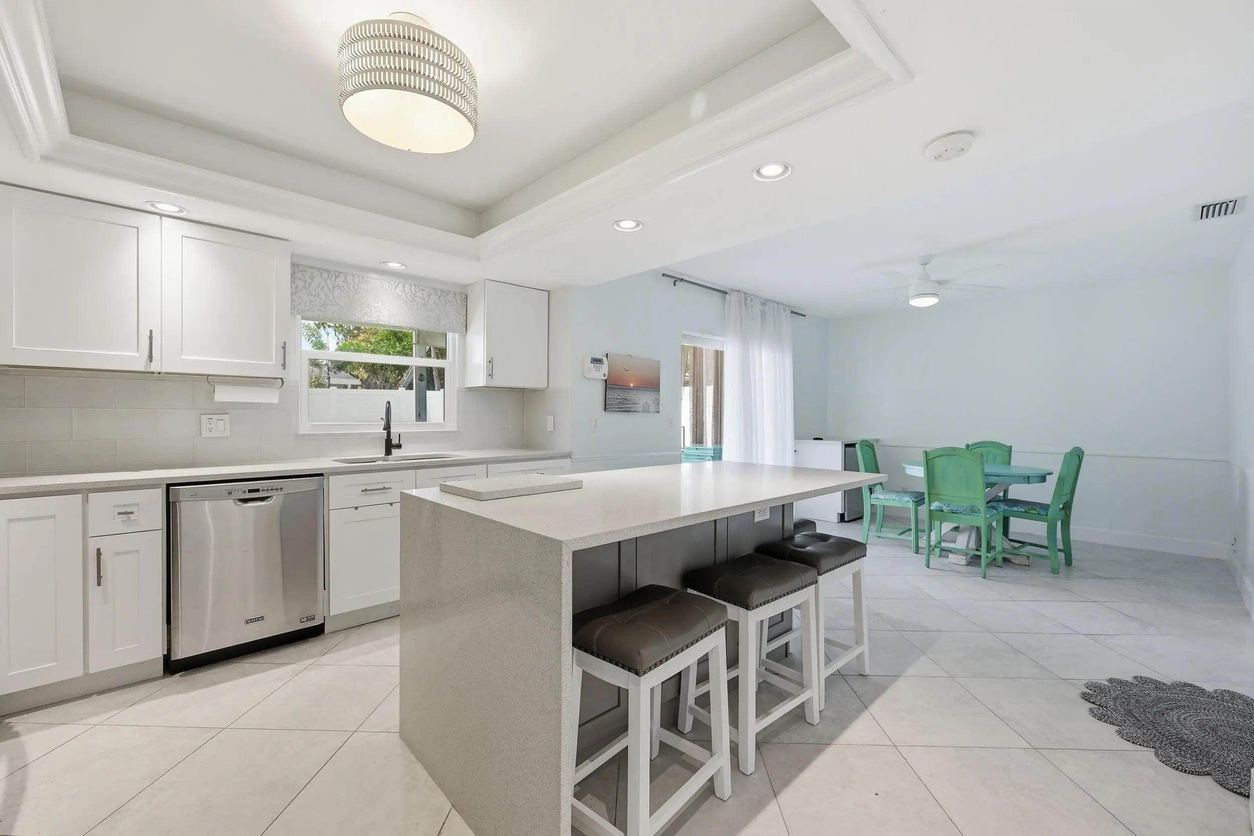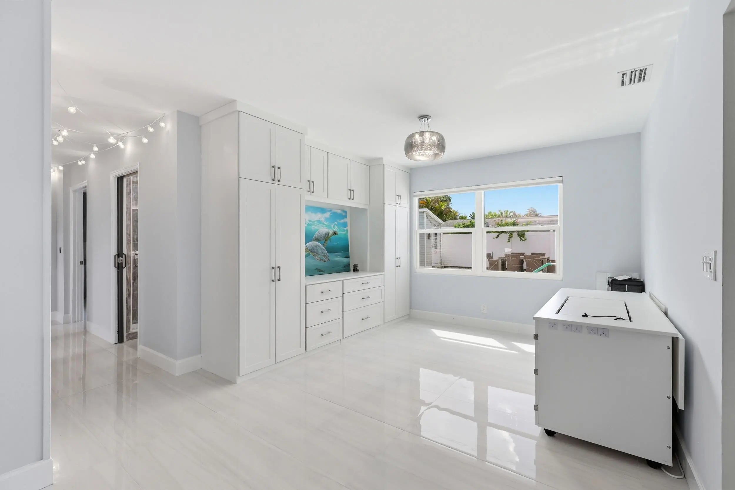 Perfectly positioned in Jupiter just outside the Village of Tequesta, this meticulously maintained 3-bedroom, 2-bath pool home offers convenient access to Jupiter's beaches, the iconic Jupiter Lighthouse, Constitution Park, and a wide variety of nearby restaurants, shops, and outdoor activities. The home is also located within the highly regarded Jupiter school district, making it especially attractive for families relocating to the area. Designed for both comfort and peace of mind, the property features all impact windows, a 2023 roof replacement, 2018 AC, and a whole-house 27kW generator supported by a 500-gallon buried propane tank—providing reliability and storm readiness year-round. The six-foot PVC privacy fence surrounds a beautifully designed backyard retreat featuring a recently resurfaced saltwater pool, screened patio, and an astro-turf putting green, creating an ideal setting for relaxing, entertaining, and enjoying South Florida's outdoor lifestyle. Inside, the living room is highlighted by a custom built-in wall unit, while the third bedroom also features built-ins and a Murphy bed, offering excellent flexibility as a guest room, office, or multi-purpose space. Recent flooring upgrades, interior doors, and a new garage door complete the list of improvements that make this home truly move-in ready. Homes with this combination of location, upgrades, and outdoor living rarely become available in this area.