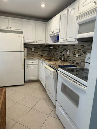 Spacious, bright, CORNER third floor garden view unit in Deerfield Beach Garden condo complex. 1 bedroom/1.5 baths, ceramic tile flooring in dining/living area, carpet in the bedroom, updated white kitchen cabinets, screened in balcony. Large bedroom with 2 closets, 1 is walk in. Pool, BBQ area, gym. Assigned parking space and storage unit. Deerfield Beach is less than 2 miles away, enjoy lots of restaurants and shops, easy access to I-95. Exterior building freshly painted, new asphalt, condo has a new roof. ALL ages welcome, no leasing first year owned. Pets not allowed.