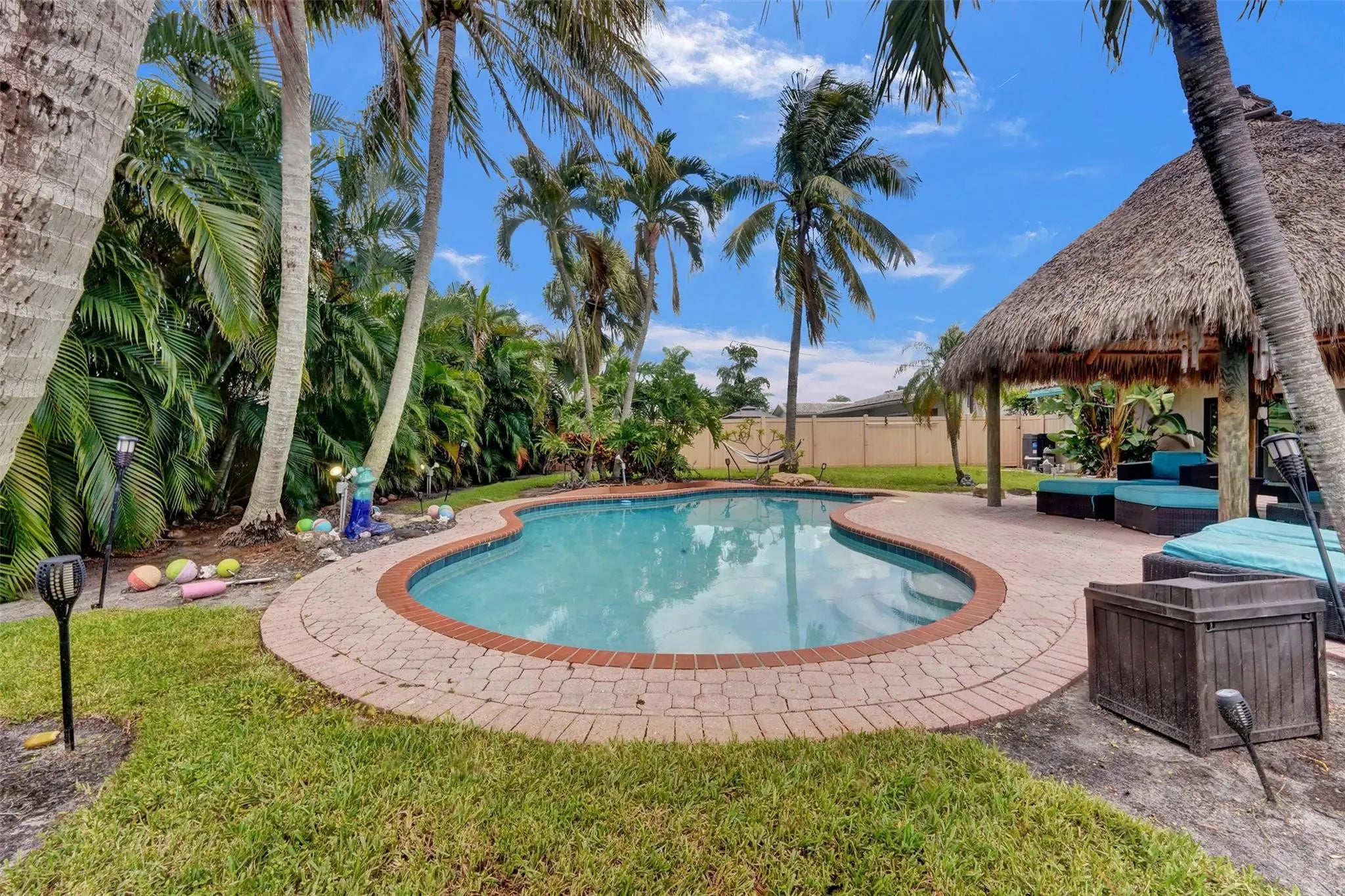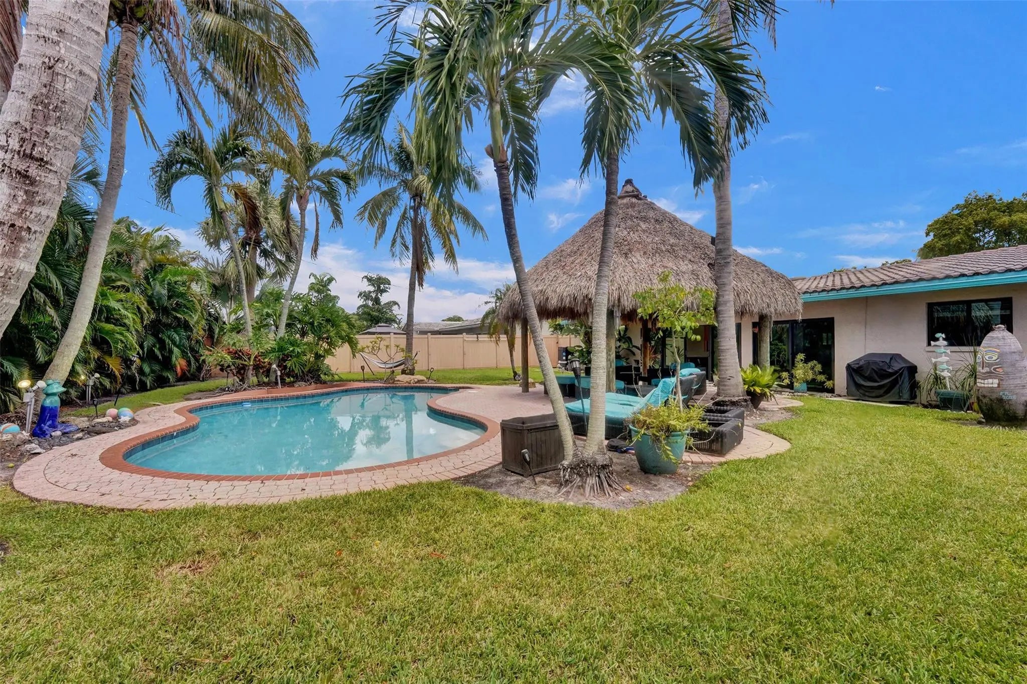 Escape to your own slice of paradise in Booming Pompano Beach! Updated Single-Family Pool Home located in the Garden Isles neighborhood. No HOA & no rental restrictions makes it ideal for Airbnb, a seasonal getaway, or full-time living. Just minutes from the beach, dining, and shops—with Publix and local restaurants within walking distance. The home features a spacious, open-concept layout, including an office/den, indoor laundry, and 1-car garage w/ paver driveway. Step outside to your private, tropical backyard complete with a freeform pool, large Tiki Hut w/ built-in TV & electric, and fully fenced yard perfect for entertaining. Additional highlights include hurricane-impact windows & sliders, and barrel tile roof. Invest now in Pompano Beach - South Florida's Fastest Growing City.