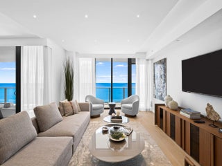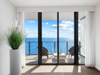 Experience unparalleled oceanfront living directly on the sand in this stunning 4BR/4.5BA residence. This expansive double unit spans over 4,000 SF, showcasing a contemporary open floor plan and a Chef's kitchen designed for both entertaining and everyday living. Walls of floor-to-ceiling glass capture sweeping views of the Atlantic Ocean and ICW, with balconies on both sides for showcasing daily sunrise and sunsets. Two entries provide the utmost privacy and convenience. Resort style amenities include oceanfront pool 1,300 SF of terraced green space, state-of-the-art fitness center, theatre room and an elegant wine room. Perfect as a full time residence or vacation retreat.