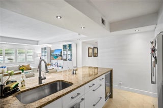 Beautifully remodeled 2 beds/2 baths condo for SALE, located in desirable Lauderdale Tower on the Intracoastal. Unit features updated tile, impact windows, plantation shutters, renovated bathrooms & kitchen. Kitchen includes wall oven, built-in microwave, glass cooktop & wine cooler. The oversized island opens to the living room & features bar seating for four. The expansive living area is over 270 sq. feet and features dimmable soffit lighting. Adjacent to the living area is a large 11x14 ft guest room & renovated bathroom across the hall. The oversize main suite measures in at 11x17 ft. and has dual sliding glass doors that lead to the master bathroom and walk-in dressing area. Building 40yr Cert Completed. It features waterfront pool, exercise room, community dock and BBQ.