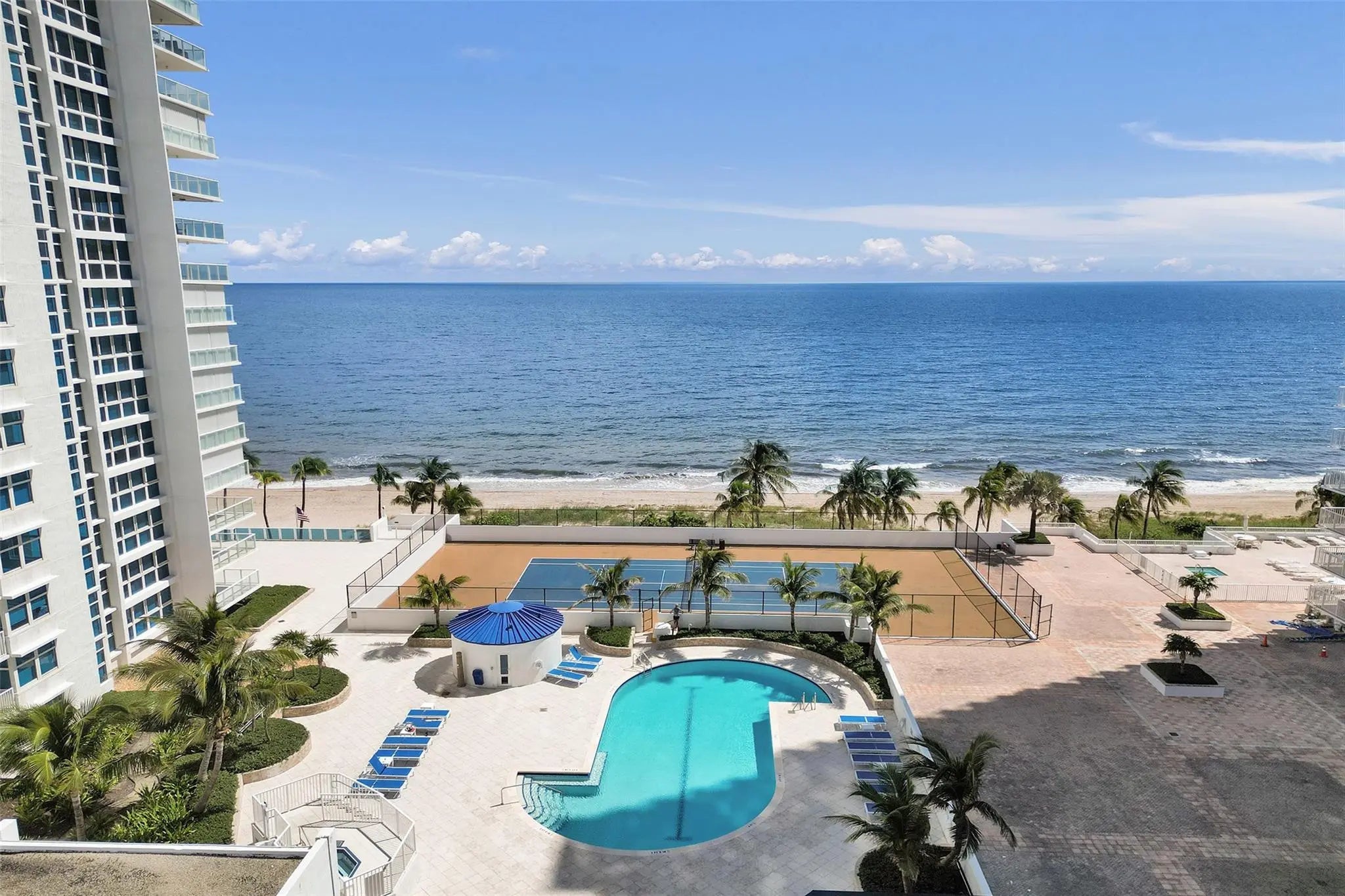 Incredible northeast corner unit with breathtaking direct ocean views the moment you enter! This spacious 2-bedroom, 2.5-bath condo features a split floor plan ideal for comfortable coastal living. Large wraparound balcony, and stunning sunrises over Pompano Beach. Enjoy a large primary bedroom with ocean views and wood flooring, with tile throughout living areas, impact windows and sliders, walk-in closets, and plenty of storage. New A/C (2024). Resort-style amenities include pool, tennis, BBQ area, fitness center, sky lounge, garage parking, guest parking, and 24-hour security. Just minutes from Pompano Pier, restaurants, and shopping. This is oceanfront living at its finest!!