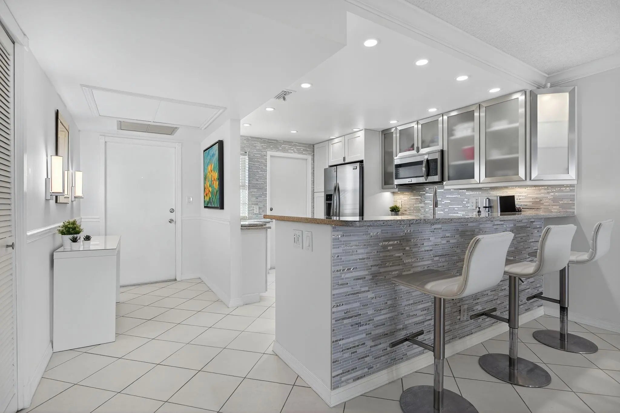 Enjoy breathtaking panoramic LAKE VIEWS & all-day natural light in this bright, spacious, fully furnished penthouse condo. Beautifully remodeled & move-in ready featuring tile flrs thru-out, IMPACT WINDOWS & sliding glass doors, an open concept kit w/stainless steel appliances—perfect for entertaining. Both bathrooms are tastefully updated & the home includes a newer A/C (2022) & private storage locker. Residents enjoy three sparkling pools & resort-style amenities incl golf, tennis, pickleball, basketball, volleyball, biking & more. Conveniently located near Publix, Herb Skolnick Community Center & the New World Class Entertainment Complex Caesar’s Entertainment (Harrah’s Casino Pompano Beach) featuring dining & entertainment, plans for shopping & hotel...ALL LOCATED ACROSS FROM PALM AIRE