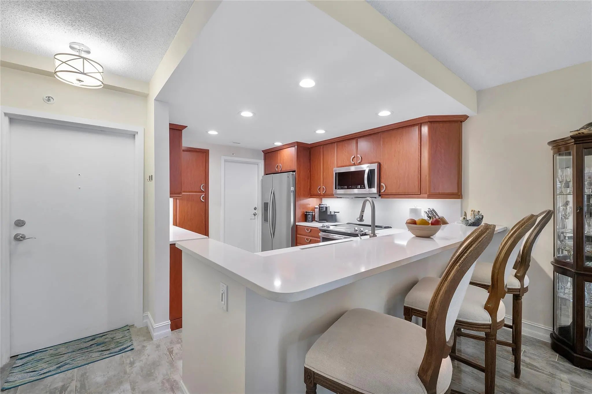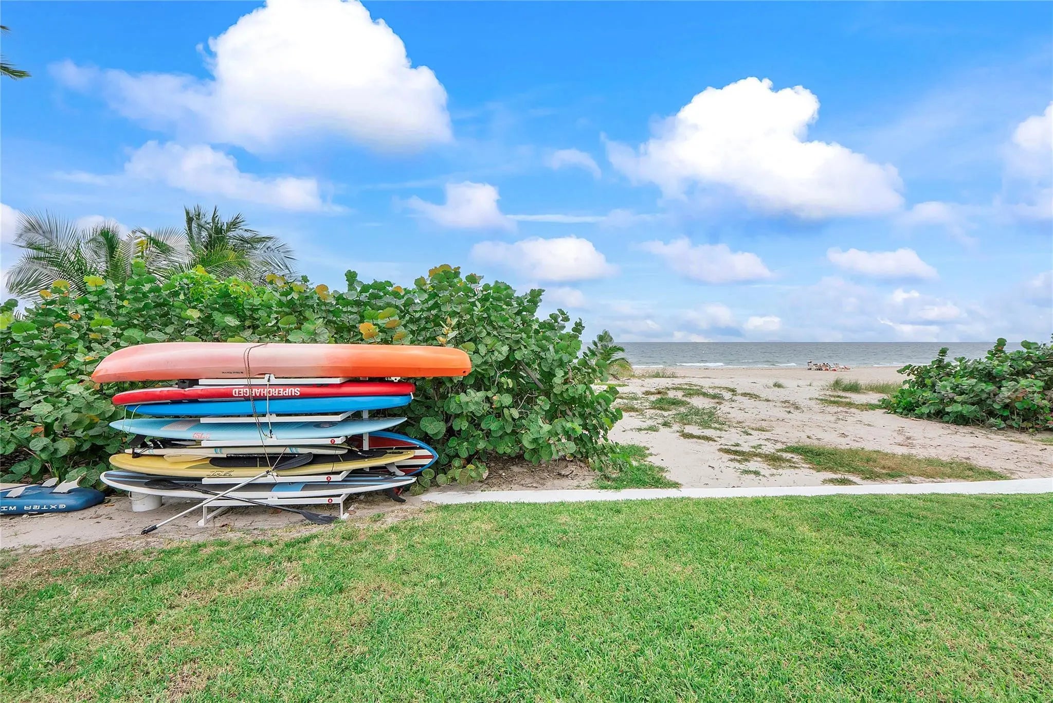 Beautifully updated condo on the sand! This bright, airy southeast-facing corner residence overlooks the garden and pool, just one quick flight down and you can put your toes in the sand. From the spacious balcony, enjoy partial ocean views to the left, watch the sunrise over the Atlantic, and relax as the sun sets through the palms. The open layout offers two oversized primary bedrooms with walk-in closets and ensuite baths, plus a designer kitchen with quartz countertops and high-end stainless-steel appliances. Features include Bosch washer/dryer, impact windows, gated beach access, secure lobby, heated pool, entertainment room, and assigned parking. Unfurnished and move-in ready for coastal living at its finest.
