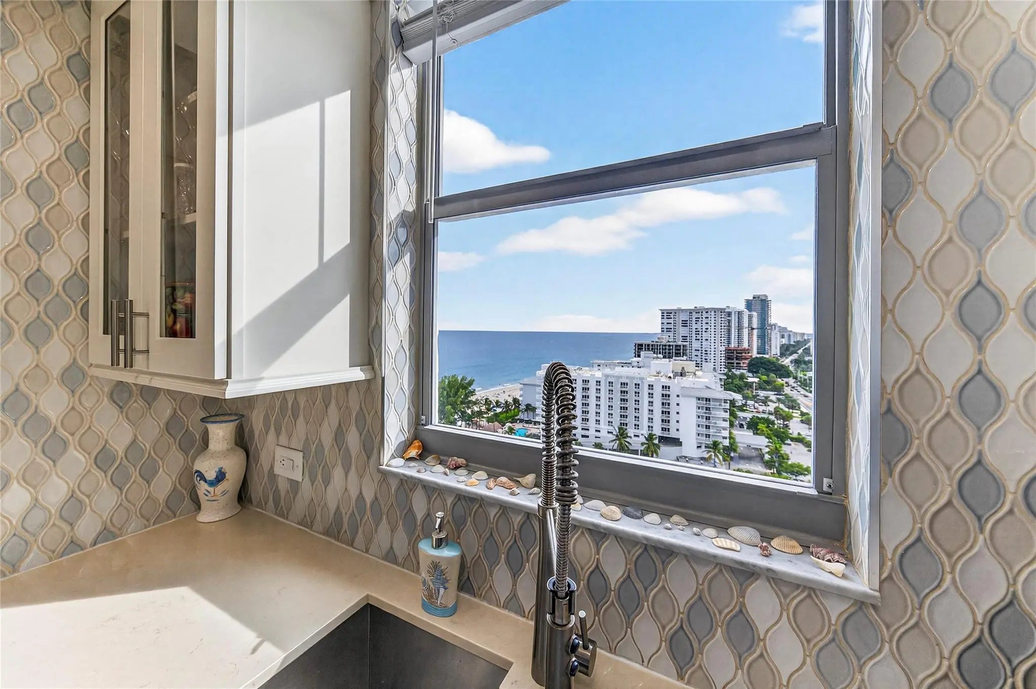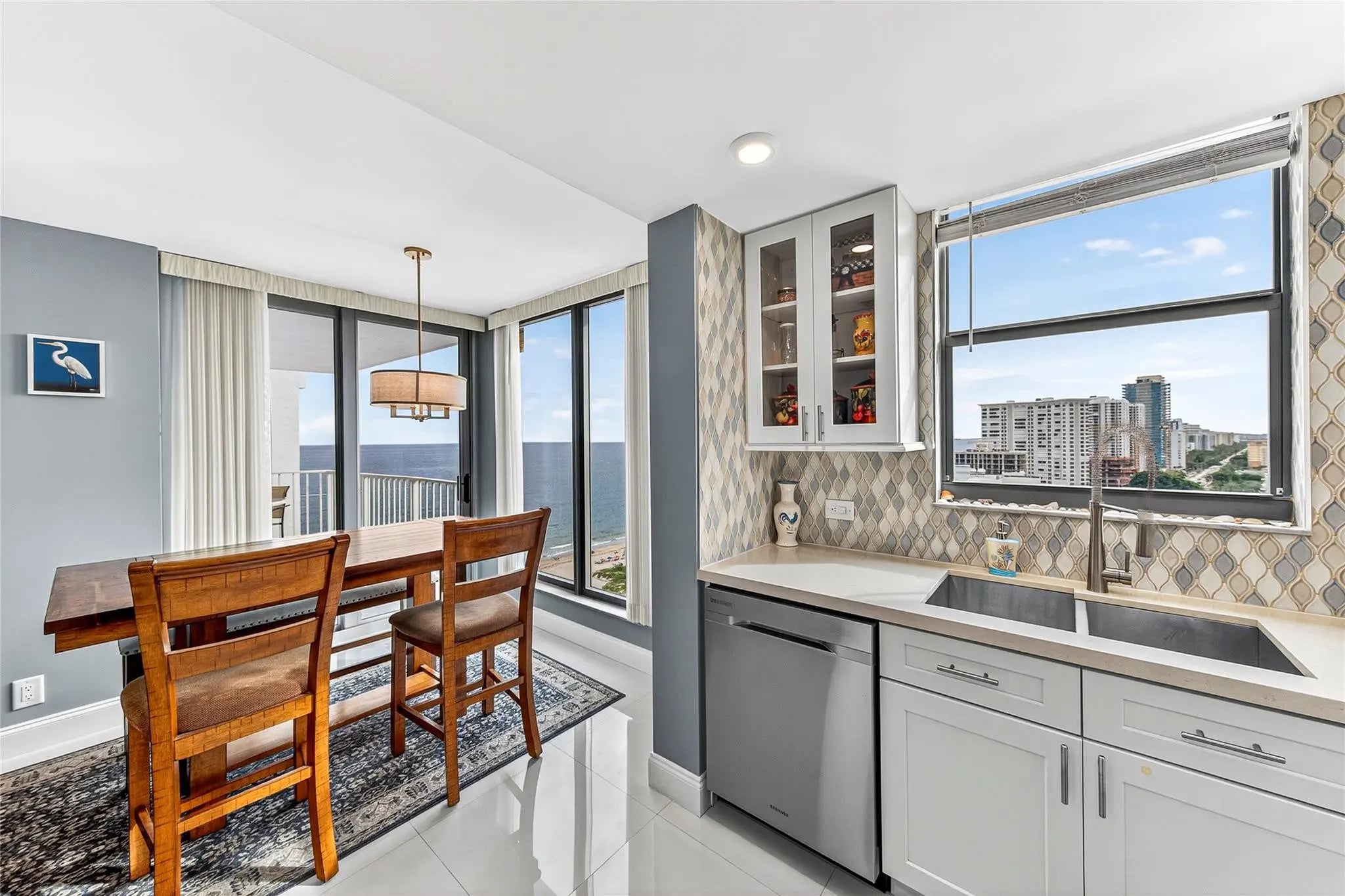 SPECTACULAR OCEAN and INTRACOASTAL VIEWS from this FULLY RENOVATED 2 Bedroom / 2 Bath Condo located in the HEART of POMPANO BEACH! This unit boasts an EXPANDED NEWER KITCHEN with QUARTZ Countertops and STAINLESS STEEL Appliances. Fully UPDATED bathrooms. WASHER and DRYER inside the unit! INCREDIBLE CITY and LAKE SANTA BARBARA VIEWS, OCEAN by day, CITY lights by night. Sunny SOUTH EXPOSURE with BEAUTIFUL SUNRISES and SUNSETS! Located on a WIDE section of SANDY BEACH in the POPULAR POMANO AEGEAN. Forty Year inspection COMPLETE! A short distance to the POMPANO PIER and FISHING VILLAGE with many shops and restaurants. HEATED POOL and HOT TUB, DIRECT BEACH ACCESS, fitness center and more. Must see to appreciate!