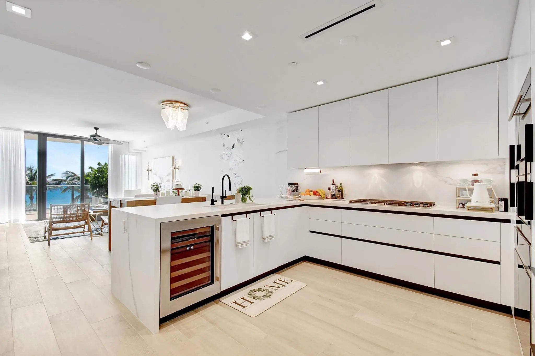 Fully Furnished Beachfront condo that lives live a villa. Spacious 2/2.5+den overlooking the beach and ocean, with one of the largest balconies on the beach. Tastefully furnished throughout with modern coastal finishes. Guest bedroom features oversized patio with private access to sunset pool deck and gardens. Italian kitchen cabinetry, Wolf + Sub-Zero appliances, gas range, wine fridge and Espresso Machine. Resort amenities: 2 pools, spa treatment rooms and services, wine tasting room, state of the art gym, screening room, club room with catering kitchen, bbq areas, fire pits, pavilions, cabanas, breakfast cafe with coffee and light bites, concierge, 24/7 valet. Pet friendly. Close to beachfront and waterfront dining, boat club, Hillsboro Inlet and more. Available short & long term