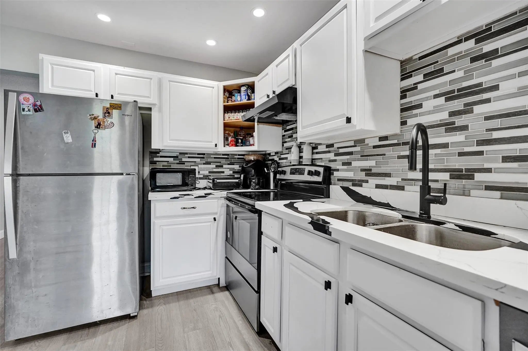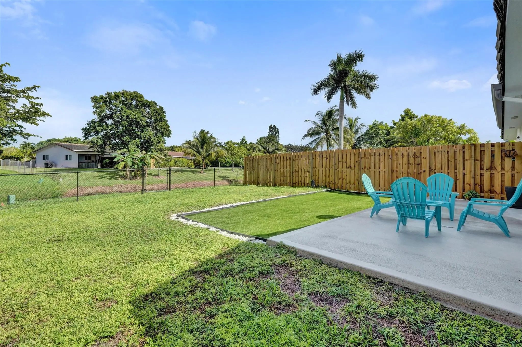 Turnkey duplex investment in Coral Springs showing two renovated 2 bed 2 bath units with fresh flooring, upgraded lighting, and modern kitchens with new appliances. Each side includes washer and dryer, private entrances, and impact windows. The exterior features updated landscaping, a spacious fenced yard, and relaxing canal views. Parking for several cars. Well maintained with strong rental demand, with room to improve returns through market adjustments.