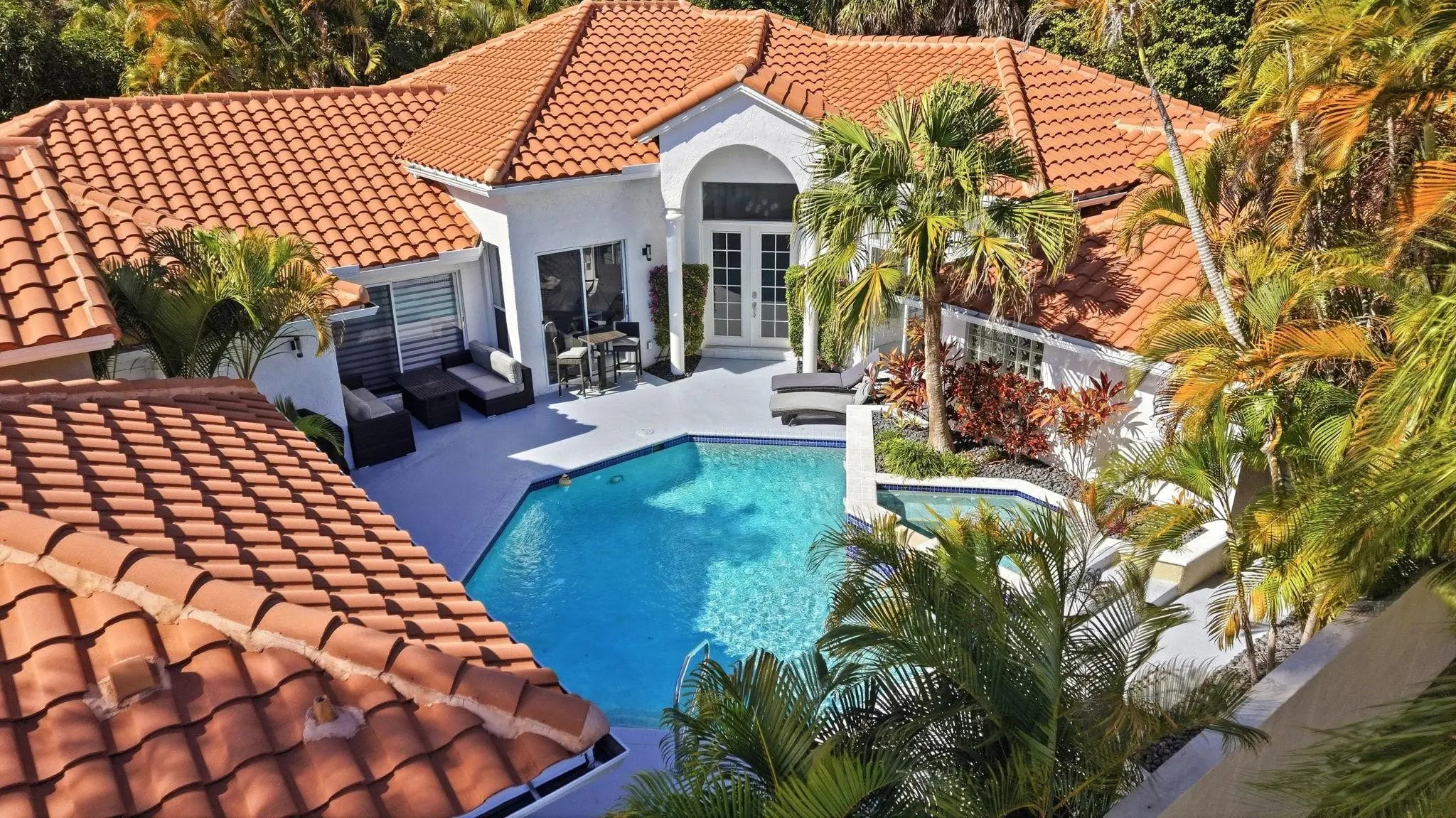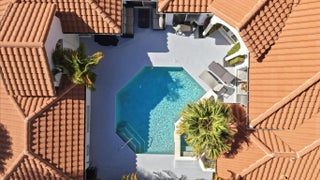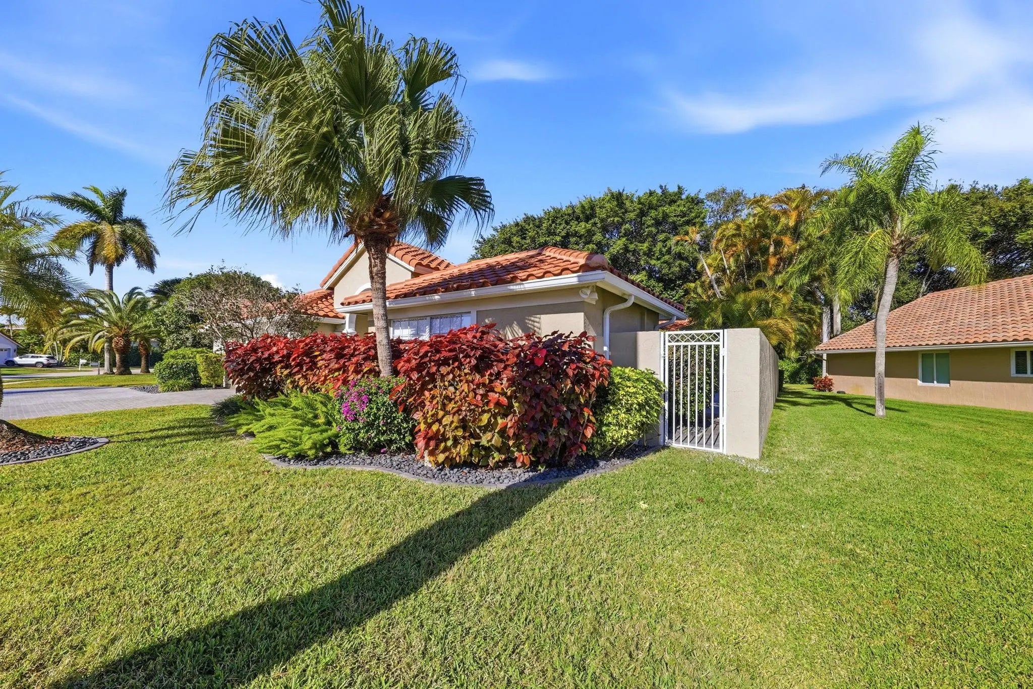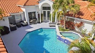 Bright 1-story courtyard home designed for relaxed living & entertaining. Set on a wide lot backing to a nature preserve, this home offers privacy & inviting outdoor spaces. Features 4 large bedrooms & 3 full baths, including a guest suite by the pool. Meticulously maintained & thoughtfully updated, the home features an open kitchen with quartz counters, stainless steel appliances, induction cooktop, & pull-out cabinetry. Manicured landscaping, a circular driveway with ample parking, garage with epoxy flooring & added storage enhance everyday convenience. Custom closets, central vac, beautiful blinds & plantation shutters, & a suite of smart-home features complete this exceptional property. Amenities include a manned gate, cable, internet, clubhouse, pool, tennis, pickleball, & fitness.