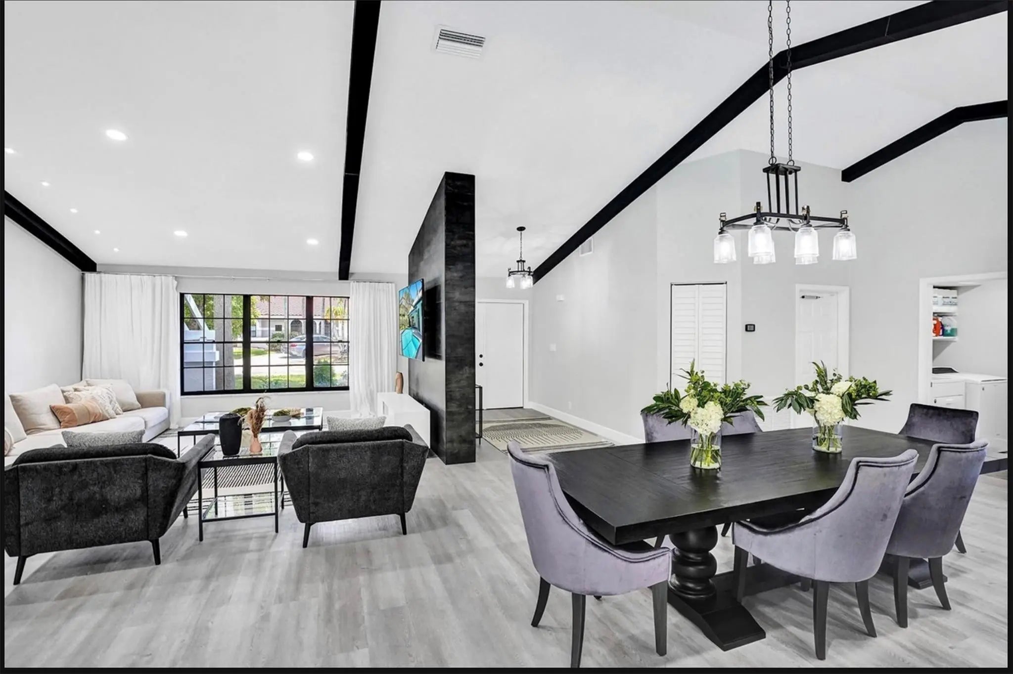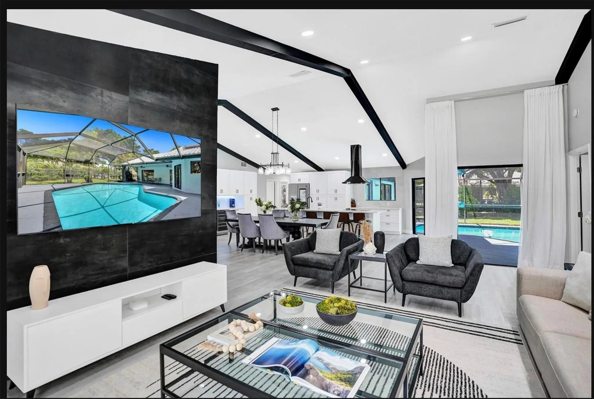 Beautifully renovated 4BR/3.5BA home in sought-after Butler Farms/Hidden Hammocks. Elegant open living with soaring ceilings, exposed mahogany beams, and abundant natural light. Designer kitchen with quartz counters, custom cabinetry, stainless appliances, and wine cooler. Spacious primary suite with spa-style bath, walk-in closet, and direct access to screened pool and patio. Tropical fenced yard on a corner lot. 2-car garage, extended driveway, electric car charger, solar panels. Covered patio with Paradise Grills kitchen, fireplace. Near Fern Glen Park.