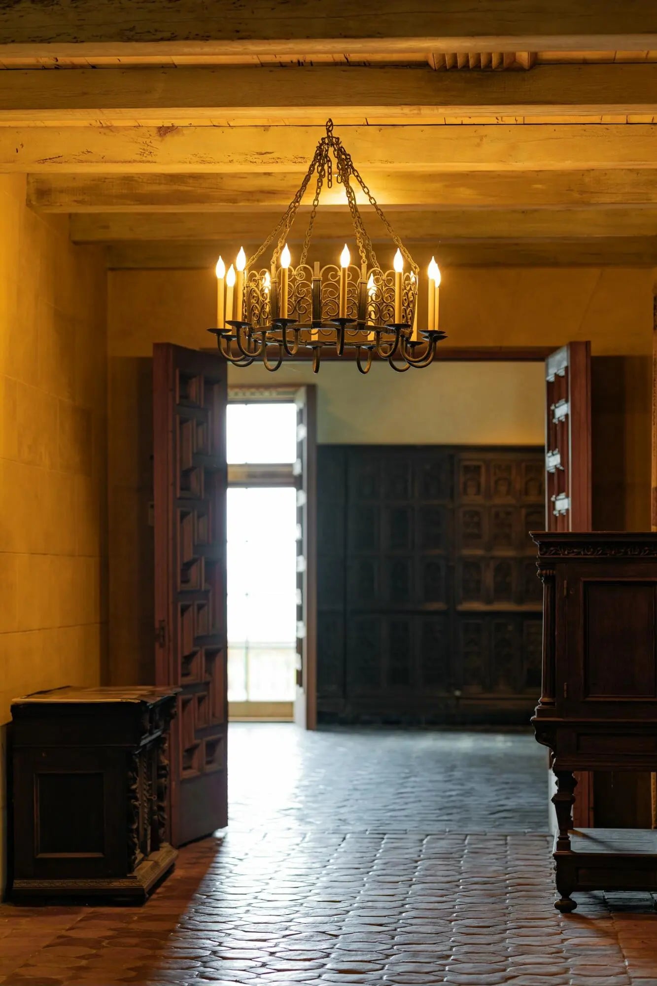 Rare Offering: ''Old Palm Beach'' Ocean Front Property. Addison Mizner Architect. 232' of deeded private beach. sweeping front lawn. ball room/LR, sunroom, master, guest rooms all with direct ocean views, 5 bedroom, 5 full bath, 1 half bath. pool, interior courtyard with original working fountain. All original Mizner architectural features, including 16th century oak paneling. Elizabethan-era stain glass. ornate carvings, decorative tile work, cast limestone detailing, elaborate arches, hand-painted coffered ceiling, pecky cypress ceilings and beams throughout, original fixtures, hand carved doors, intricate ironwork. These distinctive details add richness and visual interest to this home, showcasing the historical craftsmanship and artistic flair. Landmarks like the William Warden House contribute to the sense of identity and pride within this island community. It serves as a symbol of Palm Beach's history, heritage and architectural legacy. Since it preservation efforts in 1980 the property has become an iconic representation of Palm Beach's past and its development into a luxurious destination. It's presence enriches the community's cultural fabric and fosters a sense of place and belonging.