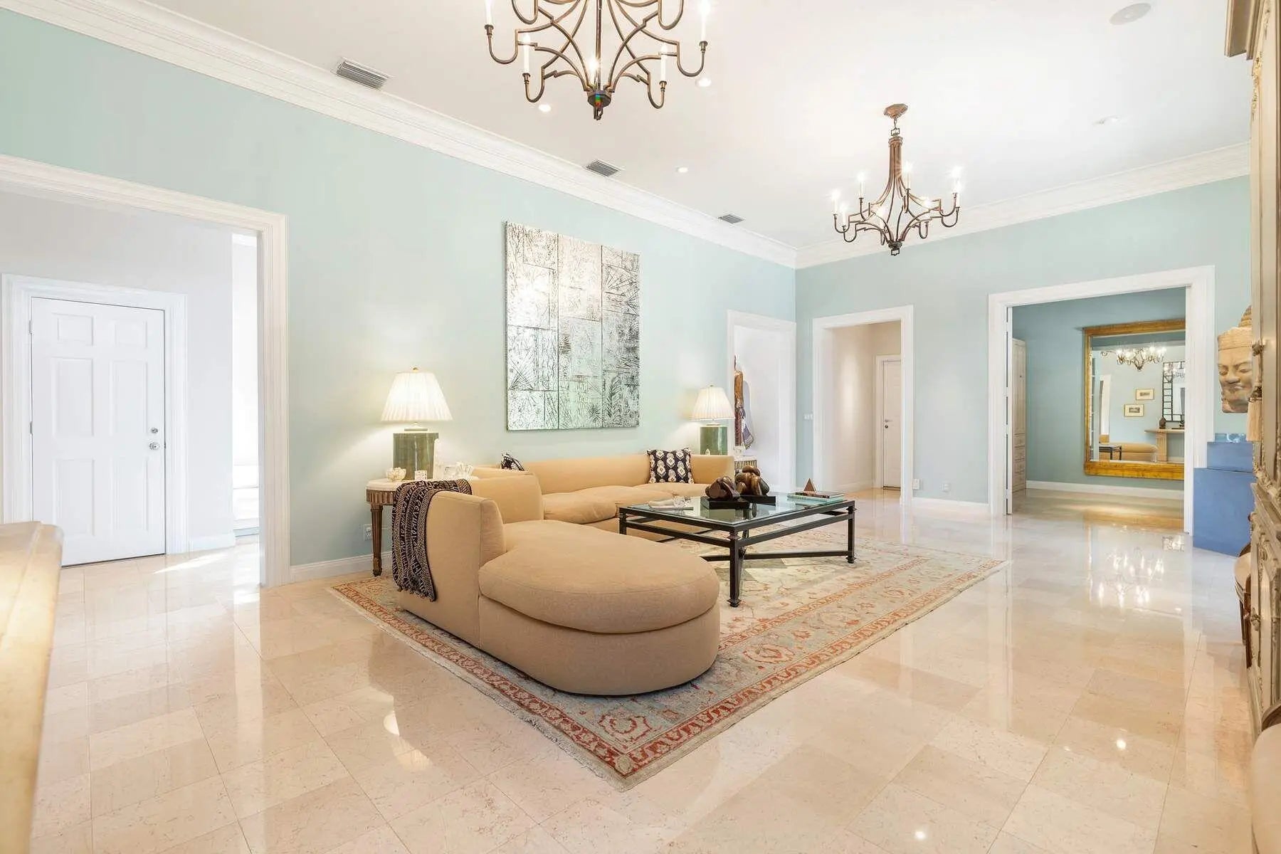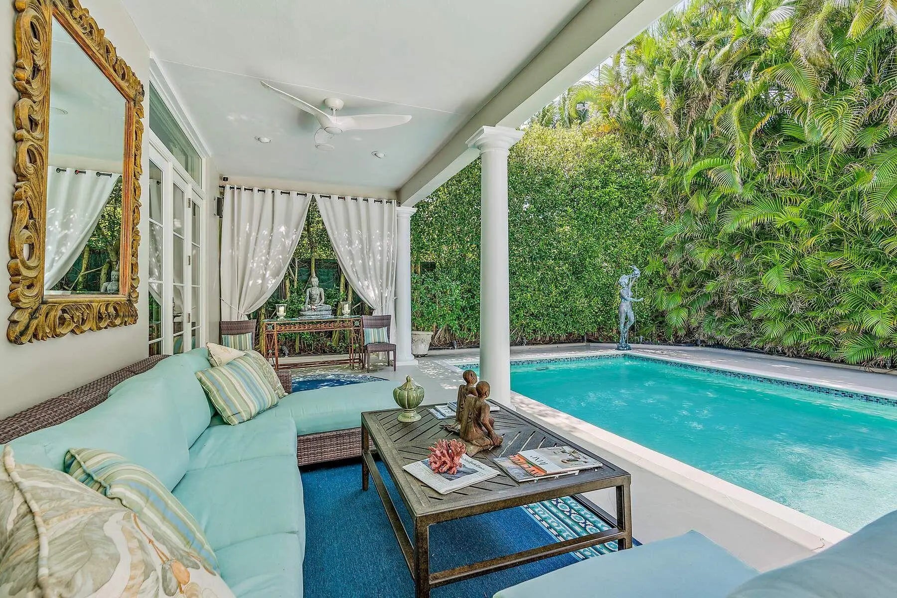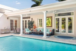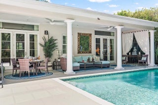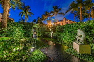 IMPRESSIVE, 1 story, Palm Beach Regency, refined & updated, w approx. 14' ceilings in the great room & high ceilings throughout. This near north Gem, on Corner lot, just south of The Beach Club is 300' from an accessible beach. The 4BR, 3.1BA home has 2 primary bedrooms w ensuite baths. A 3rd bedroom, w ensuite bath, may be shared, w the 4th BR/office w murphy bed. Loggia overlooks stunning, saltwater pool & bronze fountain-ideal for entertaining, flows beautifully from all major rooms. This estate's floor plan is versatile & lends itself to suit your needs, offering a sophisticated residence, that's a turnkey alternative to a condo. Secured w gates, walls/hedges & security system/cameras, w impact windows/doors & Full House Generator. 3 car AC garage & motor court.