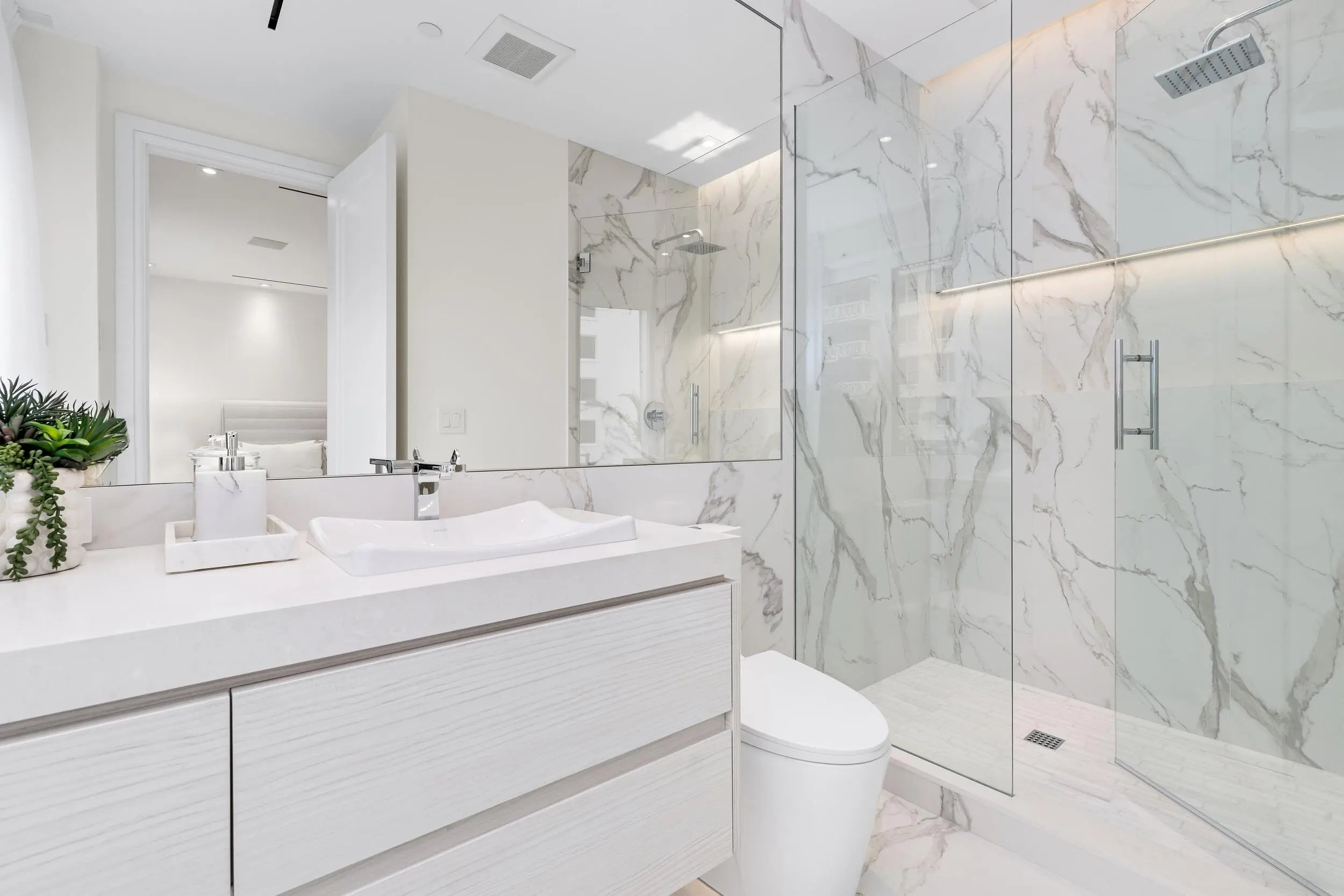 Experience waterfront living at the newly renovated Palm Beach Biltmore. This southwest corner residence offers a large private patio with sweeping direct Intracoastal views, perfect for evening sunsets and outdoor entertaining. The two-bedroom, two-and-a-half bath layout has been fully reimagined with a modern design, high ceilings, and a welcoming gallery-style entry. Custom finishes include impact glass doors, a designer kitchen with custom cabinetry and lighting, neutral flooring, pre-wired for a smart home system, and generous storage throughout. Only the finest finishes were installed in this thoughtful brand new home. The Palm Beach Biltmore has recently undergone a complete transformation, offering residents a five-star lifestyle with a staff of 45, an oceanfront restaurant and private beach club, car service, exceptional concierge and owner services, a lakefront dock, an Olympic-sized lakefront pool, two Har-Tru tennis courts, a fully equipped fitness center with Pilates reformer, and infrared saunas in both locker rooms. The Biltmore is a pet-friendly building.