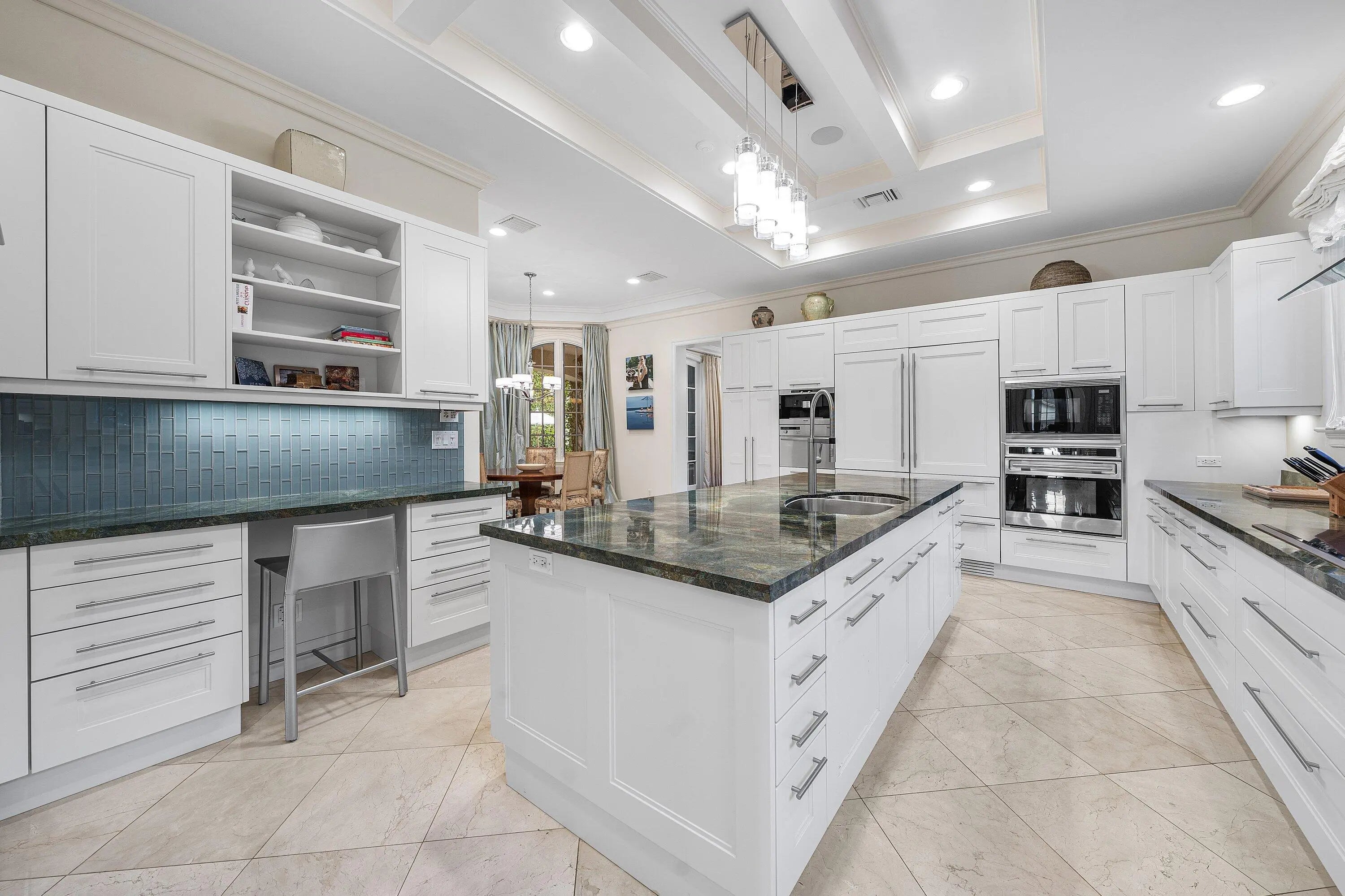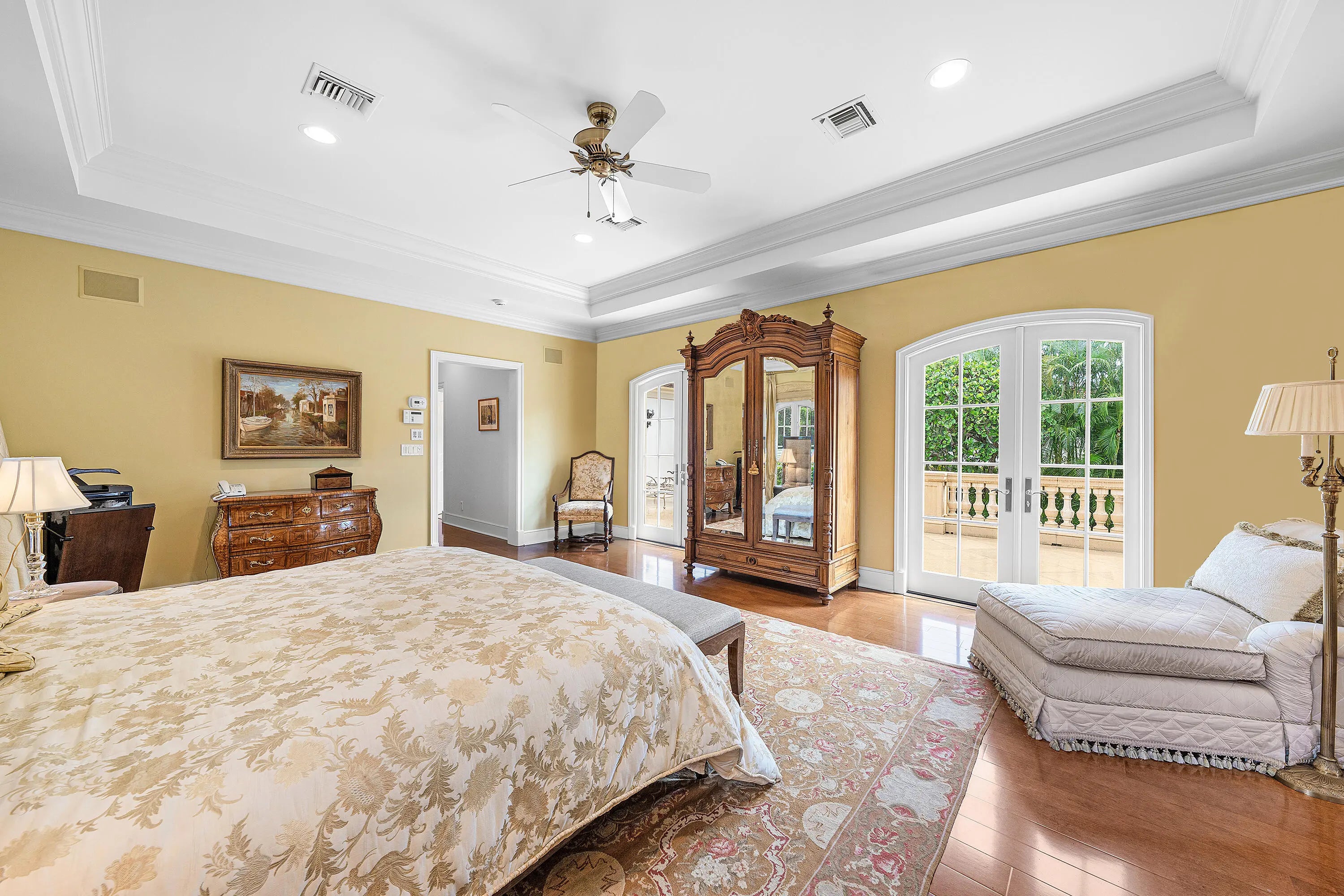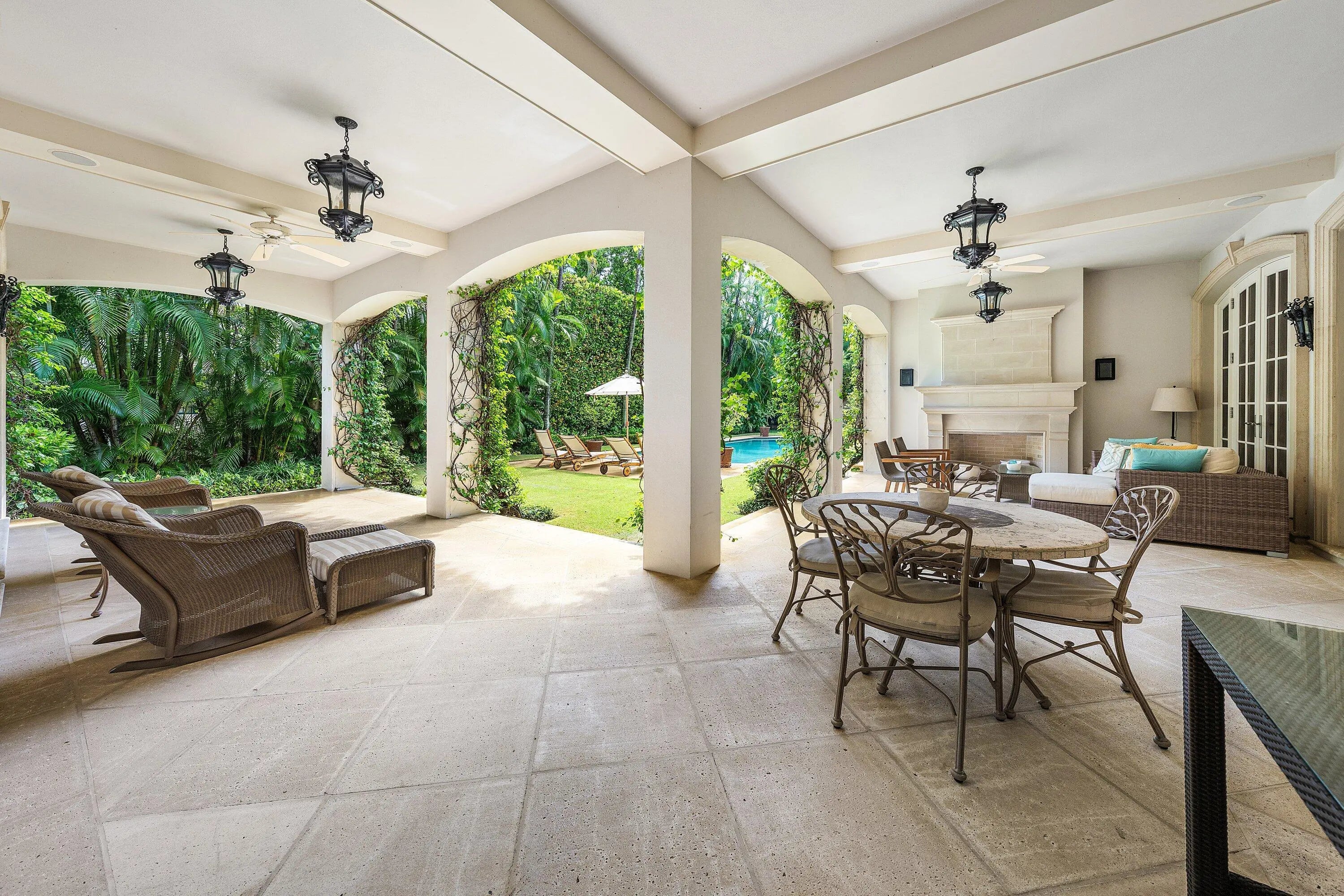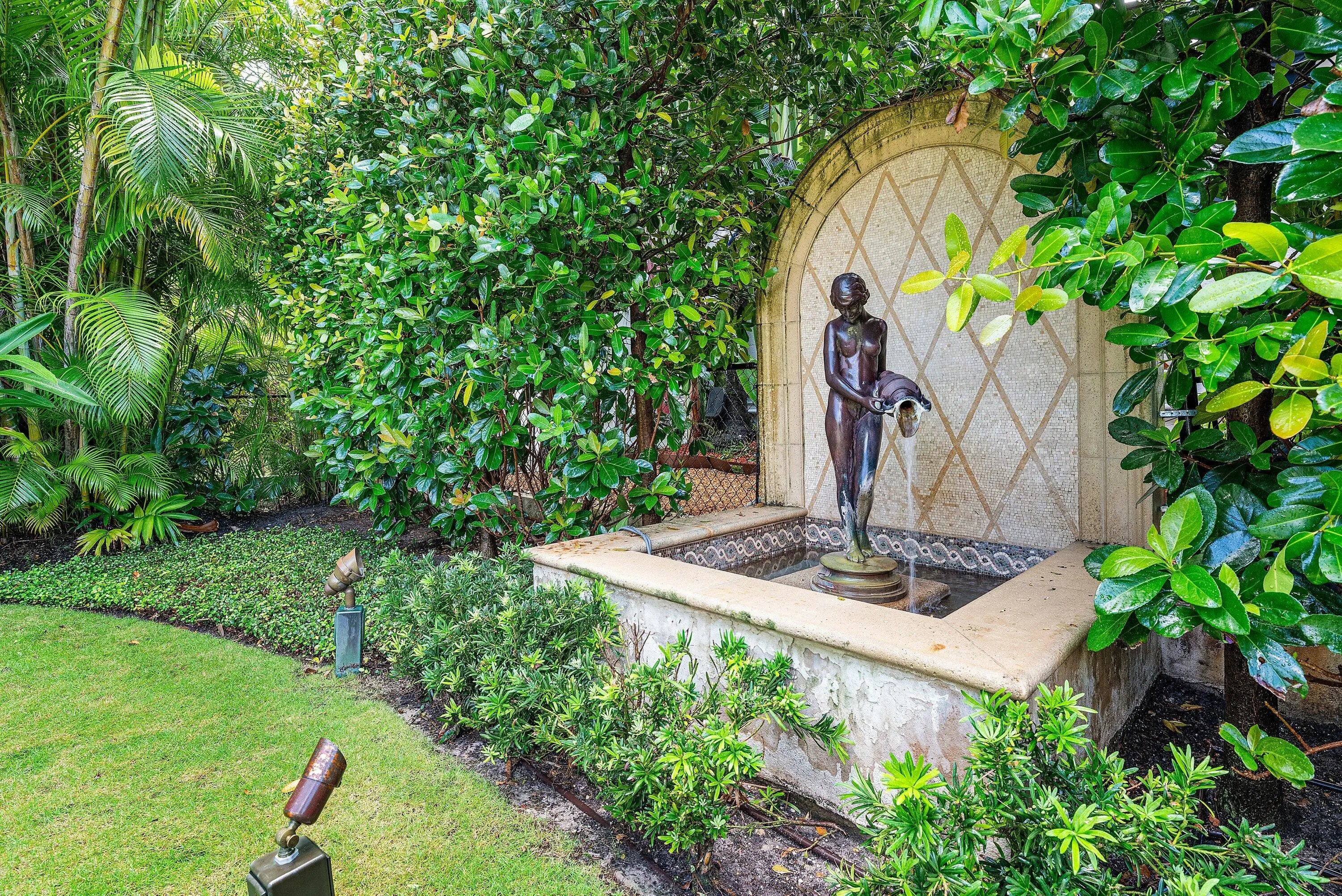 This extraordinary estate at 242 Wells Road combines classic French Provincial architecture with timeless elegance, offering an unparalleled lifestyle on one of Palm Beach's most prestigious streets. This magnificent 7,460 total sq. ft. French Provincial masterpiece is nestled on a sprawling 19,500 sq. ft. lot in the heart of Palm Beach. This stately manor, with its steep-pitched slate roof, symmetrical façade, and stone surrounds, exudes Old World charm and impeccable craftsmanship. The home's architectural grandeur is enhanced by graceful balustrades and meticulously sculptured landscaping, creating a serene and sophisticated retreat. Step inside to find luxurious interiors adorned with gleaming hardwood and marble floors showcasing exceptional attention to detail. A grand staircase, a stunning centerpiece of the foyer, welcomes you with its sweeping elegance, complemented by a private elevator. The residence offers 4 spacious bedrooms, 6 beautifully appointed bathrooms, and one half bath, fully furnished for effortless move-in elegance. The crown jewel is the expansive primary suite, featuring an expansive balcony overlooking the breathtaking pool and lush, professionally curated gardens. This serene retreat includes his-and-hers walk-in closets, separate opulent bathrooms with high-end finishes, and an elegant sitting room, perfect for quiet relaxation or intimate gatherings. A generously appointed guest suite also boasts its own balcony, offering stunning views of the tranquil outdoor oasis. Entertain with unparalleled style in the formal dining room, ideal for grand gatherings, seamlessly connected to a large butler's pantry and wet bar equipped for effortless hosting. The eat-in kitchen, a chef's dream, blends modern functionality with classic design, featuring top-tier appliances and ample space for casual dining. A stately fireplace anchors the formal living room, while a refined library provides an ideal space for work or leisure. Step outside to the large wraparound loggia or the luxurious balconies off the primary and guest suites, all offering captivating views of the expansive pool and gardens. The estate is complete with a 3-car garage with ample storage.