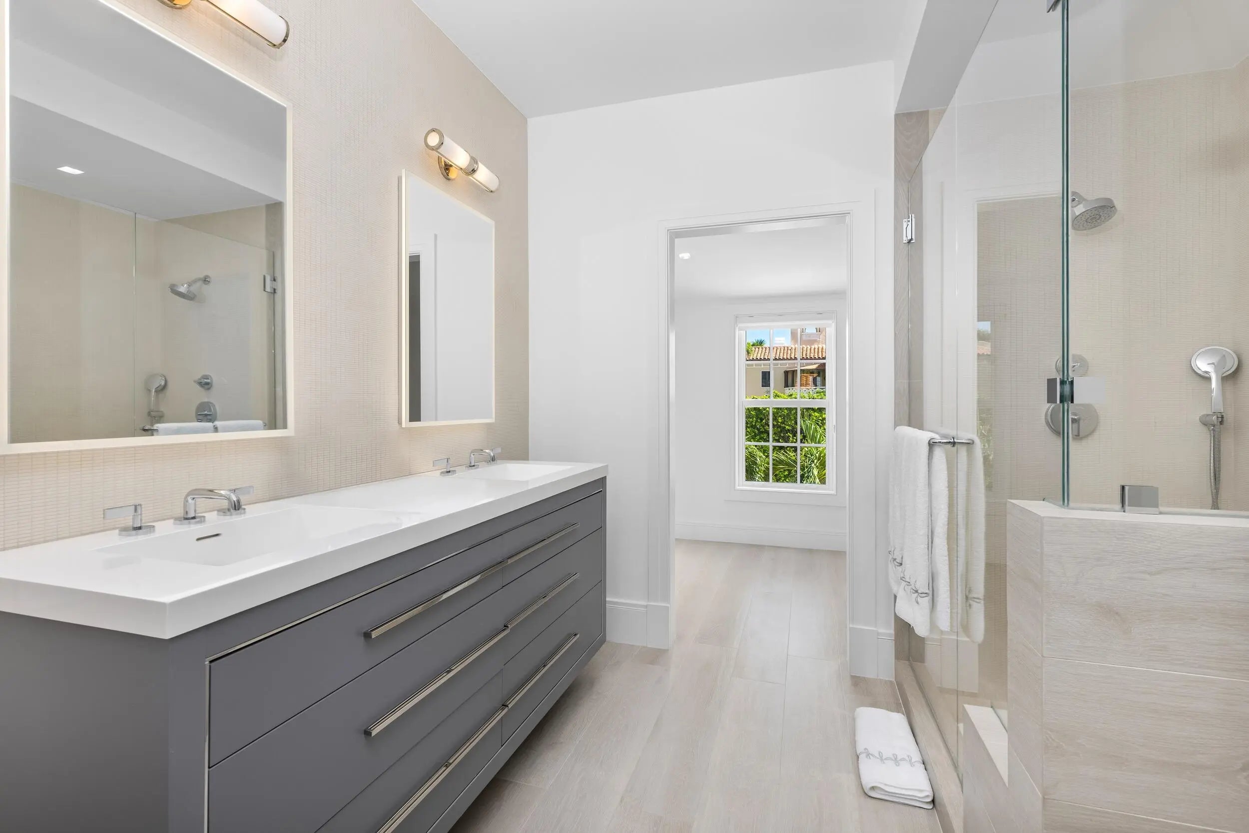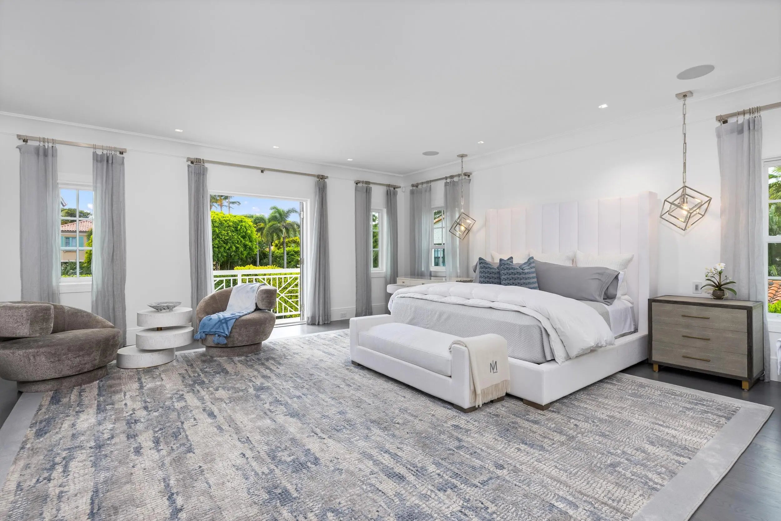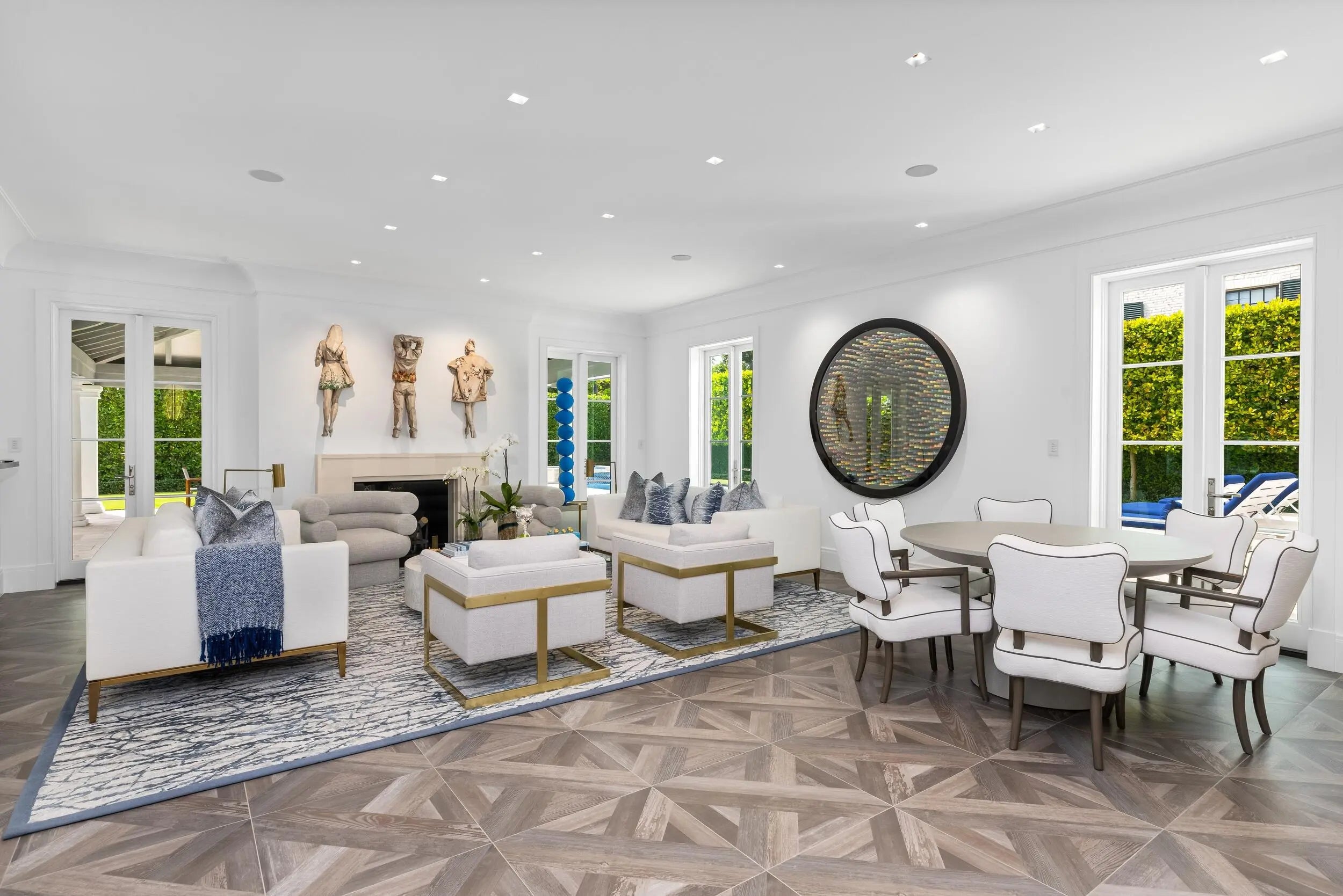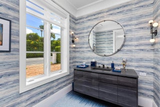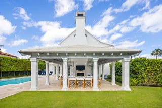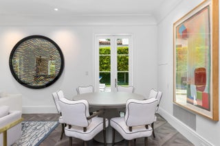 Stunning and pristine 5BR/5.2BA Georgian home beautifully renovated in 2022 with 7,500+/- square feet. Gorgeous and sophisticated marble and hardwood finishes throughout. Thoughtful interior design by Kenny Alpert. Immaculate landscaping surrounding fabulous backyard with resort-style pool, spa, and oversized loggia with fireplace. Living room features fireplace and stunning bar with wine fridges. Top-of-the-line eat-in kitchen with chef's island, wine fridge, and beautiful detailing. Sunny library with built-in shelving. Soaring ceilings, impact windows, and generator. Fantastic Estate Section location with beach access.