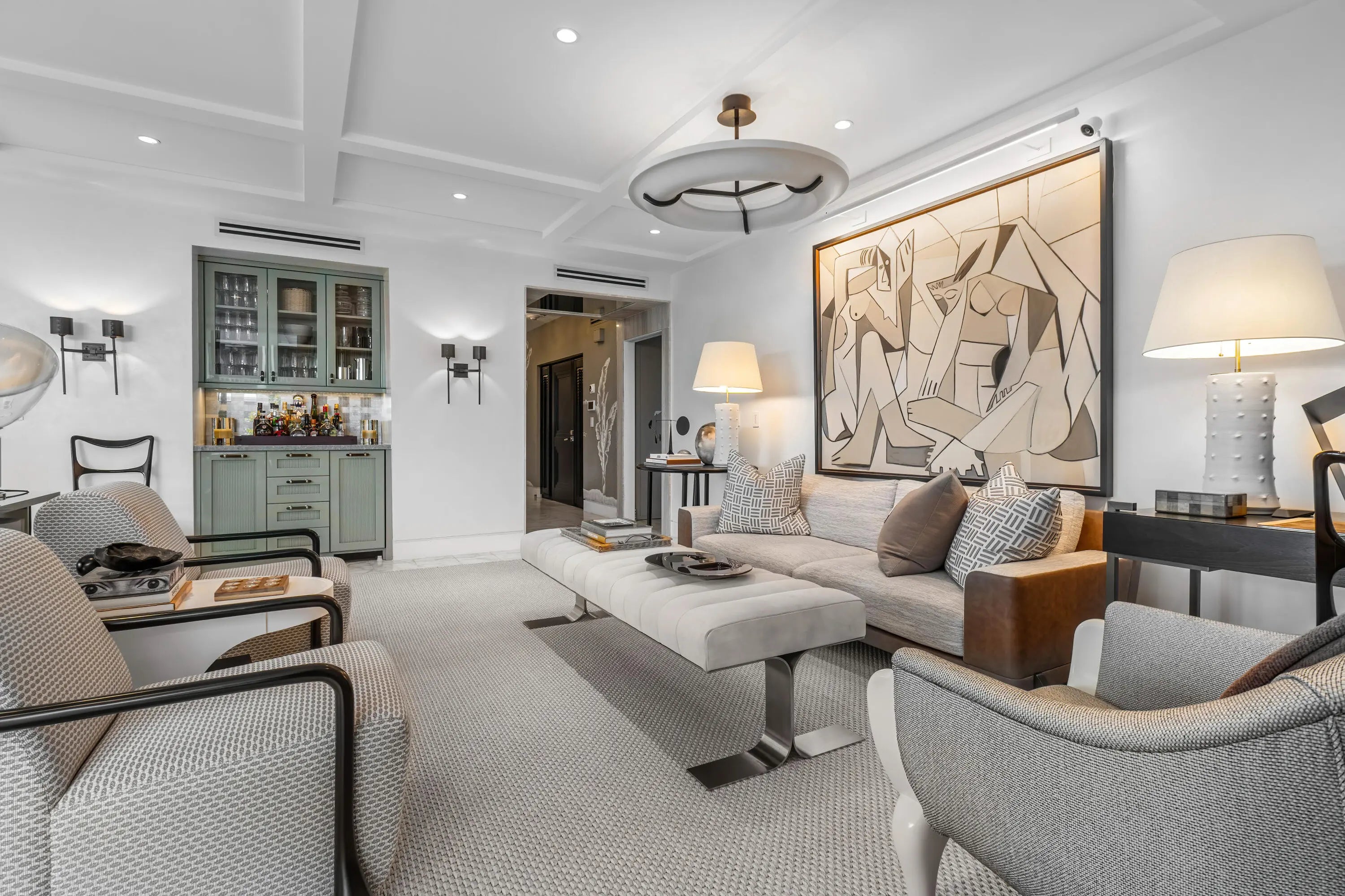 Experience the ultimate in elegance and tranquility with this newly renovated corner residence, perfectly positioned on an exclusive and secure island in Palm Beach. Just steps from the pristine beach and town tennis center, this contemporary home is designed for those who appreciate refined living in a premier location. From the moment you enter, you'll be welcomed by an atmosphere of sophistication and serenity. The expansive open floor plan boasts soaring 9-foot ceilings, stunning Dolomite Bianco Italian marble, exquisite Venetian plaster walls, and state-of-the-art Lutron lighting—every detail meticulously curated for a luxurious lifestyle. Floor-to-ceiling impact glass doors bathe the interiors in natural light and open onto a sprawling wraparound balcony, where breathtaking Intracoastal views and lush tropical landscaping create an idyllic setting for outdoor living and entertaining. The two spacious en-suite bedrooms offer spa-like bathrooms and custom-designed closets, ensuring both comfort and convenience. For the culinary enthusiast, the Downsview kitchen is a true masterpiece, featuring top-of-the-line Gaggenau appliances, a built-in coffee station, and specialized cooking features such as a teppanyaki grill and induction cooktop. Residents of Tower Vallendry enjoy access to two resort-style swimming pools, scenic walking paths, and a prime location just minutes from the Palm Beach Par 3 Golf Course & Alfresco Restaurant, Publix, Worth Avenue, PBIA, and an array of world-class dining and shopping destinations. This is more than just a home,it's an unparalleled Palm Beach lifestyle.