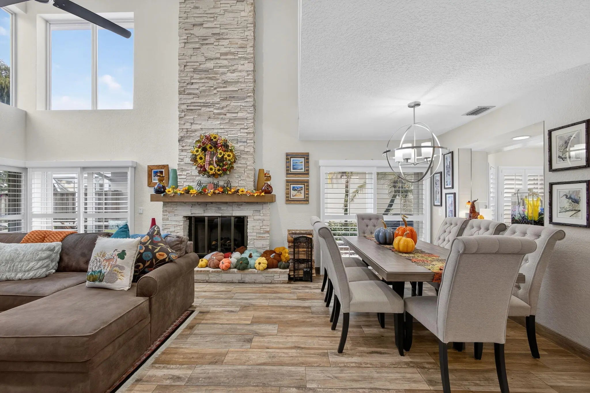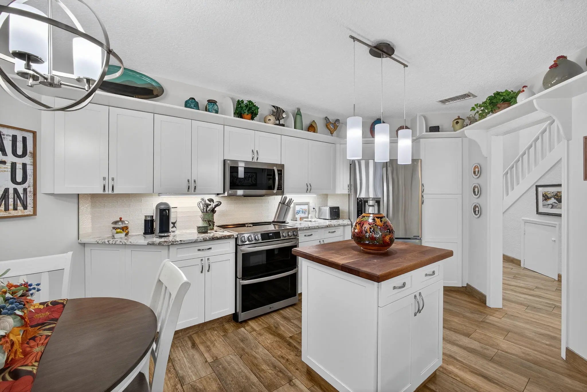 Renovated 3 bed/2.5 bath single family pool home in the guard gated community of PGA National. Kitchen has LG stainless appliances, granite countertops, glass tile backsplash, white shaker cabinetry & stainless farm sink. Family room/dining room have vaulted ceilings, impact sliding doors & stone fireplace with wood mantel. Primary bedroom has impact sliding doors to screened patio, vaulted ceiling, walk-in closet, linen closet & primary bath with double vanities, private water closet & large shower with frameless barn door & marble tile. There is also a guest bath & den with double glass doors on the 1st floor. The second floor has 2 guest bedrooms, guest bathroom & loft with built-in shelves. Screened patio has pool & Mexican tile floor. Paver driveway. Complete impact protection.