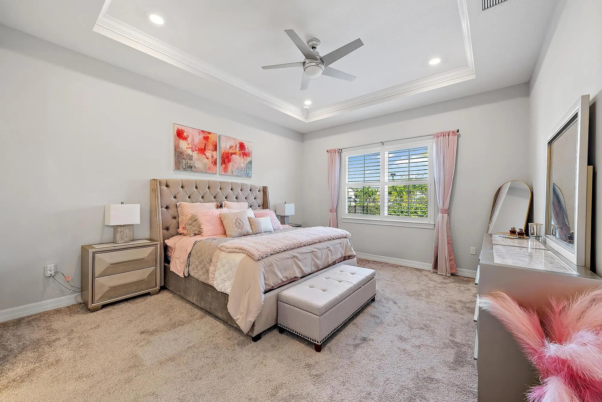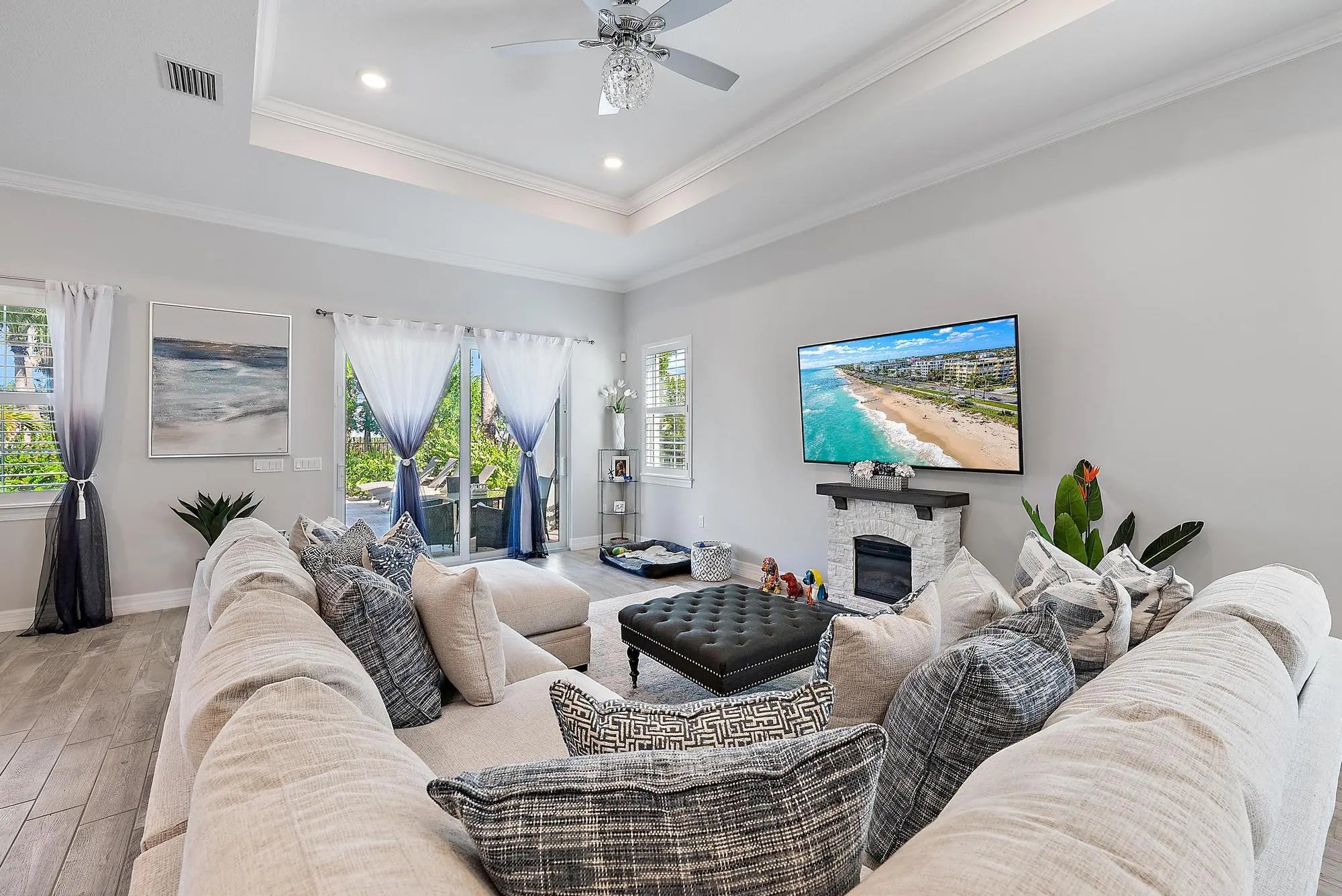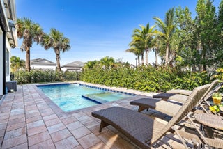 Discover the perfect balance of sophistication and comfort in this elegant DiVosta-built ''Mystique'' model located in the highly sought-after Avondale at Avenir community. Designed for effortless living and entertaining, this 3-bedroom, 2-bath home with a spacious flex room combines open-concept design, stylish finishes, and serene outdoor living to create the ultimate Palm Beach Gardens retreat. Thoughtfully crafted with high ceilings, abundant natural light, and an intuitive layout, the home feels bright, airy, and welcoming from the moment you enter. The heart of the home—the gourmet kitchen—features an upgraded built-in design with premium cabinetry, quartz countertops, and an expansive island that flows seamlessly into the living and dining areas. Every detail has been elevated beyond the standard builder offerings, including upgraded cabinetry in the kitchen and baths, enhanced flooring and carpeting, and crown molding that adds architectural polish throughout. Elegant plantation shutters grace every room, while custom closets provide both organization and beauty in each bedroom and even the kitchen. The flexible bonus room offers versatilityperfect as a home office, gym, or creative space. Step outside to your private oasis. The covered patio features a motorized retractable screen, allowing you to enjoy the best of indoor-outdoor living year-round. Overlooking the sparkling pool and surrounded by lush landscaping, this tranquil retreat invites relaxation, morning coffee, or evenings of entertaining under the stars. Beyond your doorstep, Avondale at Avenir offers a lifestyle defined by connection, convenience, and resort-caliber amenities. Residents enjoy a luxurious clubhouse, resort-style pools, state-of-the-art fitness centers, tennis courts, and scenic walking trails. The highly anticipated Avenir Town Center, soon to open, will bring world-class shopping, dining, and entertainment just moments from home. Located in one of Palm Beach Gardens' most desirable new communities, this residence represents the best of modern Florida livingnewer construction, tasteful upgrades, and a setting that feels both peaceful and vibrant. Move in and begin enjoying the Avondale at Avenir lifestyle immediately.