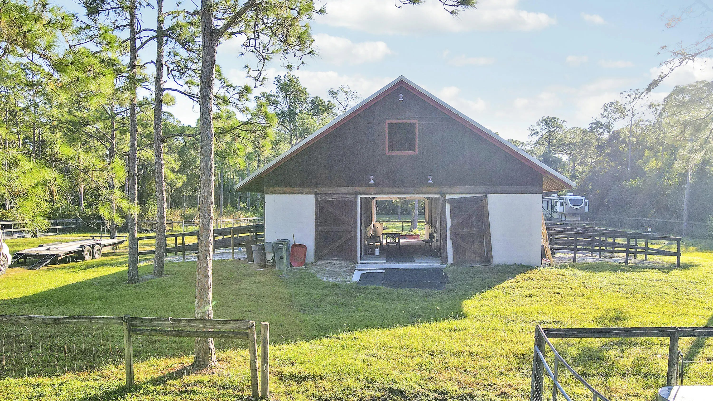 South Florida rarity people, and you know it- approx 5 acre property parcel, a blank canvas for your dream. The only parcel on the current market cleared and ready (saving tens of thousands) for your plans. 2023/4- 44' RV IS situated on the site for weekend visits or your residence during a build. (Negotiable) 6 stall barn is ready for your ag business, storage or conversion to residential, arena with fencing. Property is on a dead end road, north side of Indiantown, closer proximity. The north side of parcel furnishes hack trails to a preserve area for miles of riding, hiking etc. A sweet enclave for a private compound. Your piece/peace of paradise awaits! This property offering is inclusive to additional business opportunities, available upon request.