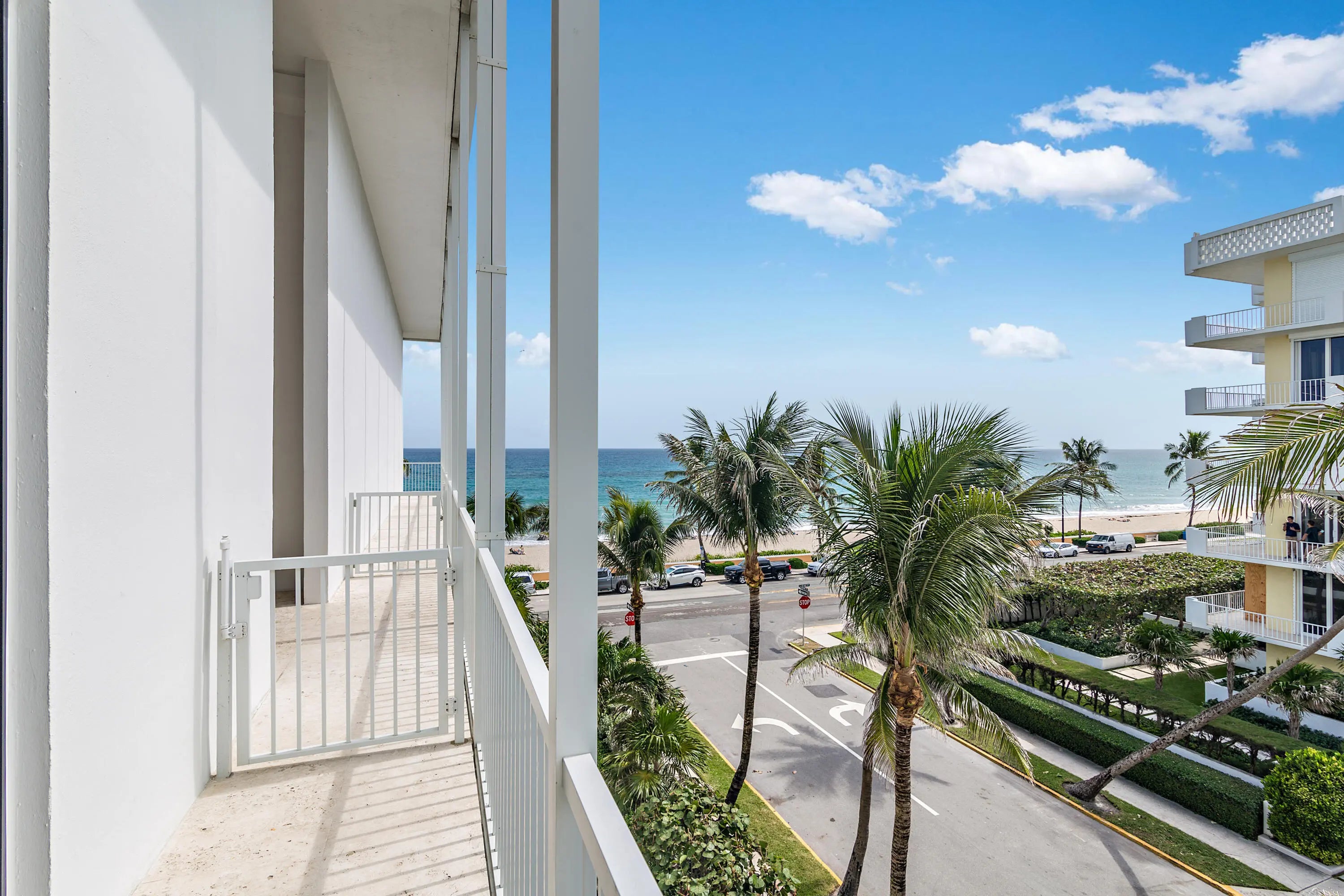 High floor, southeast views and now- available for lease in one of Palm Beach's favorite oceanfront high-rises. This is the easternmost unit on the south side of The 400 Building. A two story duplex on the 4th and 5th floors with ocean views from the living room, primary bedroom and balconies. Plus the building's fabulous rooftop pool, fitness and community room. All just one street over from Worth Avenue shopping and restaurants. This unit features 10' ceilings, beautifully upgraded baths and kitchen, an attractive powder room and in-unit washer and dryer. Annual lease preferred or 6 month minimum seasonal . It's the perfect spot to call home while you build, renovate or just sort out your plans for the future.