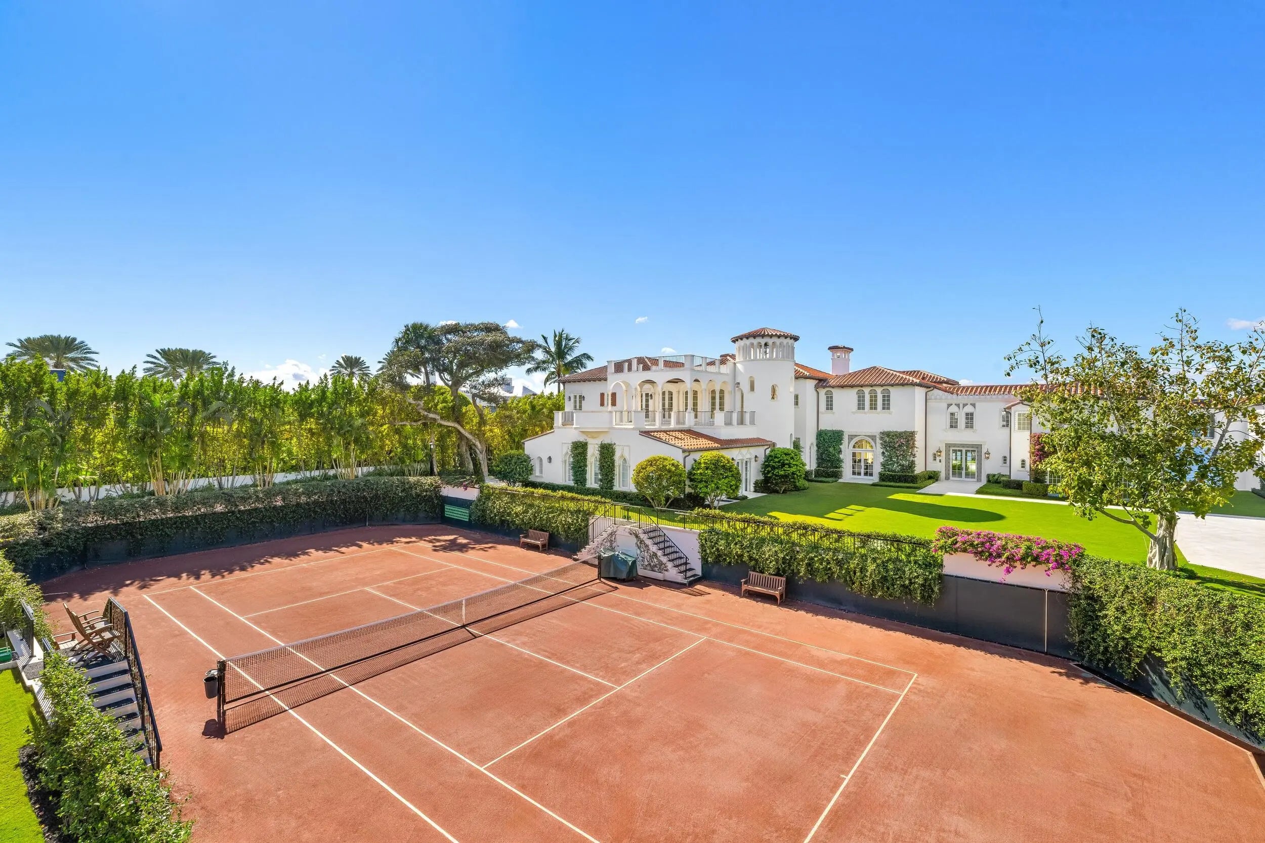 Introducing ''Casa del Ensuenos'', one of the most iconic renovations in Palm Beach history. This is truly a one-of-one, legacy opportunity in South Florida and an extraordinarily rare chance to own a completely gut-renovated piece of landmarked history along the Palm Beach island waterfront. Located ideally in the Estate Section and just minutes from global luxury destinations like Worth Avenue, Mar-a-Lago, and the growing presence of ''Wall Street South'' in downtown West Palm Beach, this generational slice of paradise just completed a multi-year reimagination, turning this historic Mizner into a contemporary marvel with all of the modern conveniences. With the newly finished reconstruction yet to be resided in, few (if any) compounds of this magnitude and quality exist in such a prime South Florida location as this. Sitting on a nearly 1.5-acre direct waterfront lot along the Intracoastal with 200 feet of frontage, this gated estate features a sprawling 15 bedrooms and 18 full bathrooms spread out amongst an expansive 27,000 +- total square feet of elite Palm Beach living, alongside a private, sunken, red clay tennis court. The home consists of a main house, boat house, tennis pavilion, and a six-car garage. Other not-to-be-missed bespoke amenities of this trophy residence include an expansive covered loggia, a full performing arts theatre with stage, chef's kitchen, comprehensive security camera system, a new seawall, generator, elevator, exquisite exterior landscape lighting, eight fireplaces, and a heated infinity pool with swim-resistance jets. Perfectly positioned directly on the Intracoastal waterway and looking out towards the private docks with a 40,000 lb boat lift, this uniquely elegant residence is a perfect blend between accessibility to the quaint, charming Town of Palm Beach as well as proximity to the bustling downtown of West Palm Beach. Enjoy sunsets from the seclusion of this prestigious, western-facing, and sublimely executed Venetian-style Palm Beach resort masterpiece, complete with beach access just a few steps away. Staging and furnishings by Vesta Home; all furniture available for purchase. DISCLAIMER: Information published or otherwise provided by the listing company and its representatives including but not limited to prices, measurements, square footages, lot sizes, calculations, statistics, and videos are deemed reliable but are not guaranteed and are subject to errors, omissions or changes without notice. All such information should be independently verified by any prospective purchaser or seller. Parties should perform their own due diligence to verify such information prior to a sale or listing. Listing company expressly disclaims any warranty or representation regarding such information. Prices published are either list price, sold price, and/or last asking price. The listing company participates in the Multiple Listing Service and IDX. The properties published as listed and sold are not necessarily exclusive to listing company and may be listed or have sold with other members of the Multiple Listing Service. Transactions where listing company represented both buyers and sellers are calculated as two sales. "No payments made until title passes" Some affiliations may not be applicable to certain geographic areas. If your property is currently listed with another broker, please disregard any solicitation for services. Information published or otherwise provided by seller, listing company or its representatives is deemed reliable but are not guaranteed and subject to errors, omissions, or changes without notice. Copyright 2026 by the listing company. All Rights Reserved.