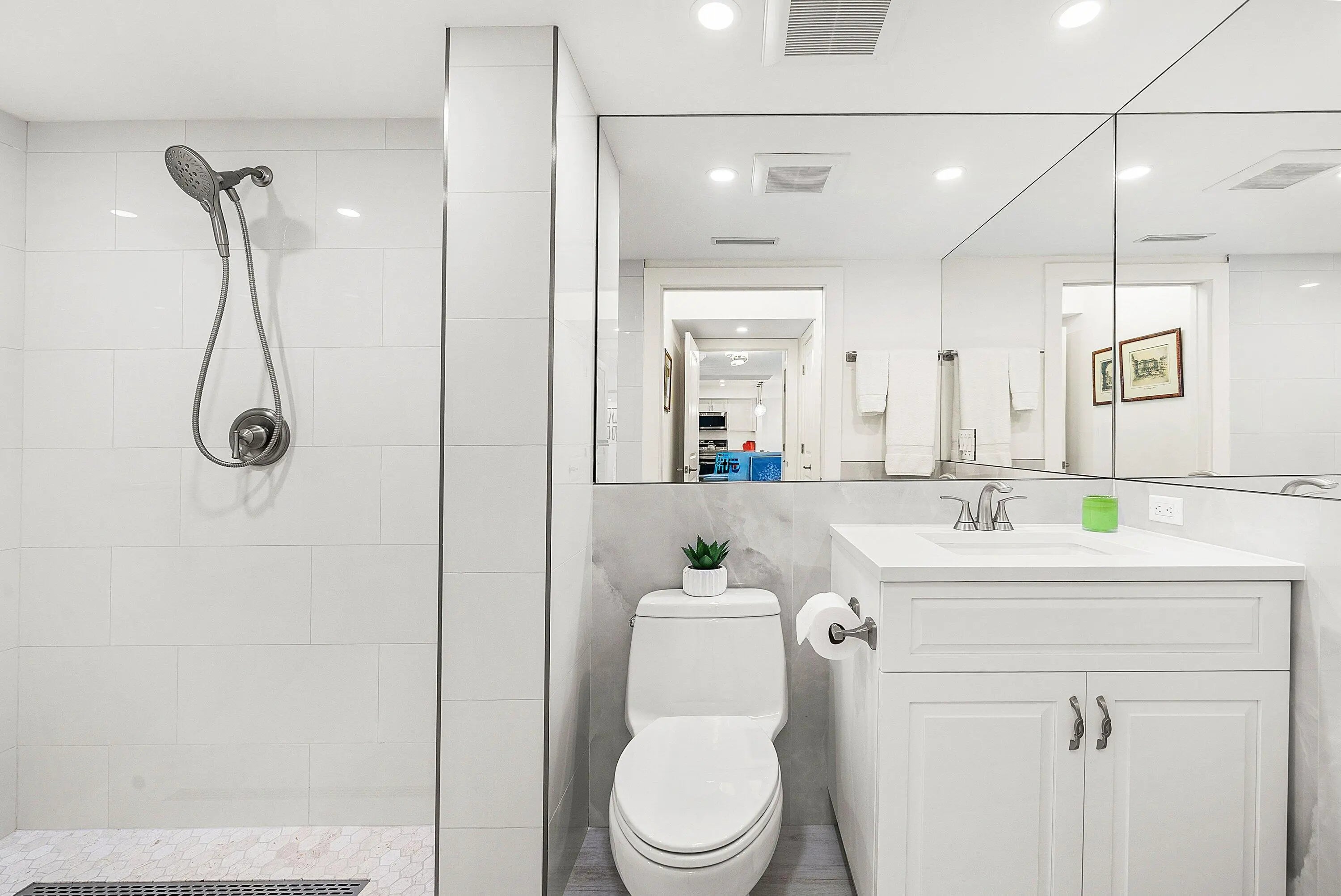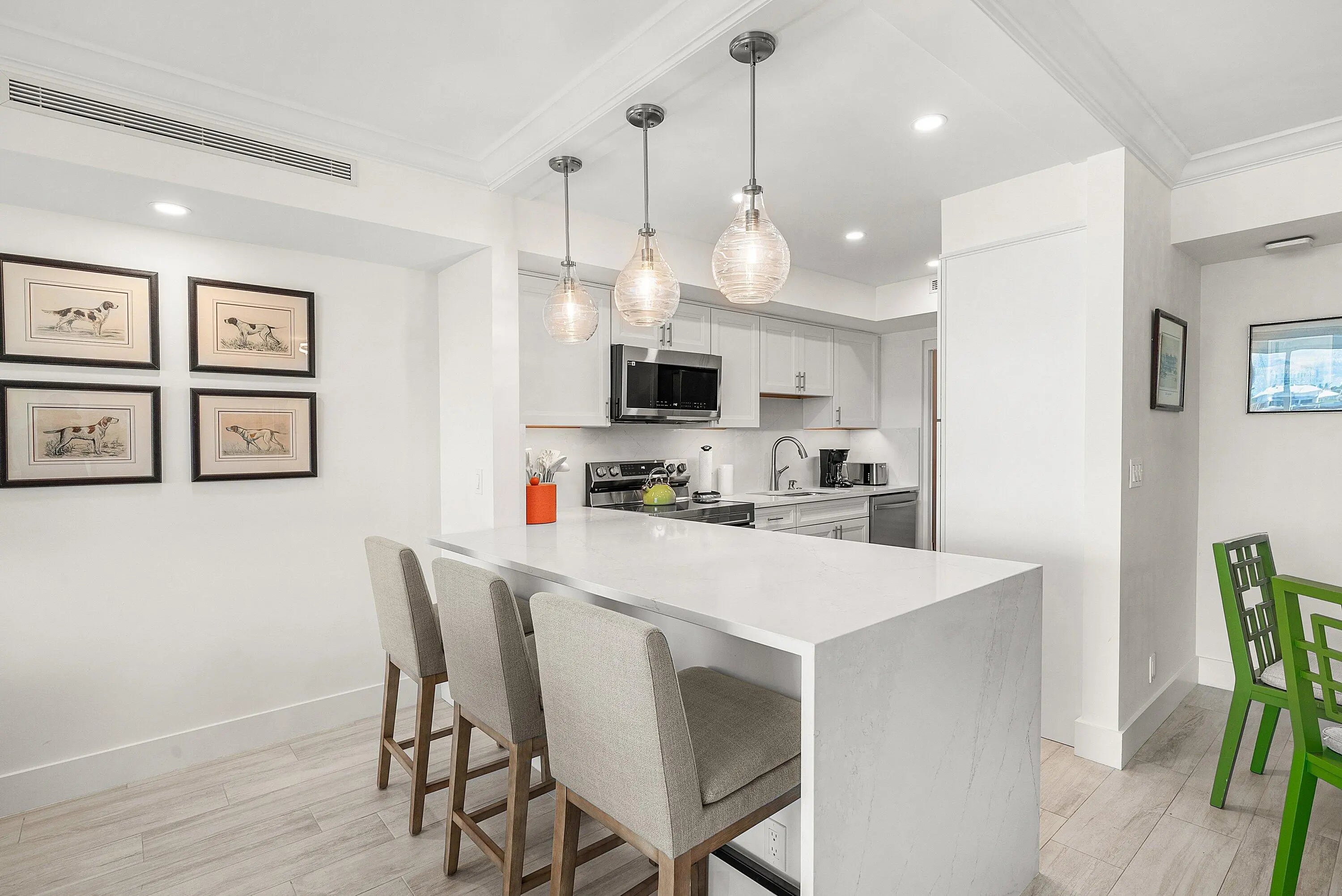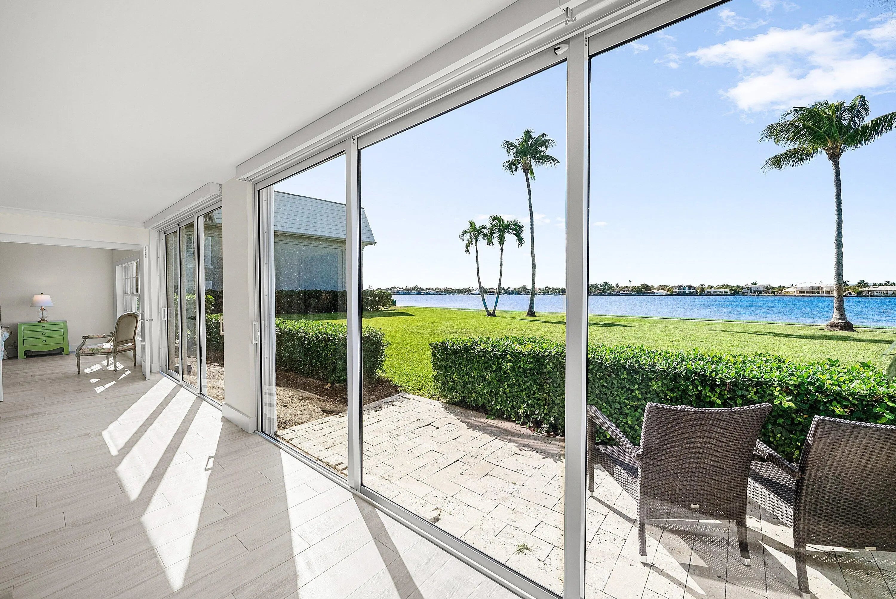 Turn-key, renovated 2-bedroom, 2-bath condo with interiors designed by the Fascinating Hildegarde ''Hillie'' Mahoney with sweeping Intracoastal Waterway and sunset views—your own escape above the water. Floor-to-ceiling hurricane doors open to a breezy lanai suited for unhurried mornings and golden-hour evenings. Inside, a modern layout offers a fully stocked kitchen, spa-style baths, and custom closets. The boutique building includes two pools and lush grounds that feel quietly resort-like. Minutes from the beach, Eau Resort & Spa, the Four Seasons, Publix, Phipps Ocean Park, the PB Tennis Center, and the PB Par 3 Golf Course, and a short drive to Palm Beach central, downtown West Palm Beach, and Atlantic Ave. A polished coastal retreat close to everything.